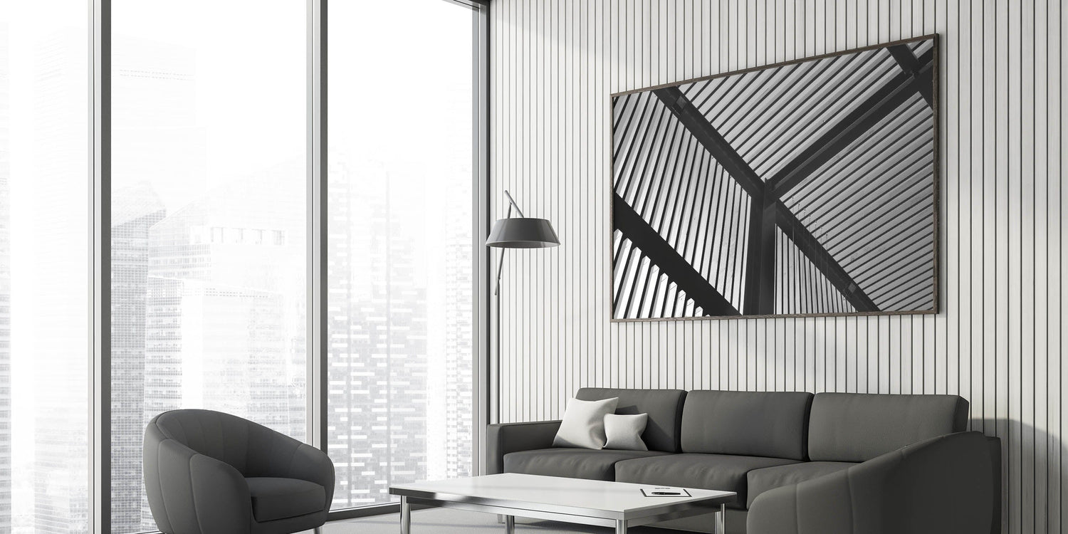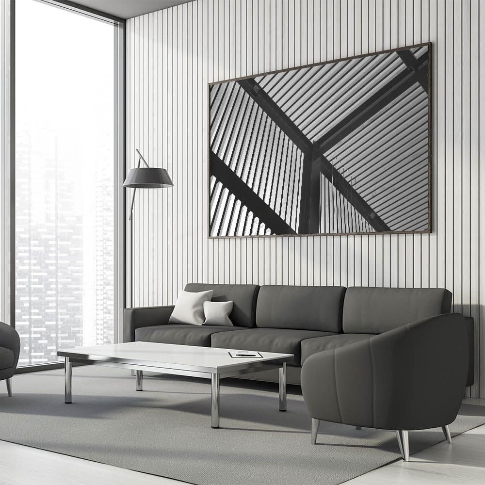 • Urban architectural wall art with a sleek, modern, and geometric composition