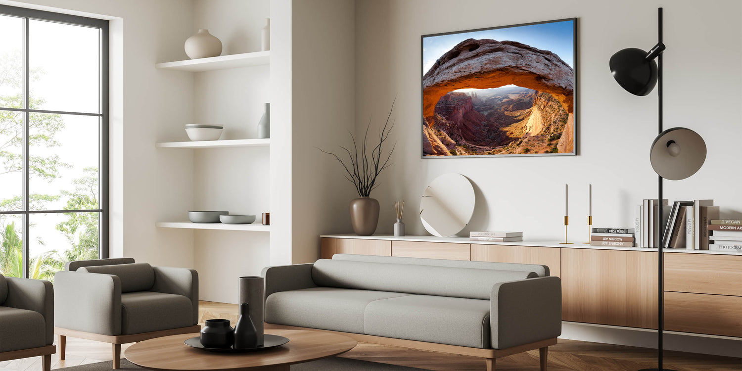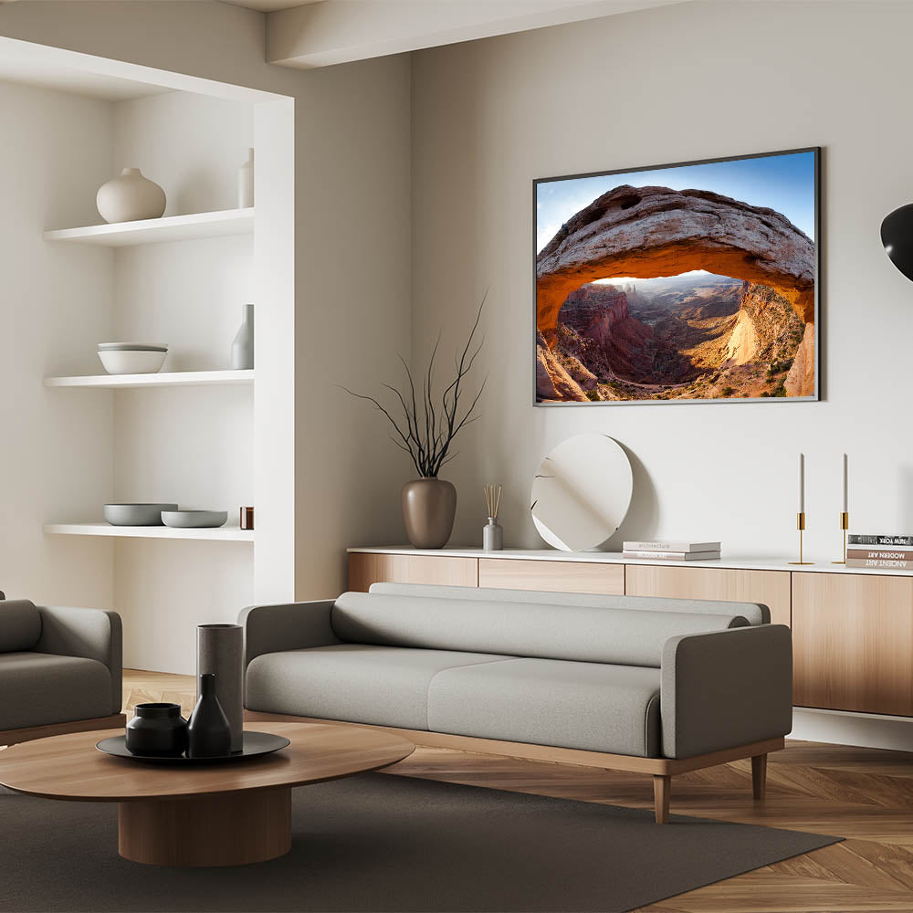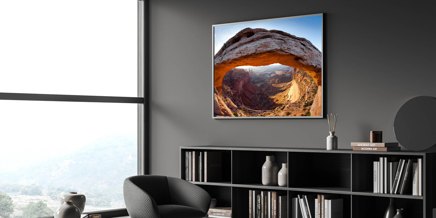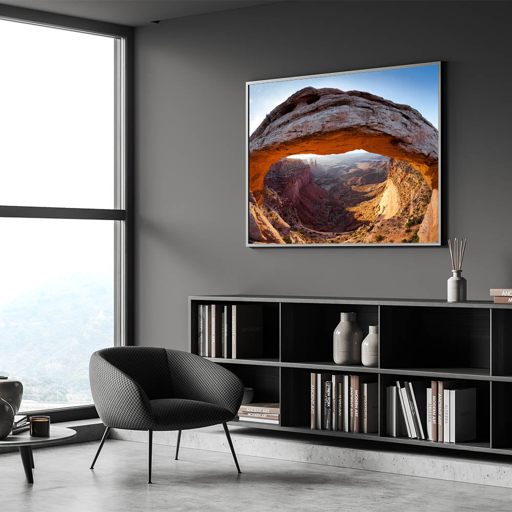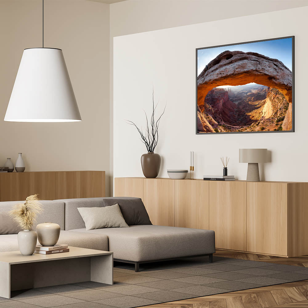 This exclusive Canyonlands photography showcases one of the park’s most iconic landmarks, Mesa Arch, illuminated by the first light of day. Perfect for nature lovers or anyone looking to enhance their space with a piece of Utah’s scenic beauty, this Canyonlands Framed Art is a timeless addition to any collection.
