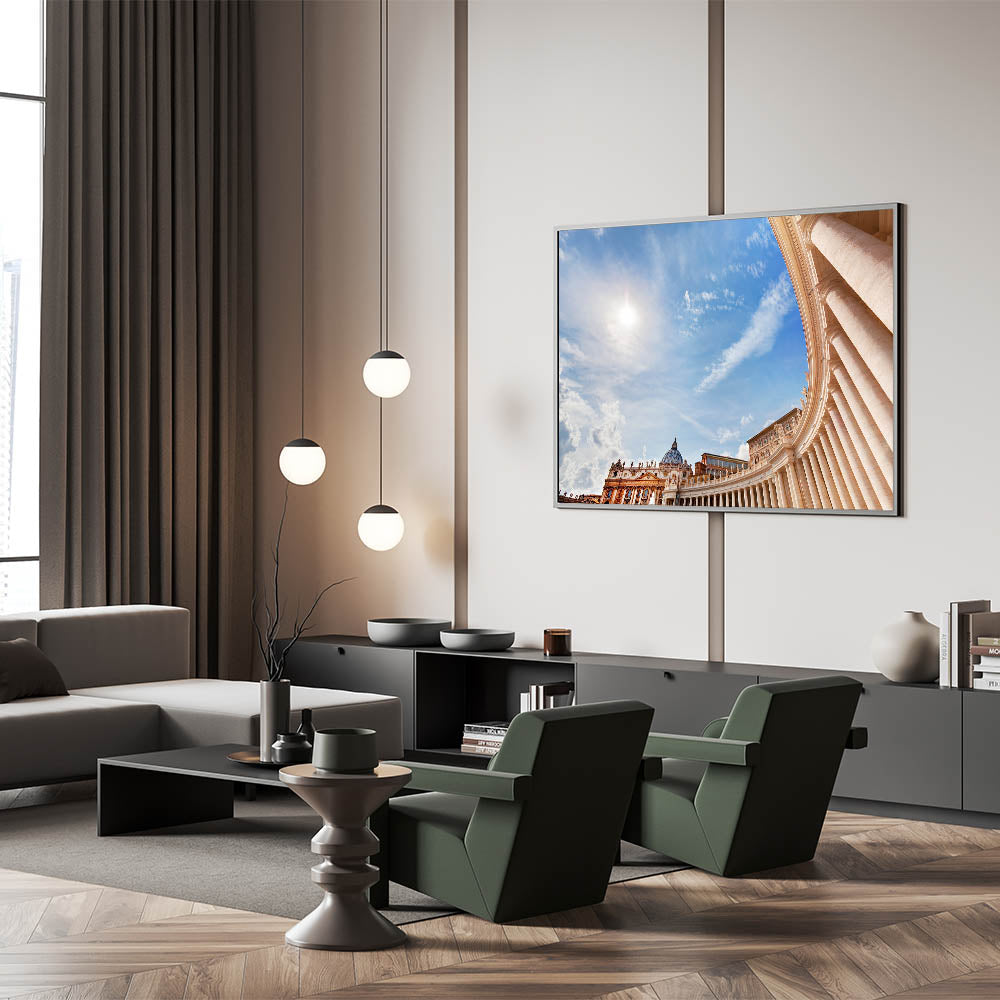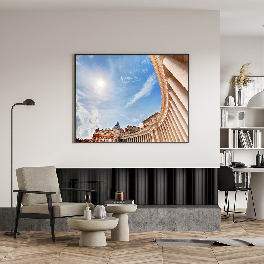 Brighten your space with this captivating Vatican canvas art featuring the majestic St. Peter’s Basilica under a brilliant blue sky. The soaring columns and the Basilica’s iconic dome offer a unique perspective that blends historical significance with modern beauty. This stunning European scenery wall art is perfect for those looking to bring a touch of Vatican charm and elegance into their home decor.