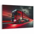 Red Truck at Night Wall Art - Dynamic Modern Highway Truck Print