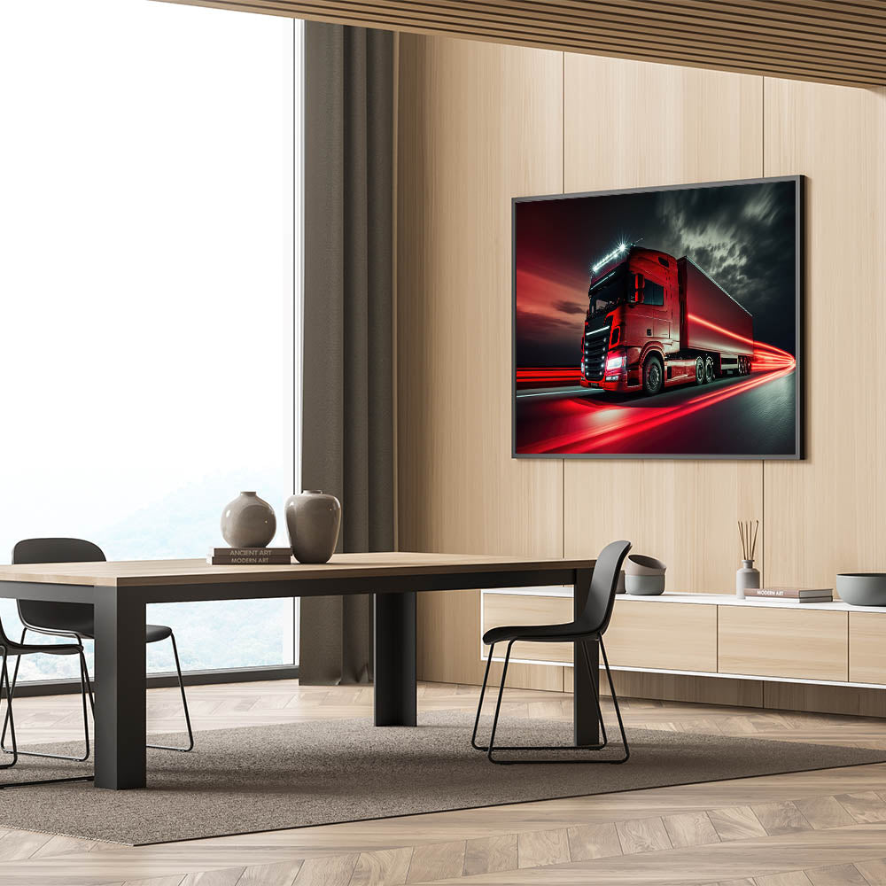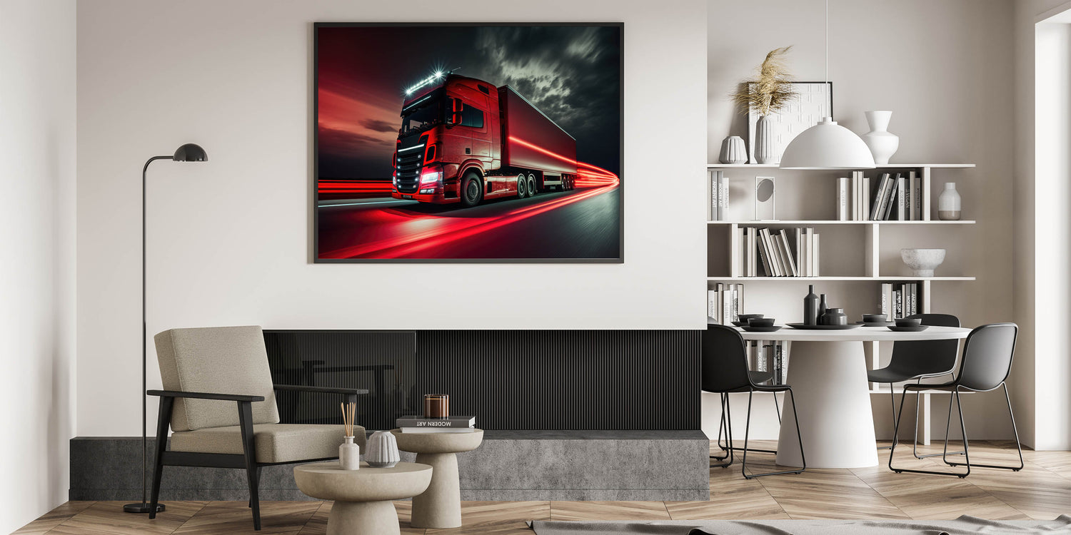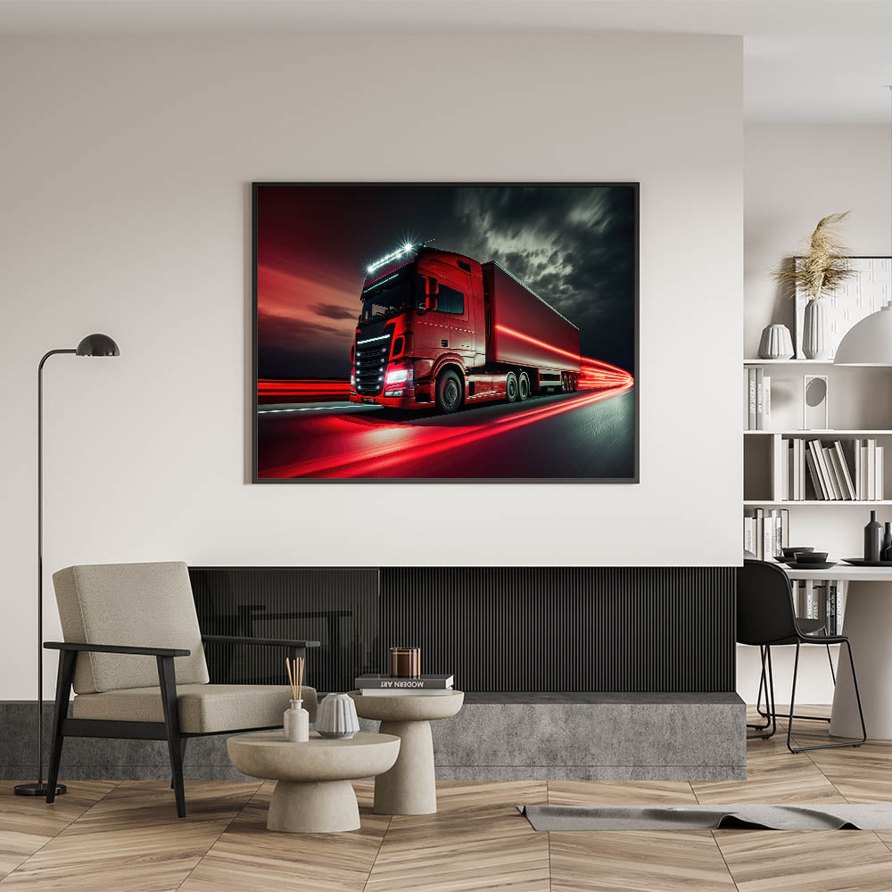 This piece is more than just a decoration—it's a statement of speed, power, and modern design. Whether you're a fan of trucks or simply love art that captures the thrill of the night, this print will add a bold, energetic vibe to your space. Display it to inspire movement and modernity in your environment.