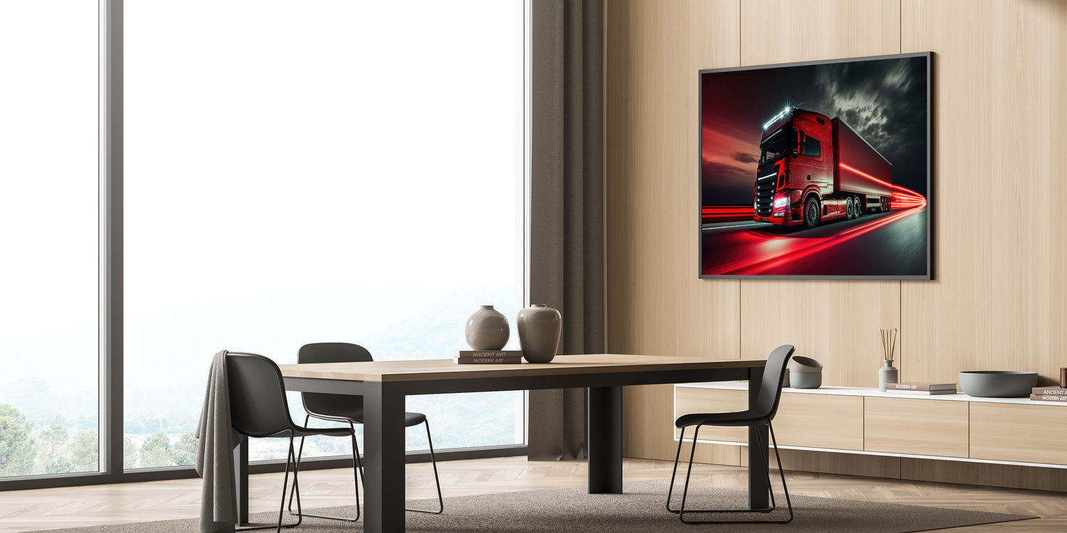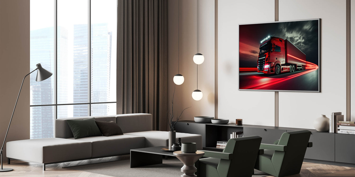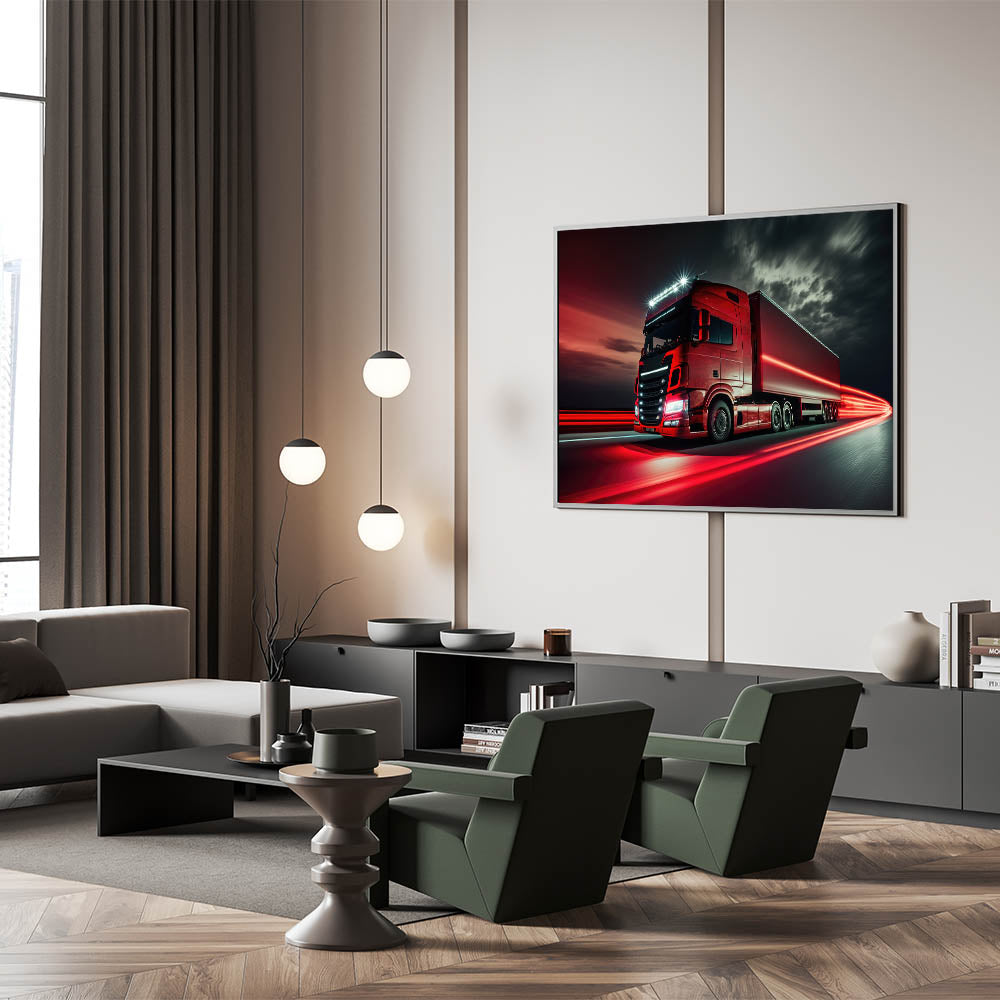 This piece is more than just a decoration—it's a statement of speed, power, and modern design. Whether you're a fan of trucks or simply love art that captures the thrill of the night, this print will add a bold, energetic vibe to your space. Display it to inspire movement and modernity in your environment.