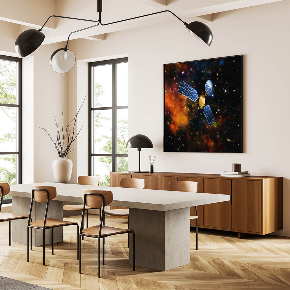 - Vivid and Detailed: High-definition printing captures the rich colors of the galaxy and the intricate design of the satellite, making this piece truly stand out.