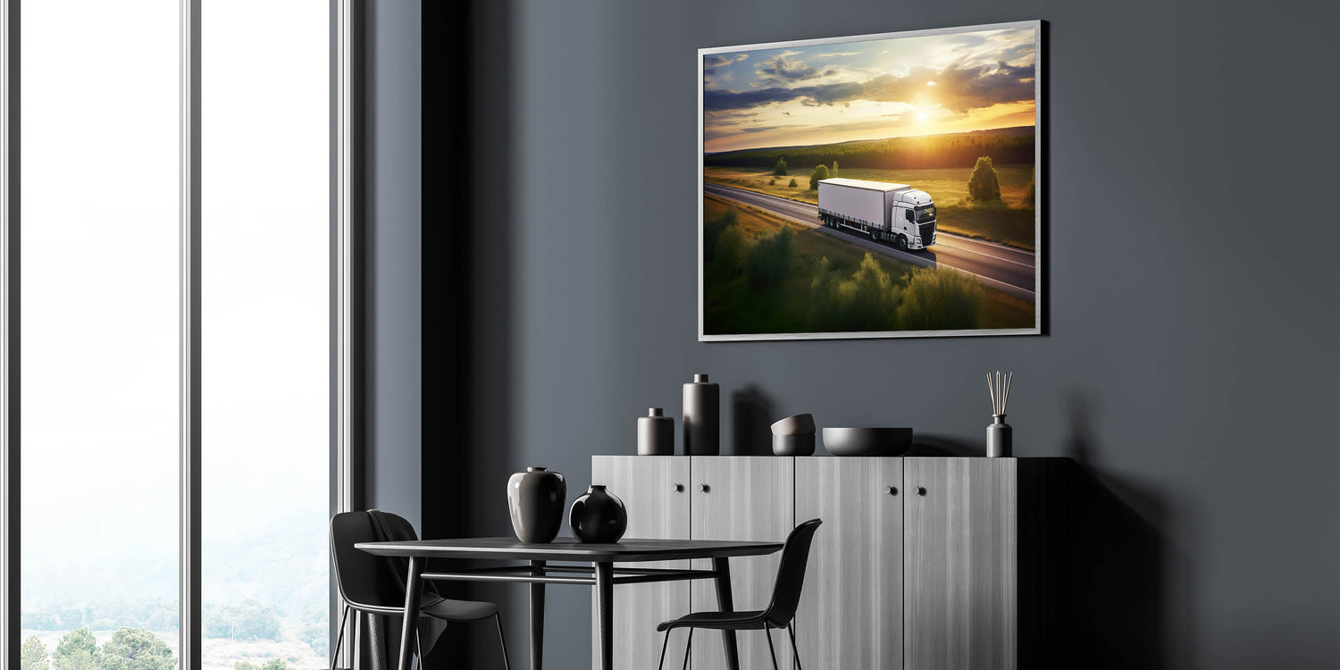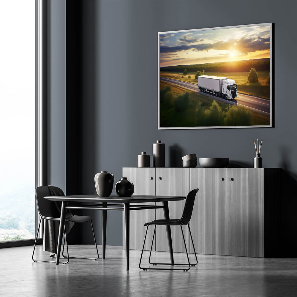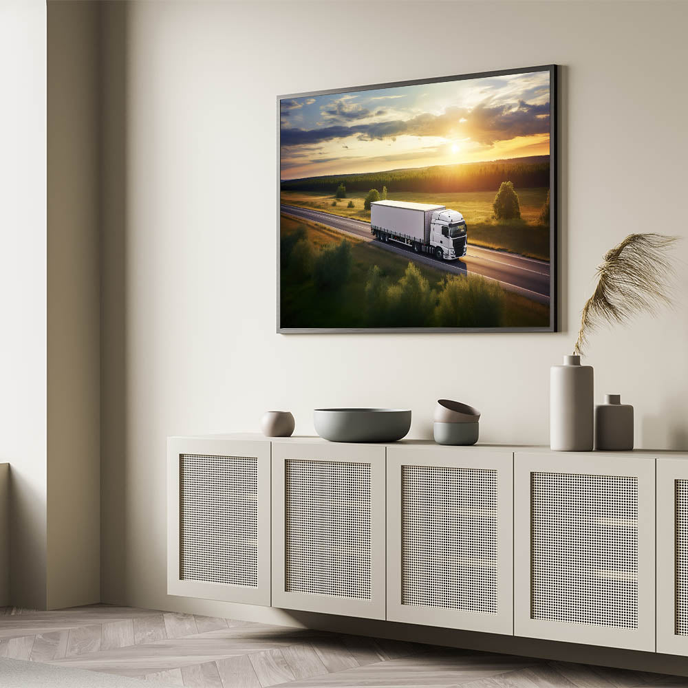 - High-Quality Print: Stunning truck-themed wall art printed on premium stretched canvas, acrylic glass, or framed print options.