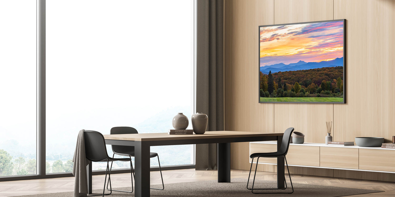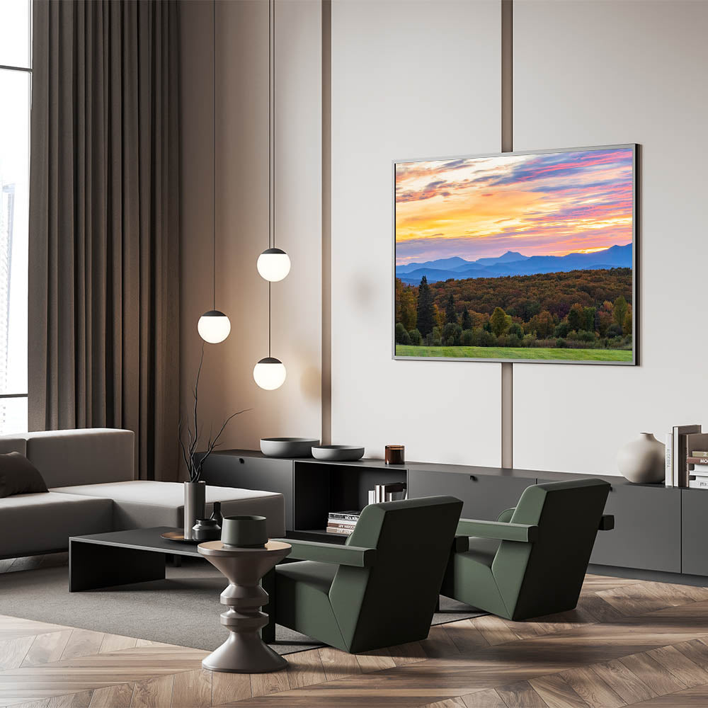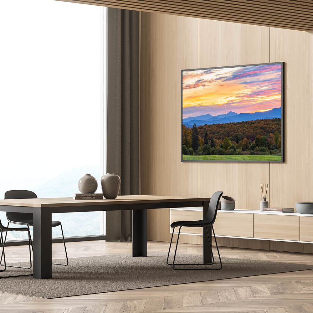 - High-quality Vermont wall art available in stretched canvas, framed canvas, and acrylic glass.