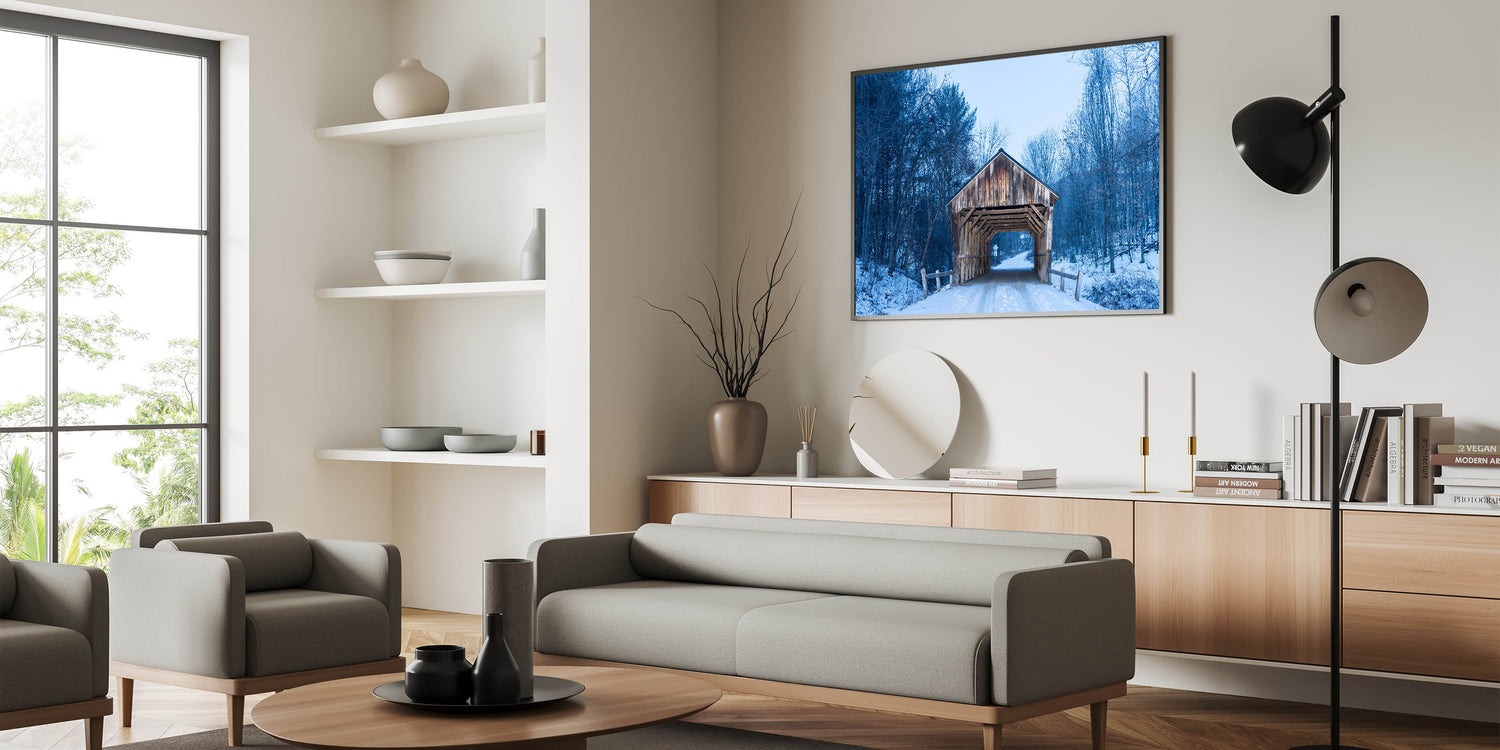 - High-quality Vermont wall art available in framed prints, canvas, and acrylic glass.