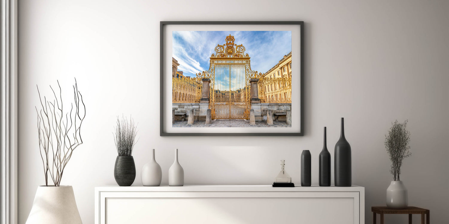 - This Versailles art print highlights the magnificent golden gate in perfect detail.