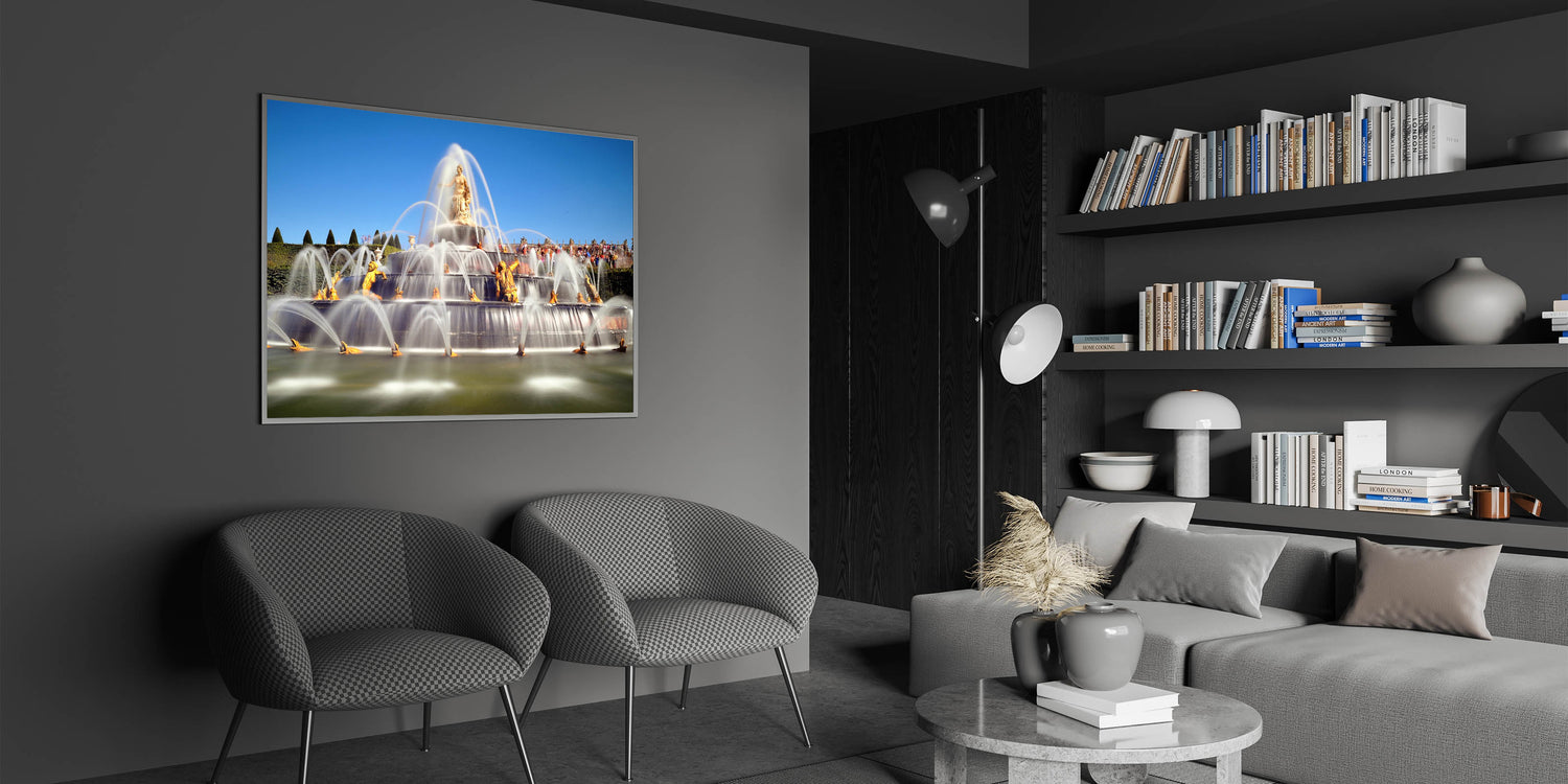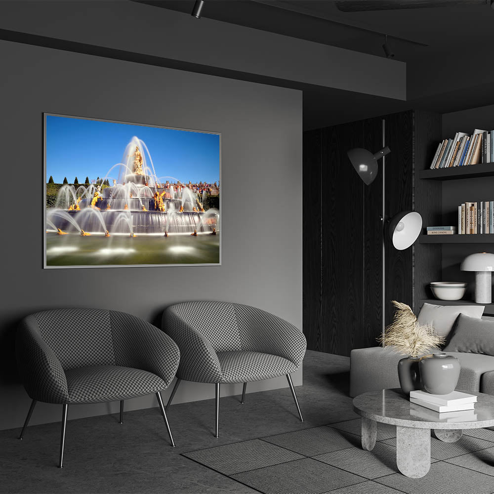 - High-quality Versailles garden art available in stretched canvas, framed prints, and acrylic glass for long-lasting durability.