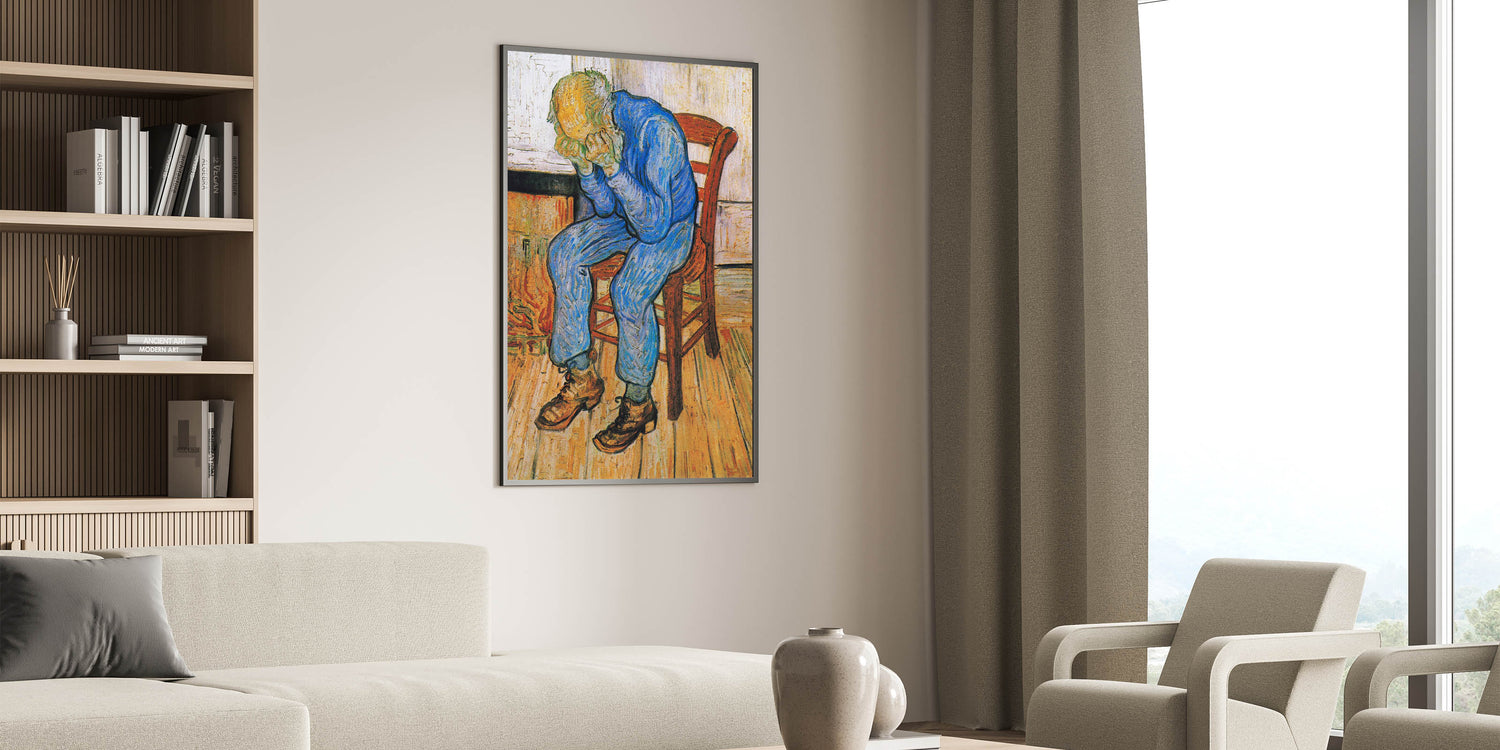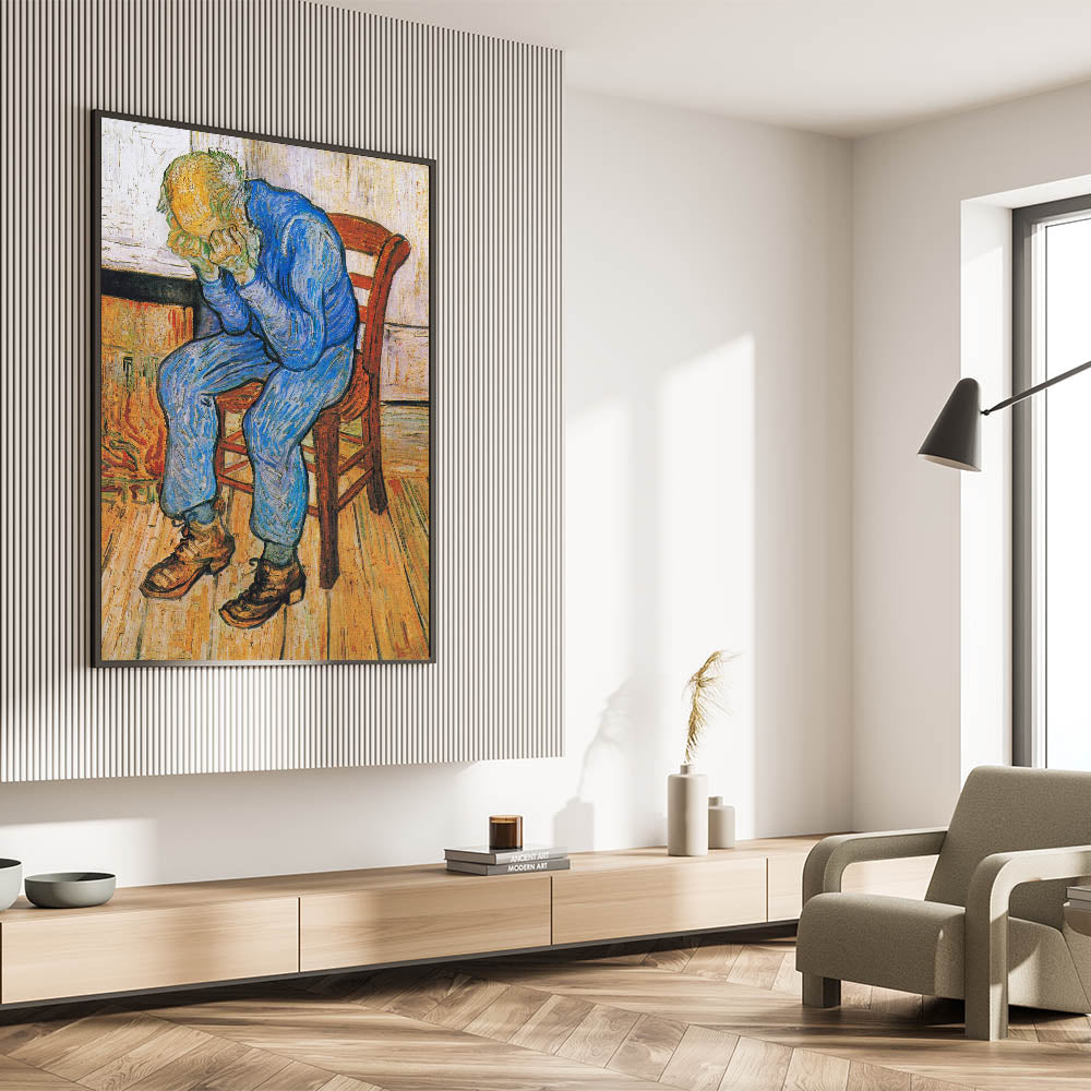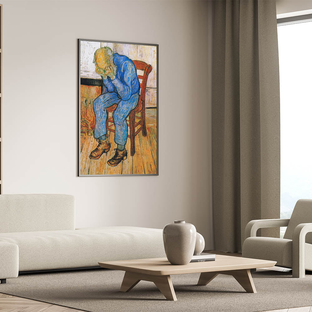 Add a profound piece of history to your collection with this striking reproduction of Vincent van Gogh's wall art, titled "At Eternity's Gate." This emotionally captivating artwork is a testament to Van Gogh's unparalleled storytelling and artistic depth, offering a timeless aesthetic for your space. Perfect for fans of Van Gogh wall decor, this piece combines emotion and artistry, making it ideal for both home and office settings.