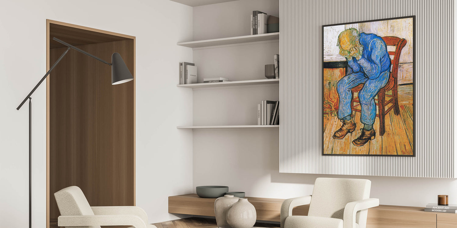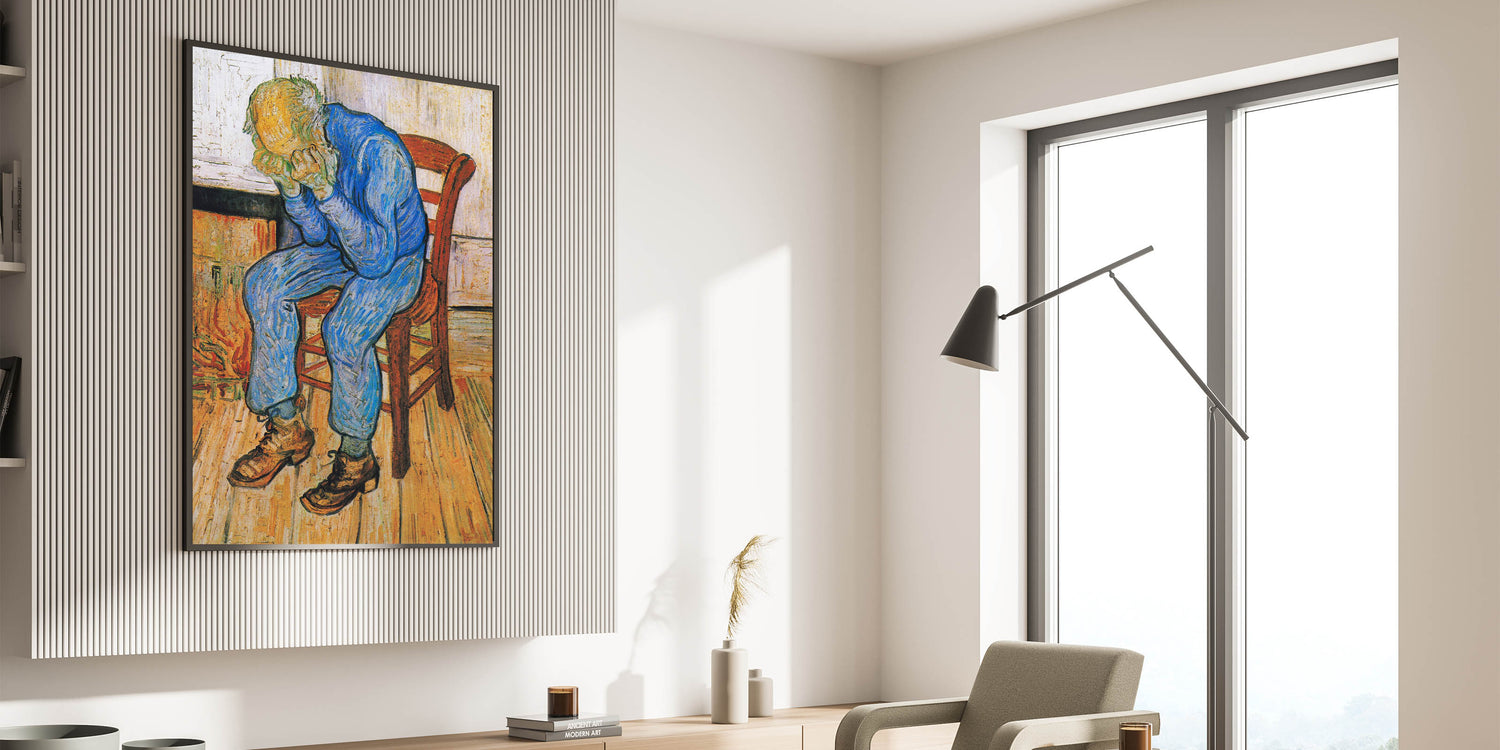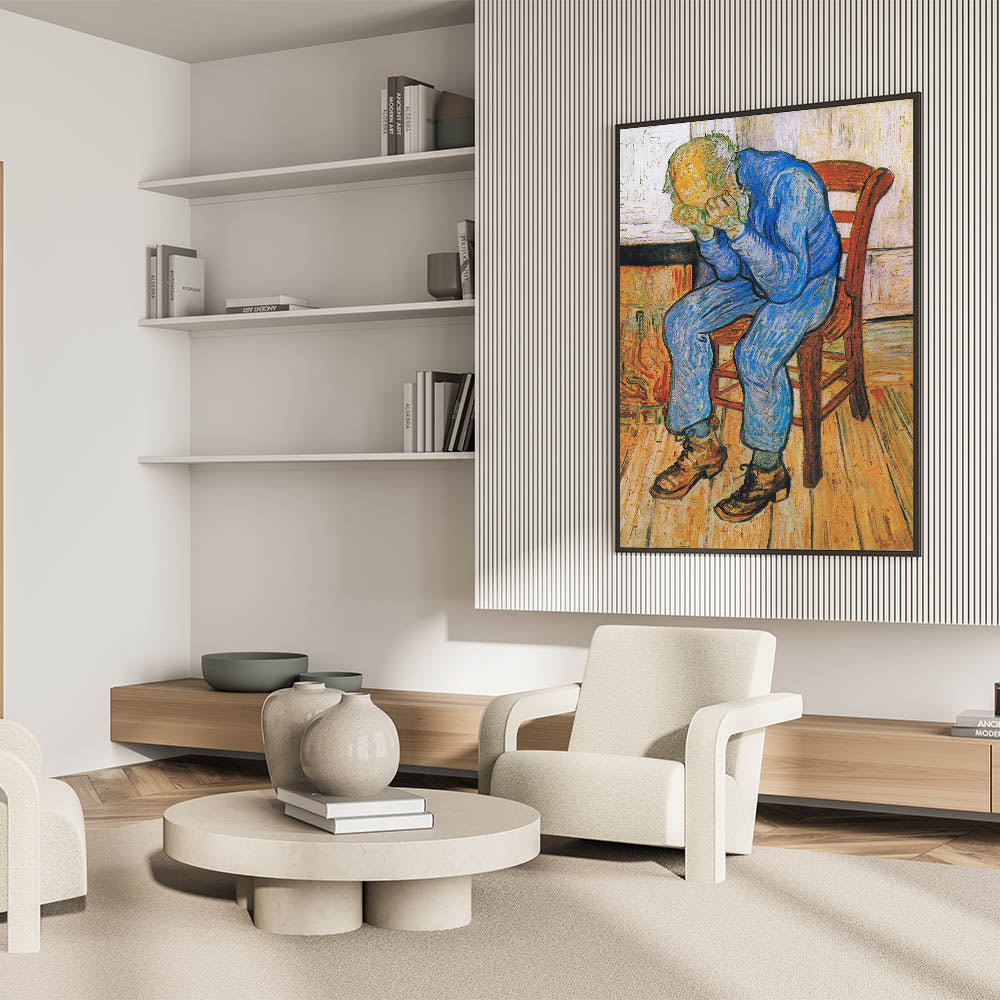 Add a profound piece of history to your collection with this striking reproduction of Vincent van Gogh's wall art, titled "At Eternity's Gate." This emotionally captivating artwork is a testament to Van Gogh's unparalleled storytelling and artistic depth, offering a timeless aesthetic for your space. Perfect for fans of Van Gogh wall decor, this piece combines emotion and artistry, making it ideal for both home and office settings.