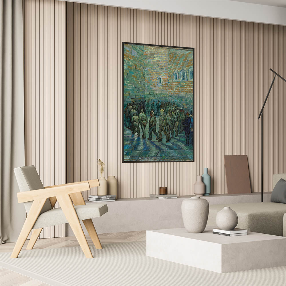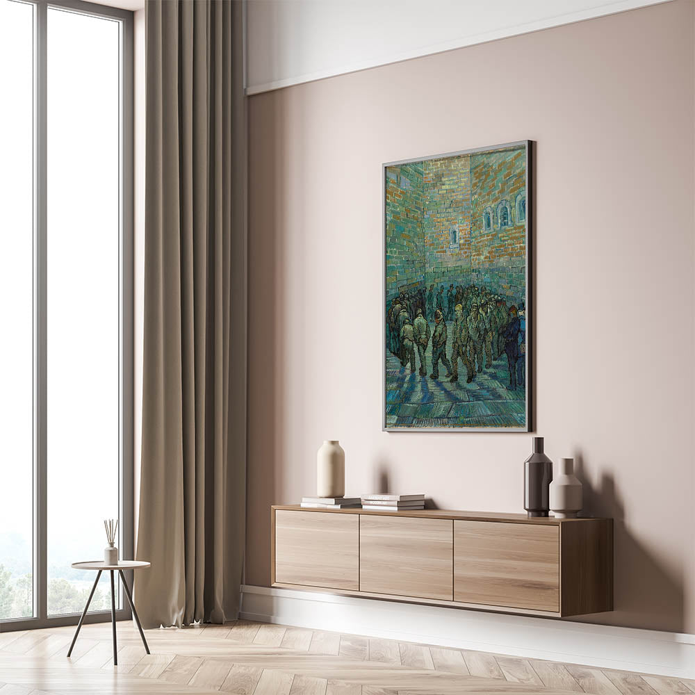 Delve into the emotive world of Starry Night wall art, featuring Van Gogh’s evocative "Prisoners Exercising." This striking piece portrays a group of prisoners walking in a confined courtyard, encapsulating Van Gogh’s exploration of human isolation and resilience. With its dramatic use of perspective, earthy tones, and dynamic figures, this artwork serves as a powerful statement piece for any setting.