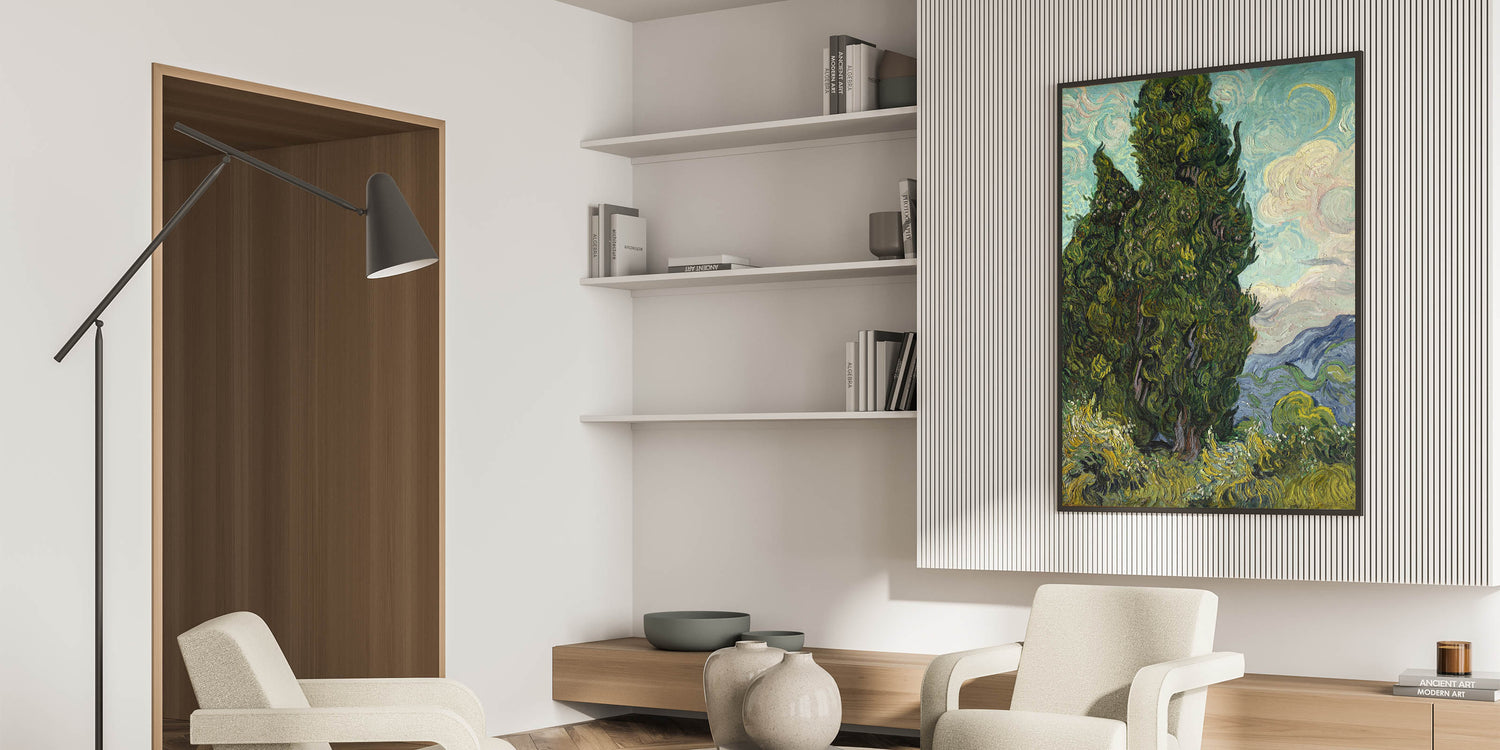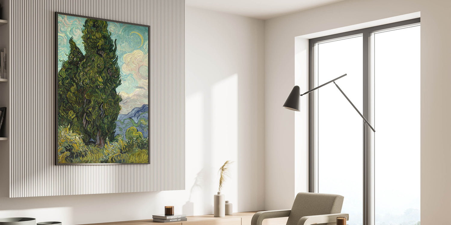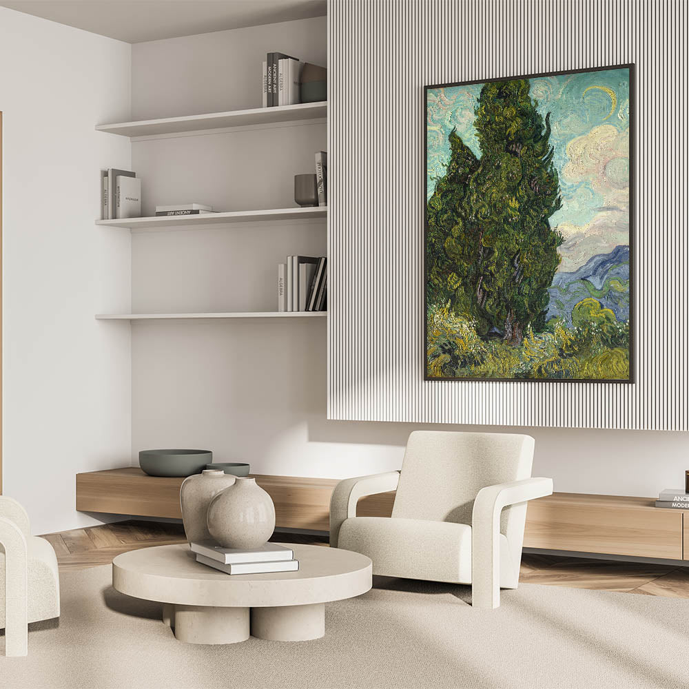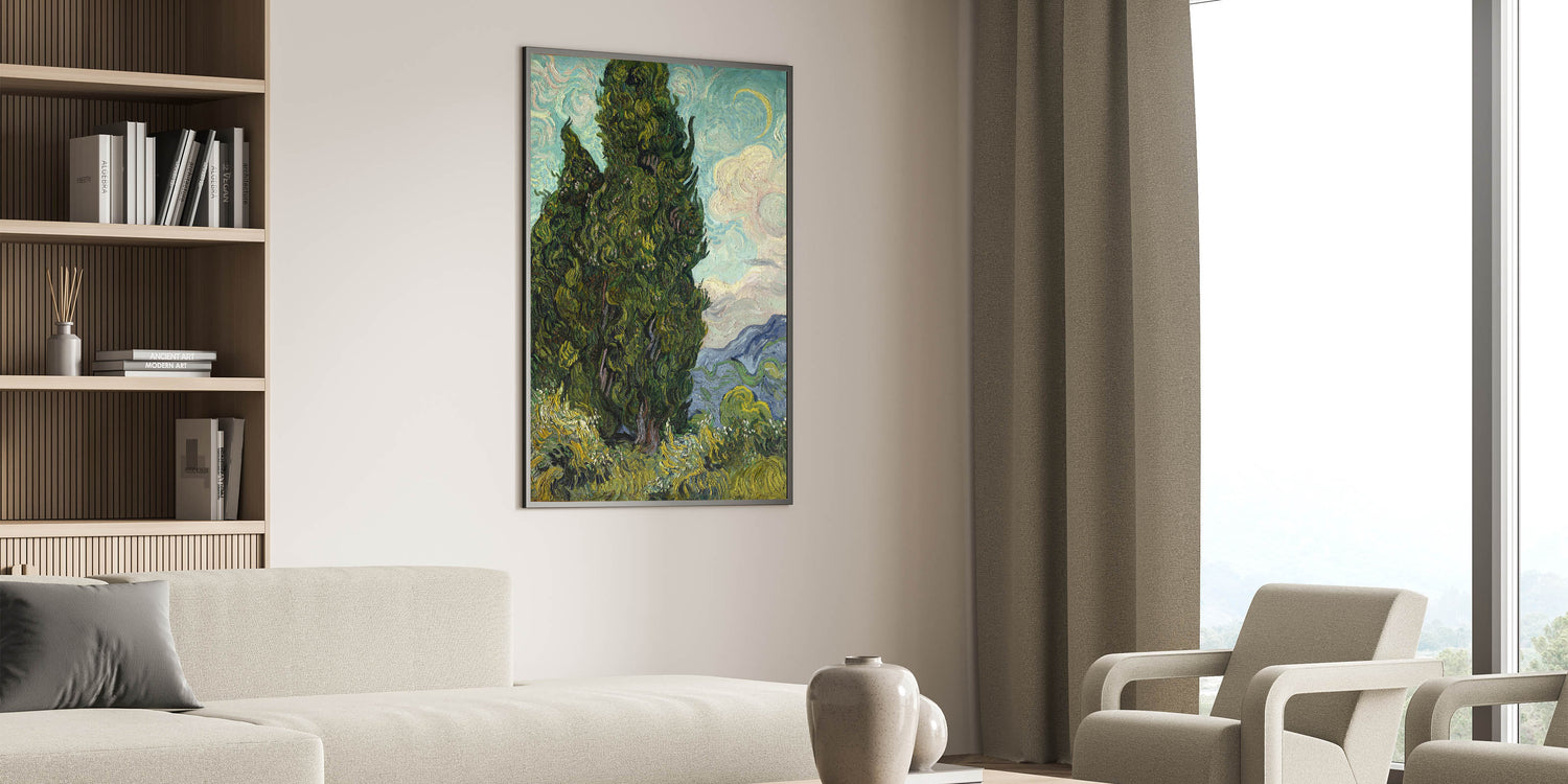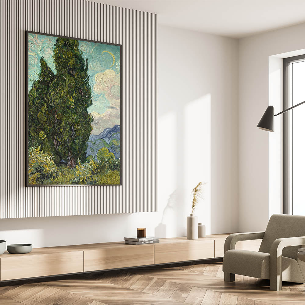 Van Gogh Art Prints – Cypress Trees Impressionist Canvas Wall Art