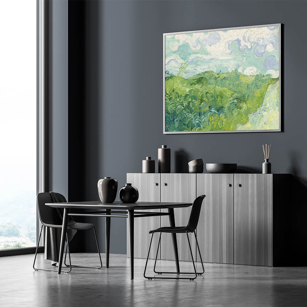 Immerse yourself in the vibrant beauty of Vincent van Gogh's wall art with this stunning reproduction of "Wheat Fields with Clouds." This iconic landscape captures the gentle curves of green fields under a dynamic, swirling sky, showcasing Van Gogh’s unmatched ability to portray the beauty of nature. Perfect for lovers of Van Gogh wall decor, this masterpiece exudes tranquility and elegance, making it ideal for any home or office.