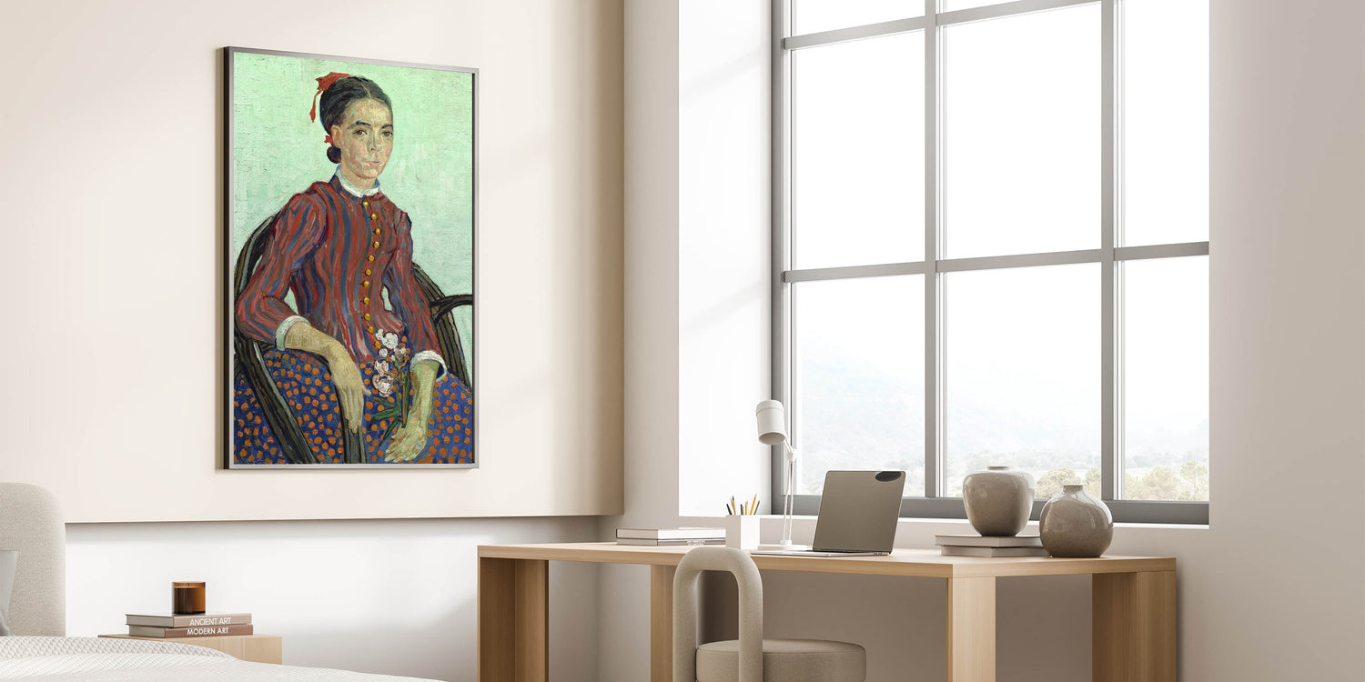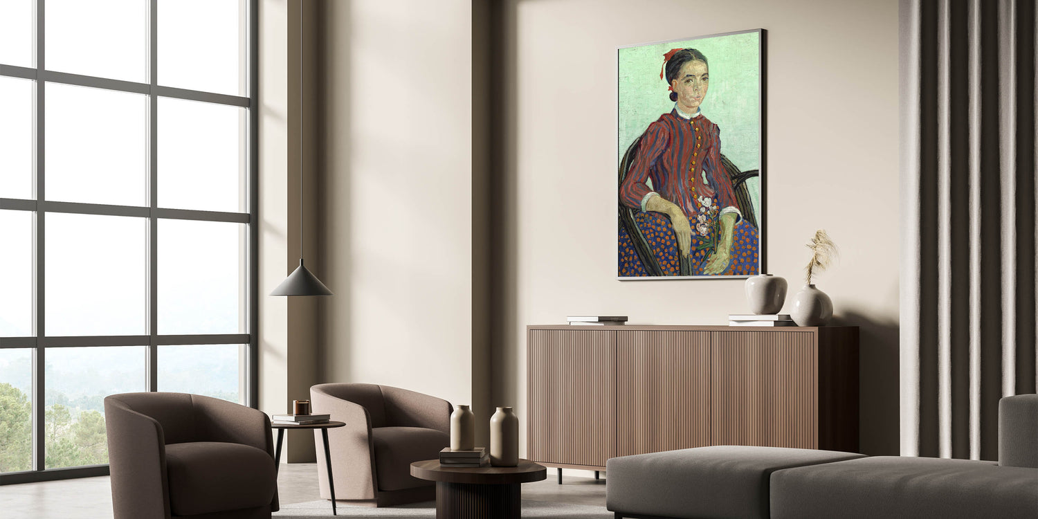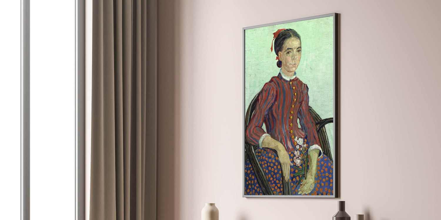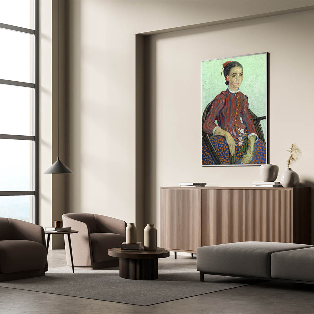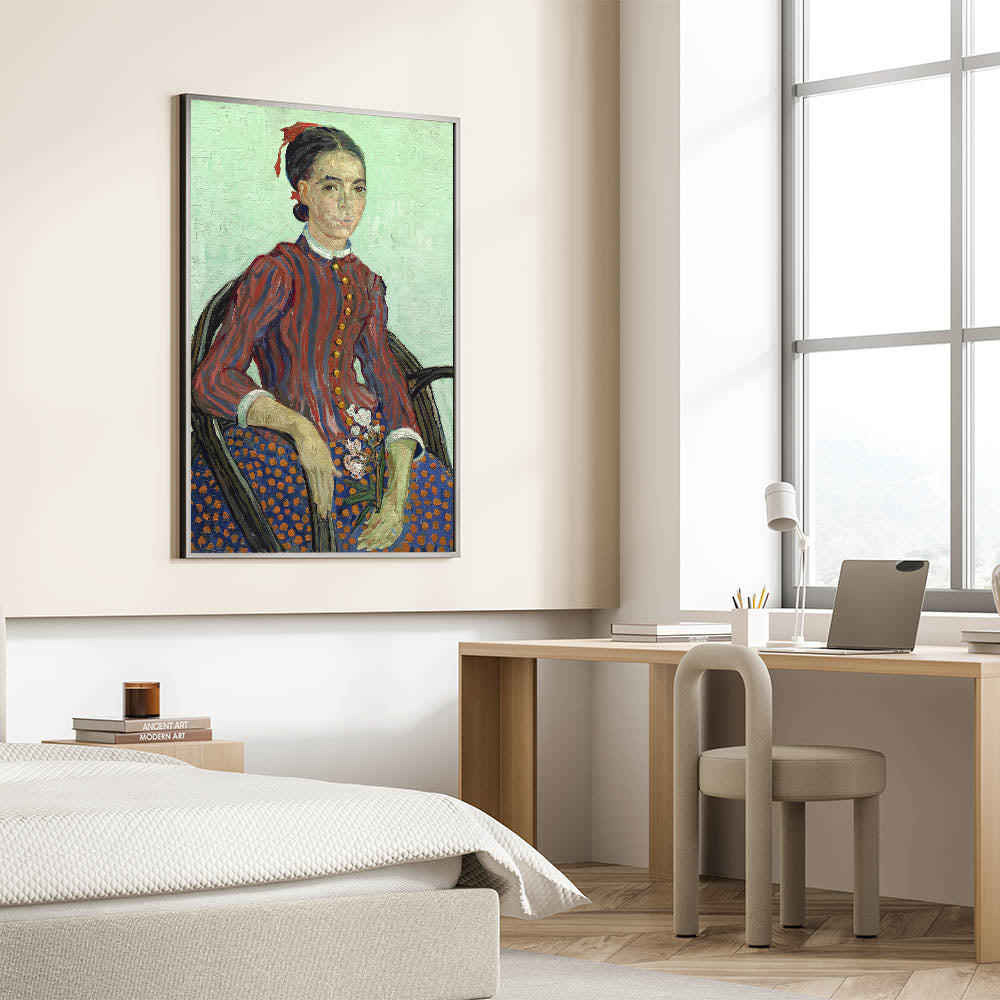 Add an iconic touch to your decor with this Vincent van Gogh wall art featuring the "Portrait of a Young Woman." This timeless artwork captures van Gogh’s distinctive style with bold brushstrokes, rich colors, and exquisite attention to detail. The portrait highlights the subject’s striking expression and traditional attire, set against a soft, textured background, making it an elegant addition to any interior.