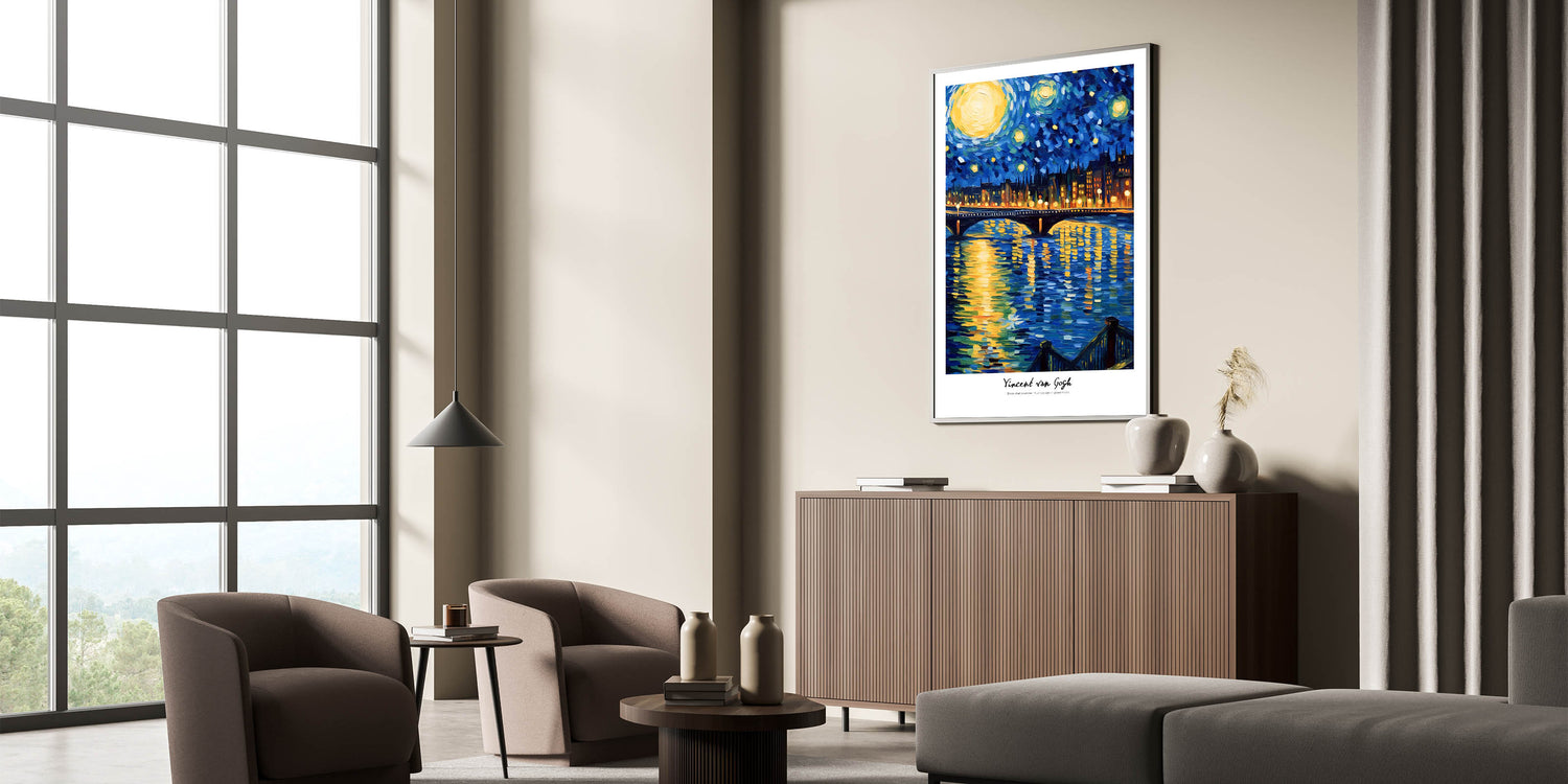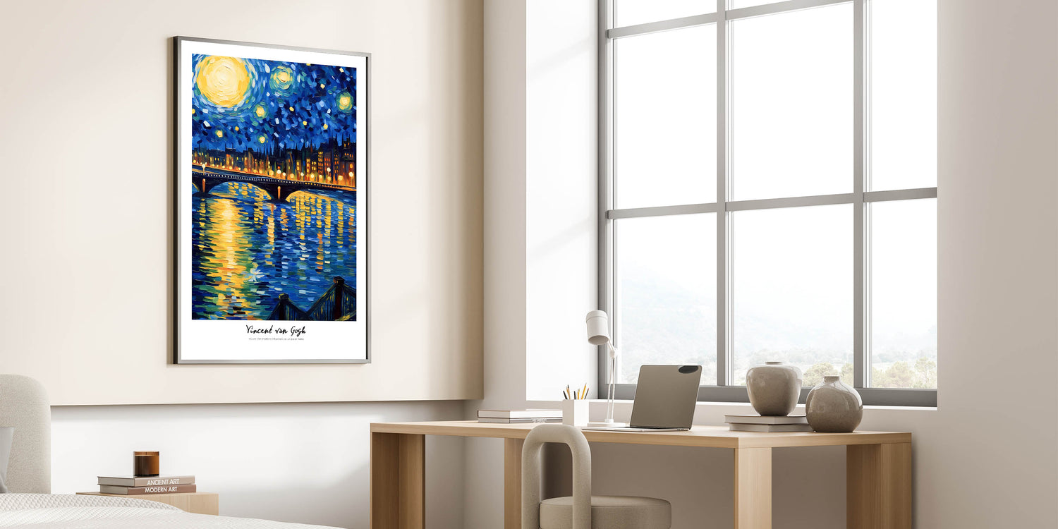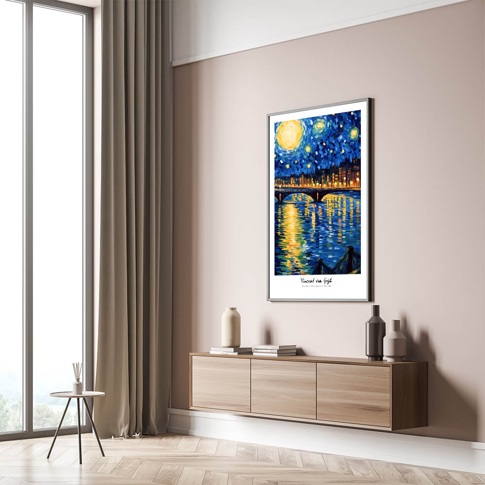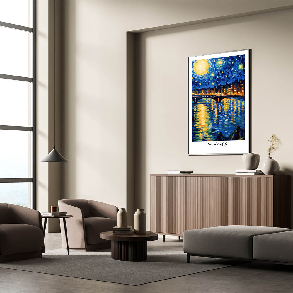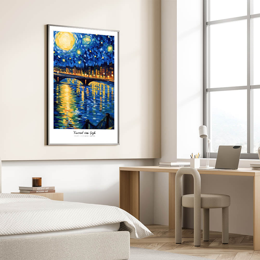 Elevate your home decor with Vincent van Gogh's Starry Night Over Water, a masterpiece that showcases his iconic brushstrokes and breathtaking color palette. This serene artwork captures the beauty of a moonlit sky reflecting off tranquil waters, paired with Van Gogh's signature Impressionist style. A perfect addition for art enthusiasts and those seeking timeless Van Gogh wall decor.
