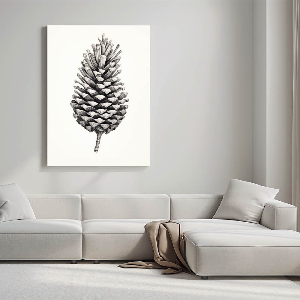 This Vintage Botanical Art Print showcases a striking black and white illustration of a pinecone, offering a clean and sophisticated look for any space. The detailed pencil drawing captures the intricate textures of the pinecone, making it a timeless addition to any room. Its monochrome palette is perfect for modern and vintage-style decor, creating a perfect balance of elegance and simplicity.