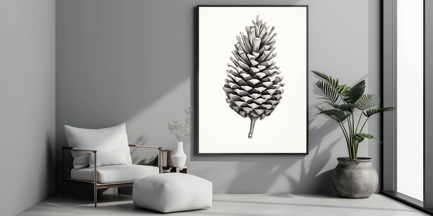 This botanical illustration art piece brings a natural yet refined element to your home or office. Whether you are curating a collection of vintage botanical prints or adding a unique touch to your space, this pinecone illustration will enhance your decor with its timeless beauty.
