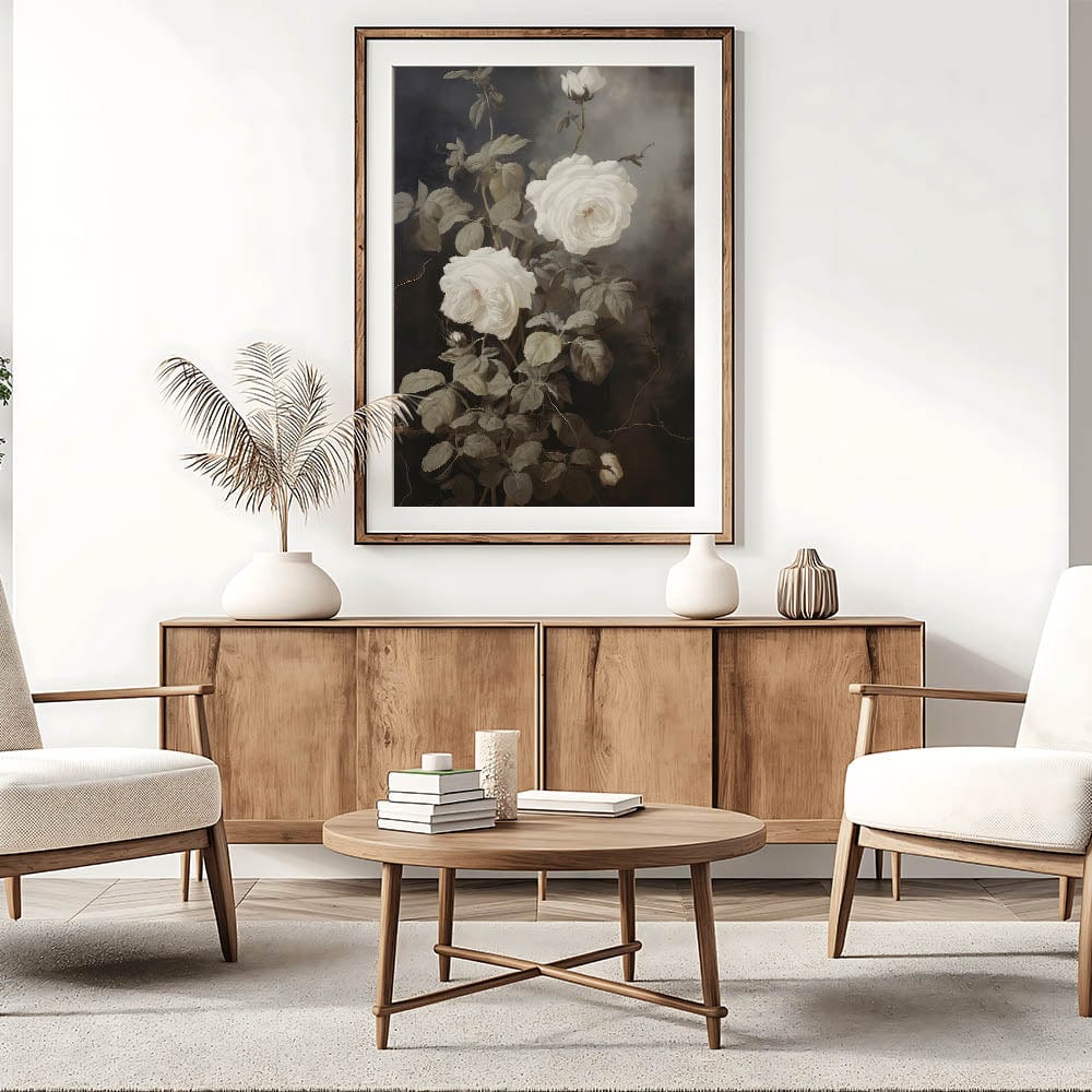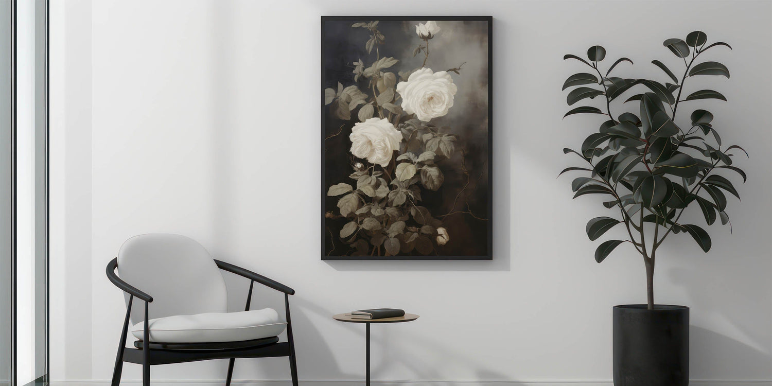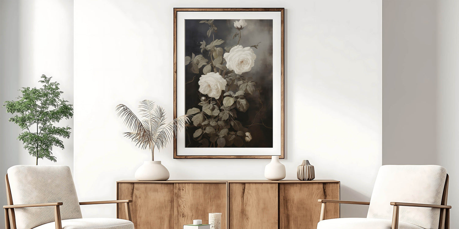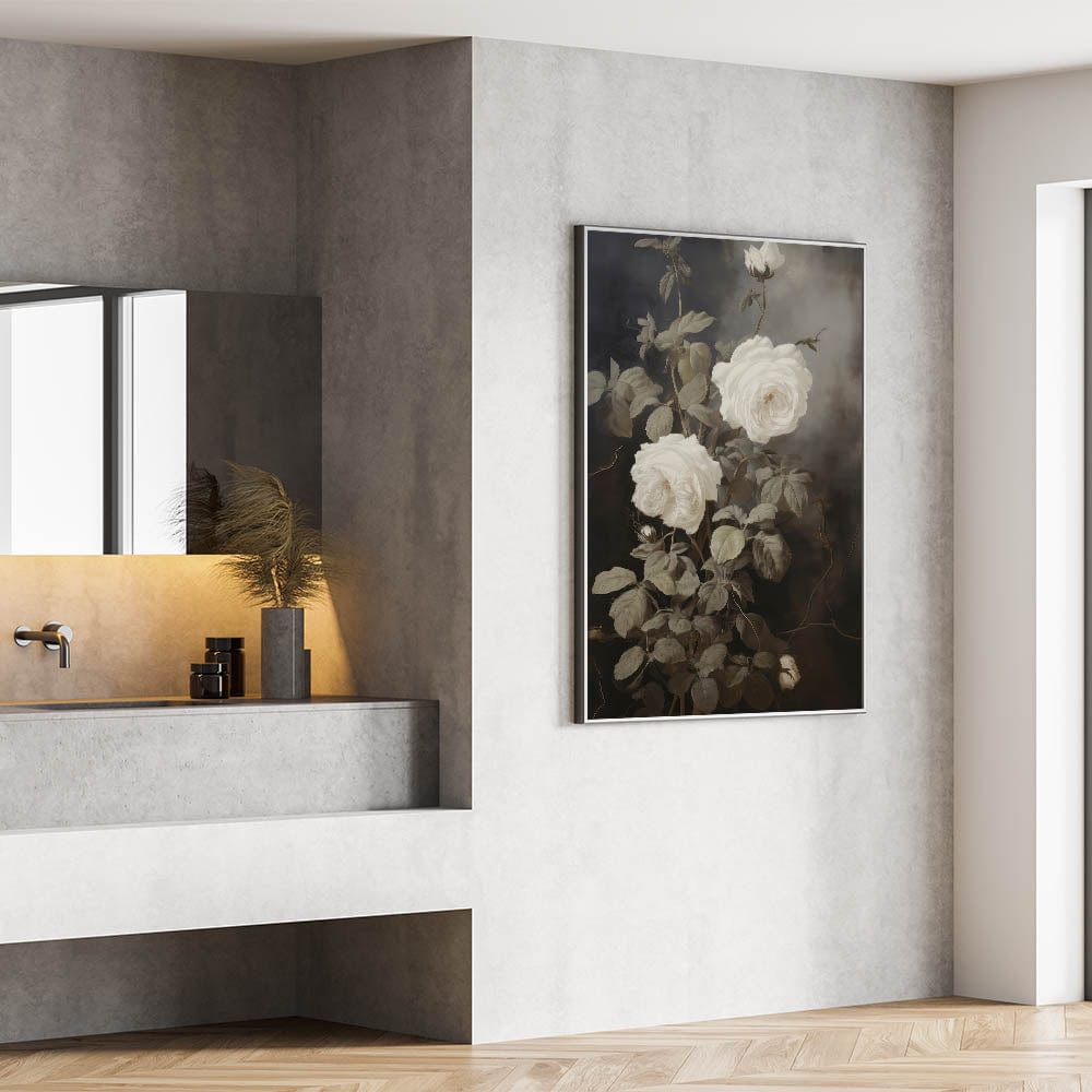 This stunning white rose print adds a serene, graceful touch to any room. Its soft elegance makes it a perfect addition to your botanical prints collection.
