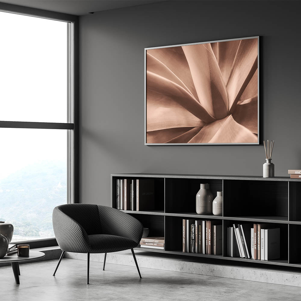 Bring a touch of organic elegance into your space with this tranquil nature canvas print, featuring a stunning close-up of a tropical plant in warm sepia tones. The intricate details of the leaves, combined with soft lighting and smooth textures, create a serene landscape artwork that radiates warmth and sophistication. This elegant botanical wall art is a perfect statement piece for modern, minimalist, and nature-inspired interiors.