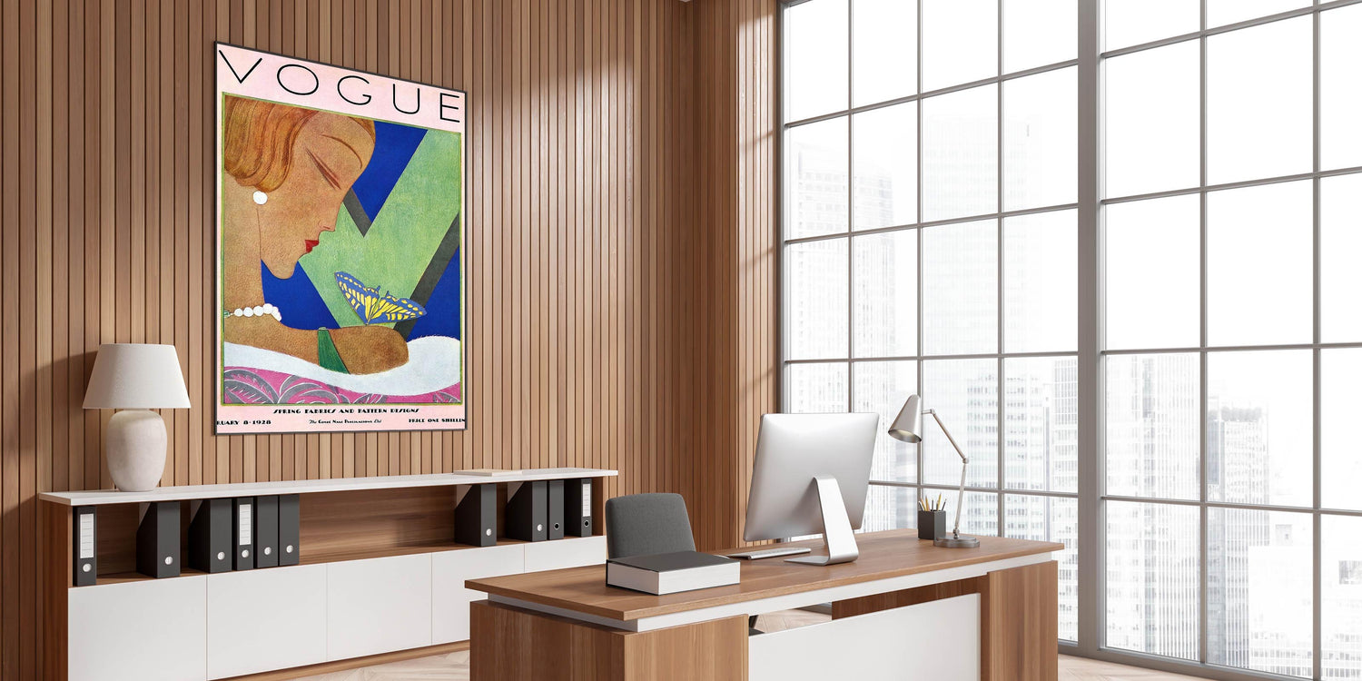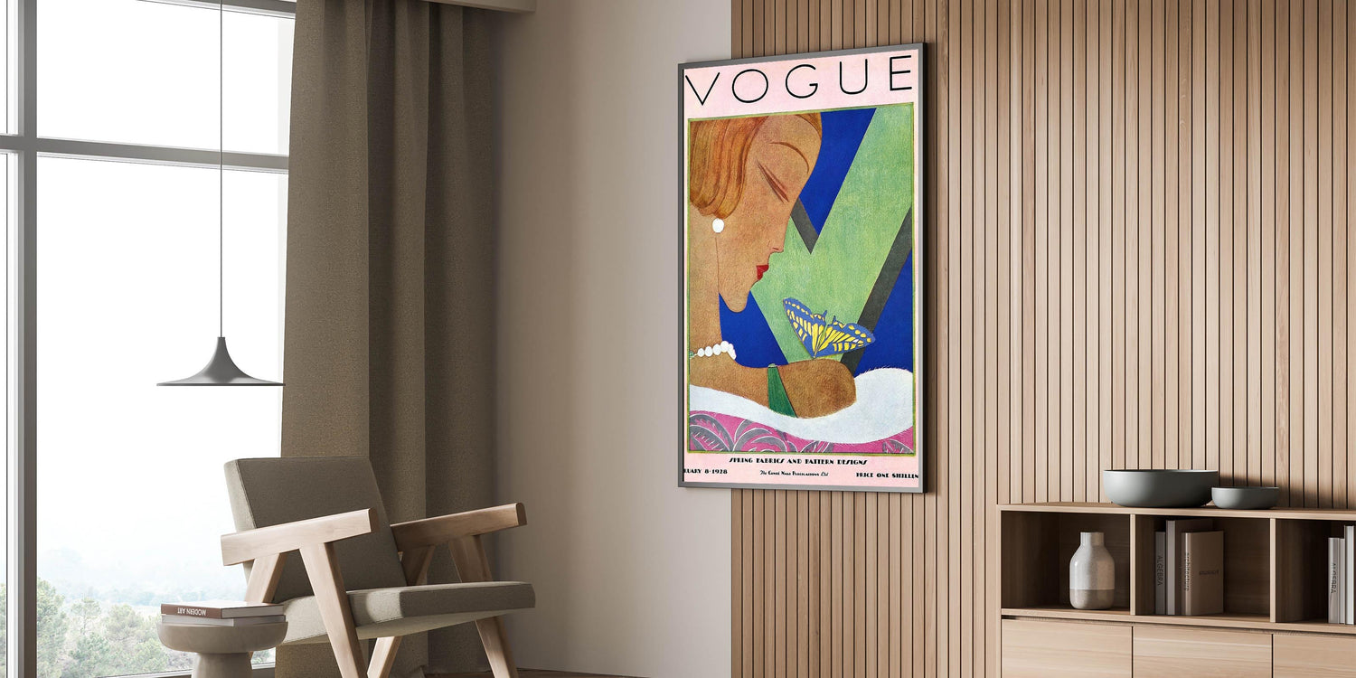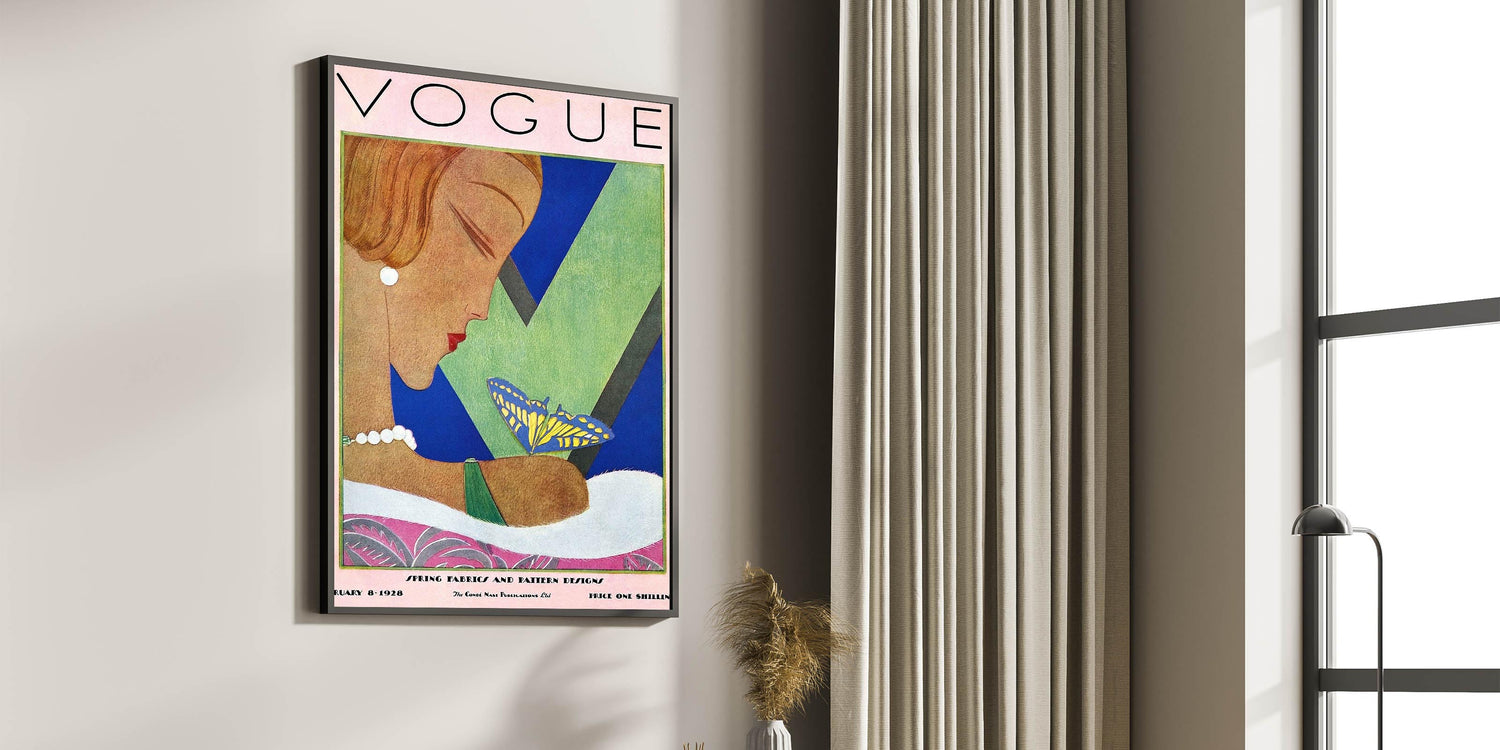 - High-quality reproduction of a 1928 Vogue magazine cover illustration