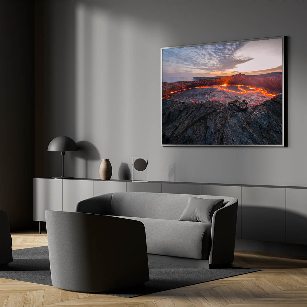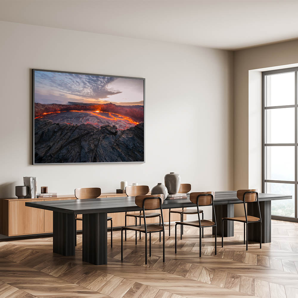 This Molten Lava Volcano Art is more than just a decoration; it's a statement piece that captures the essence of Earth's untamed power. Ideal for living rooms, offices, or any space that could benefit from a touch of dramatic, natural beauty. Let this artwork inspire awe and admiration in all who see it.