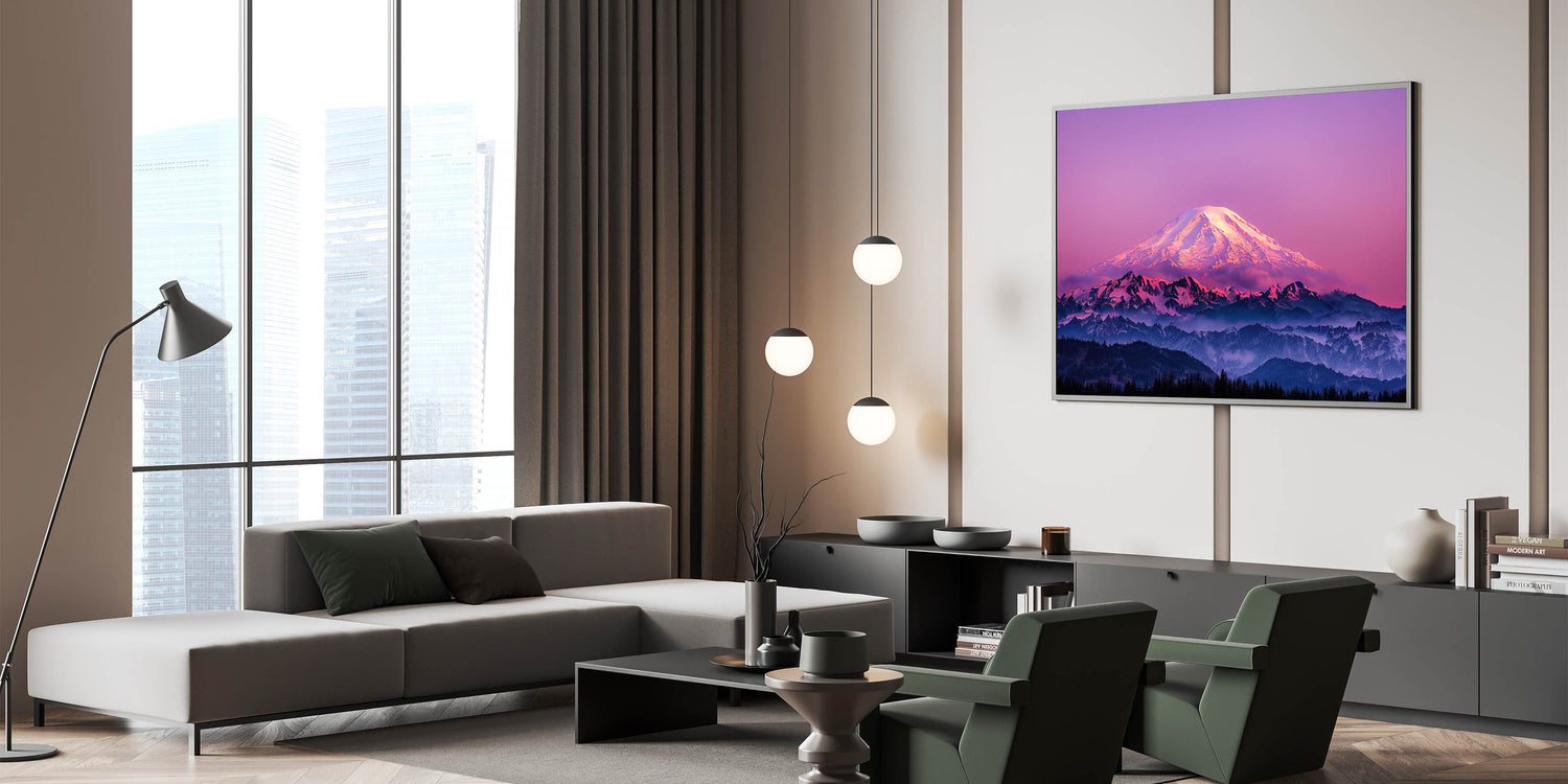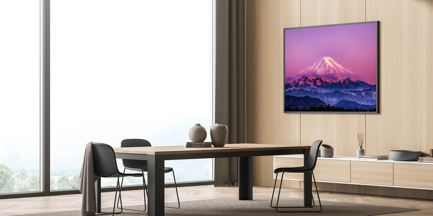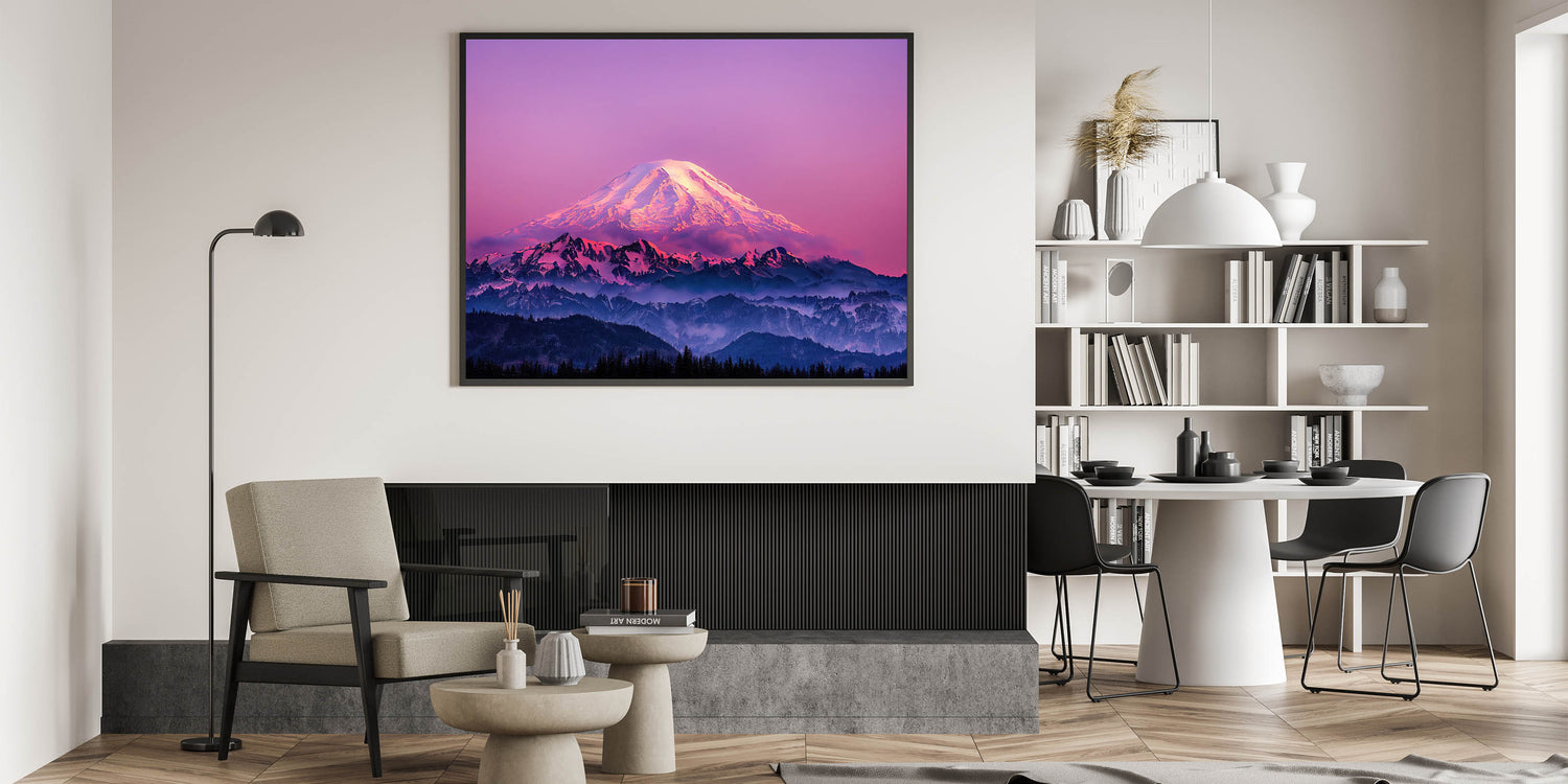 - Available Formats: Stretched canvas, framed Mount Rainier art, acrylic glass, rolled canvas, and fine art prints.