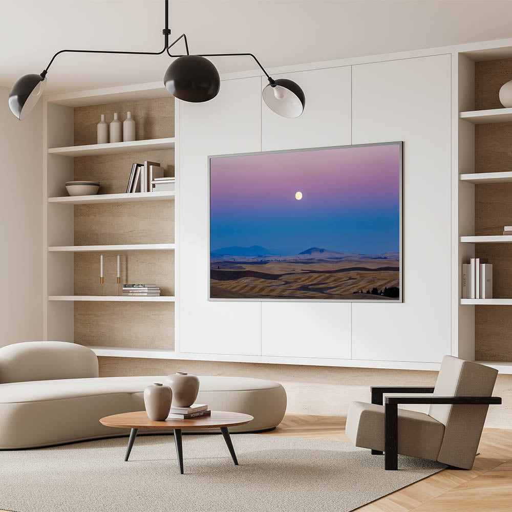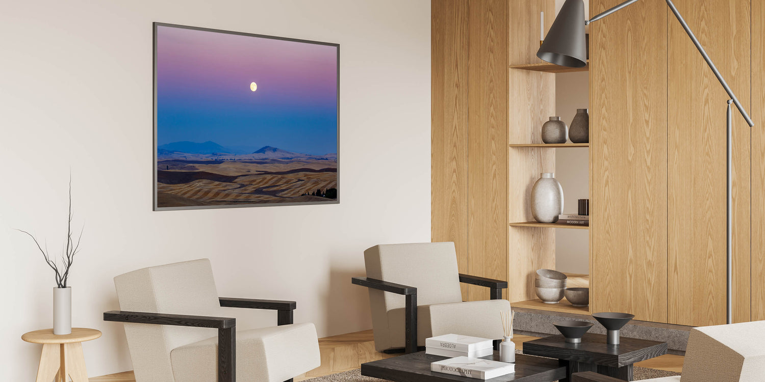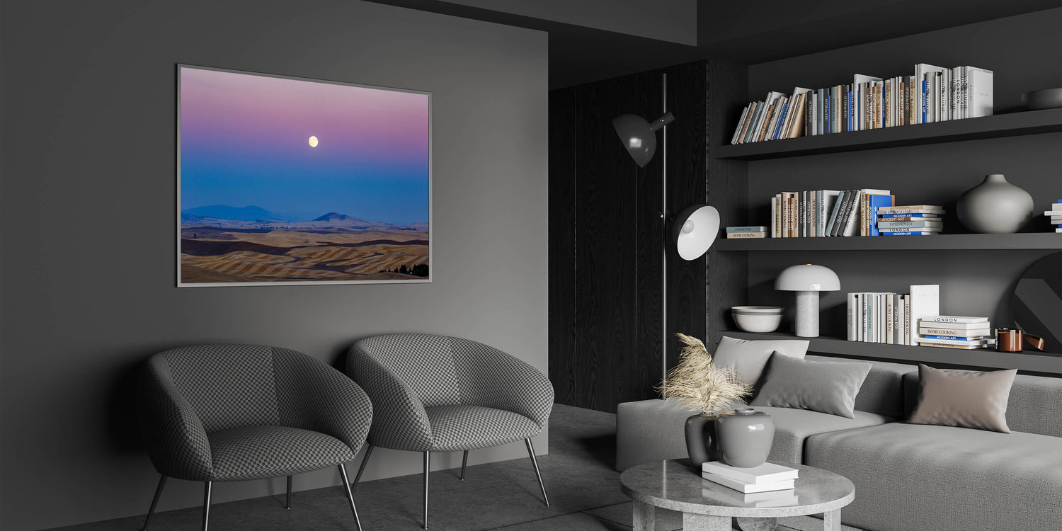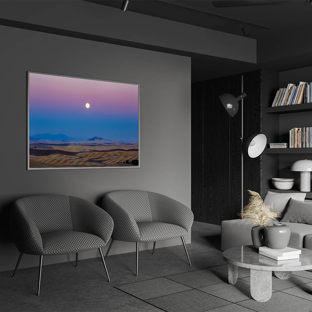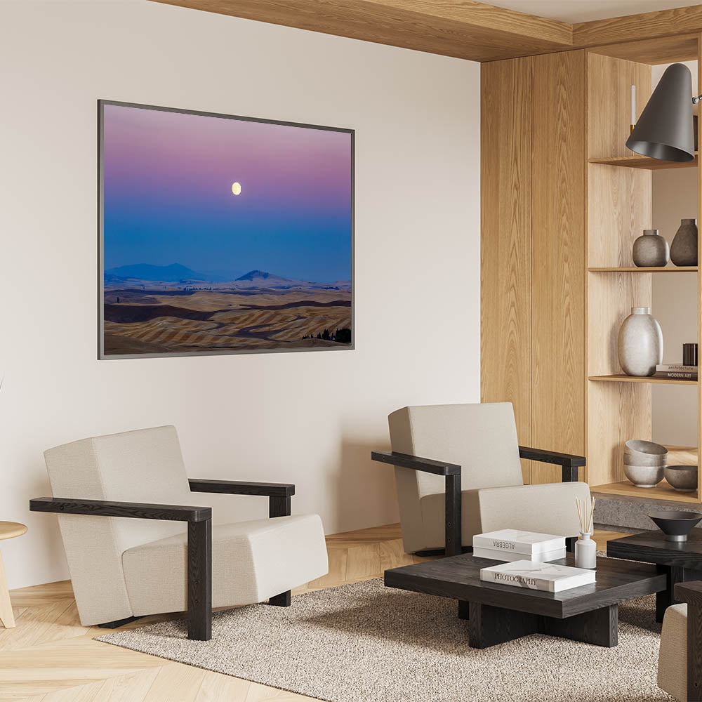 Elevate your space with this moonlit Palouse landscape, offering a calming and elegant addition to your home or office decor.