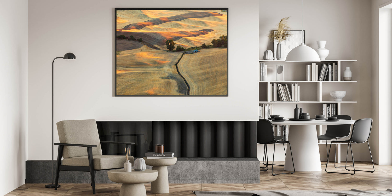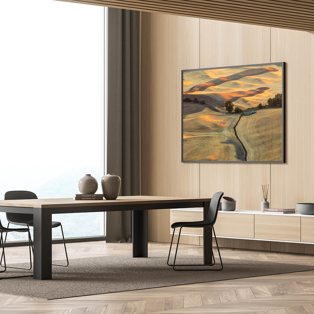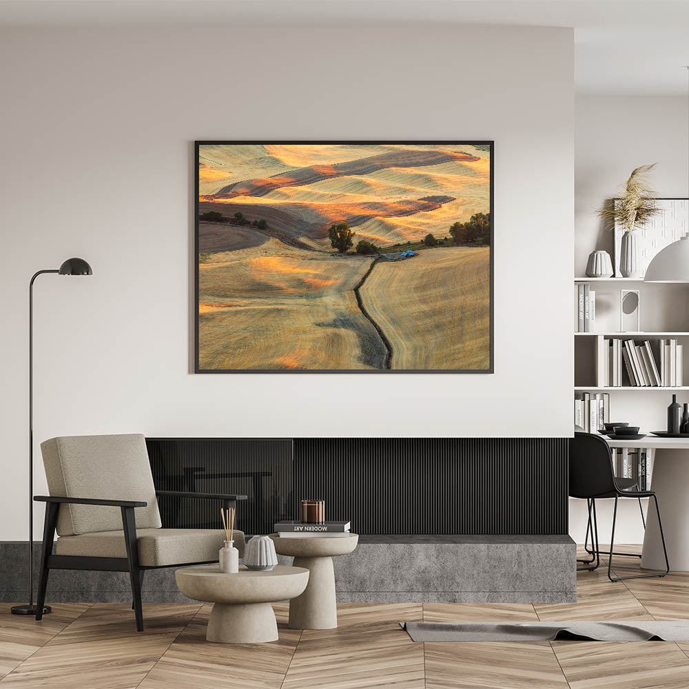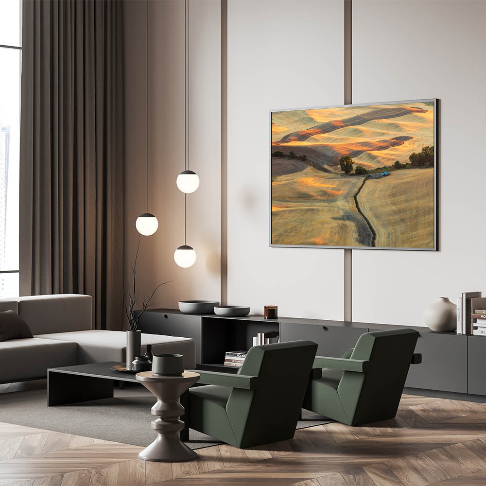 This breathtaking Palouse landscape art is ideal for those who appreciate the peaceful beauty of nature and want to bring a serene, golden glow into their interior spaces.