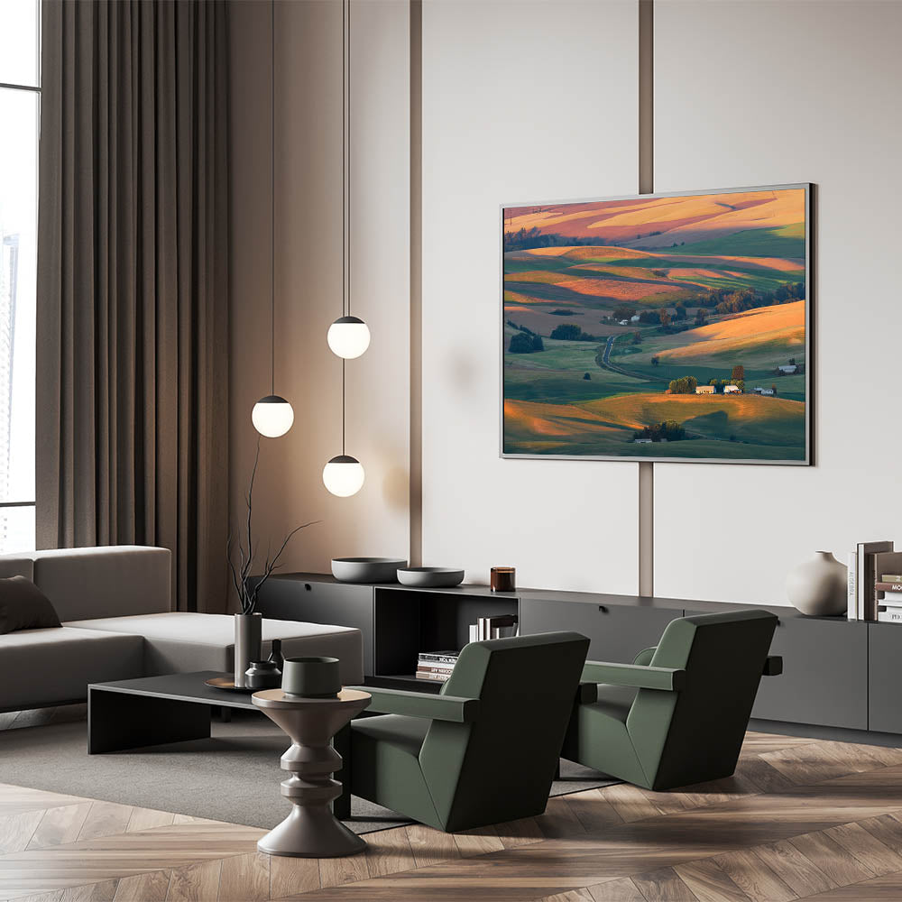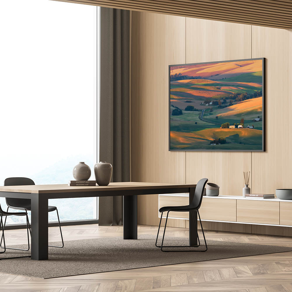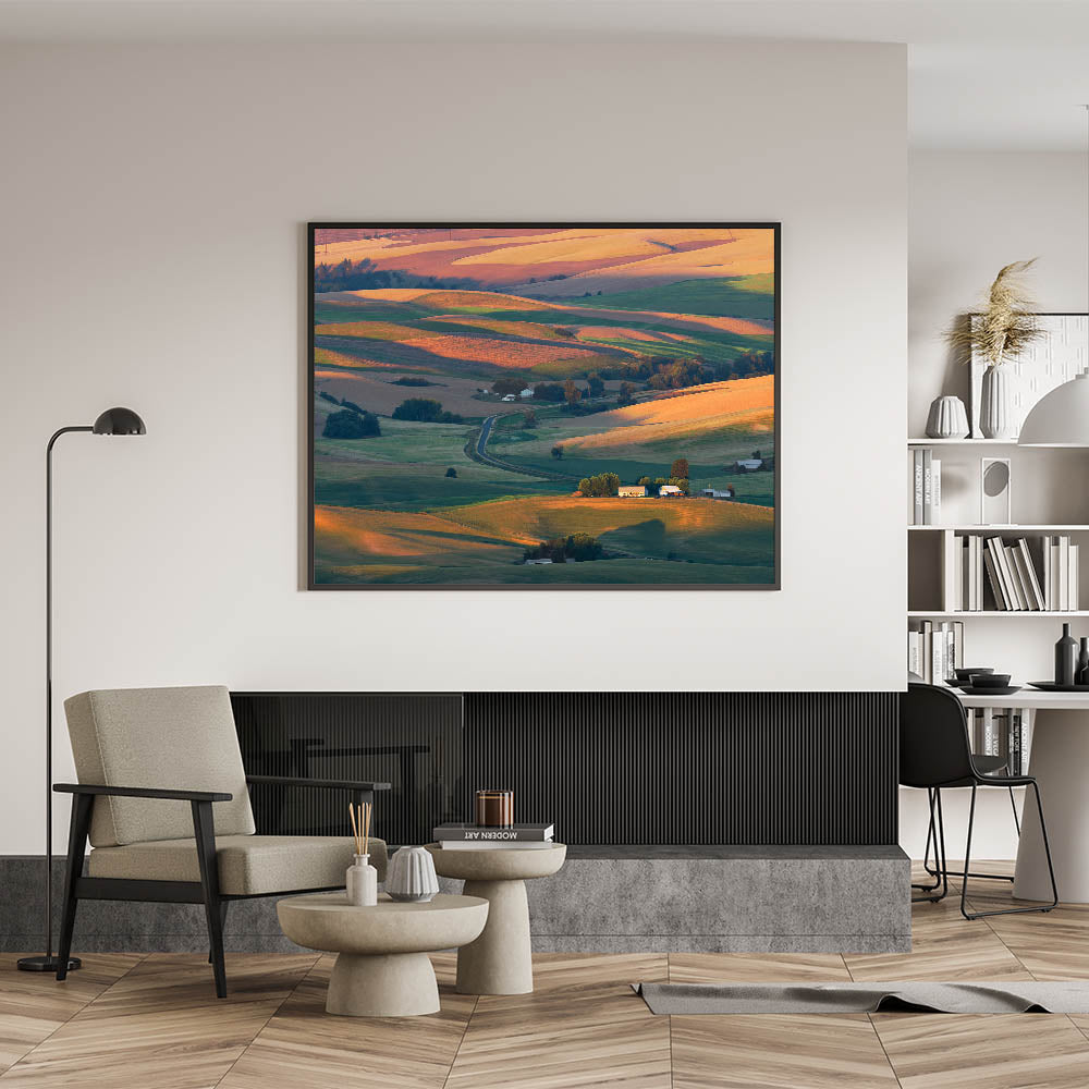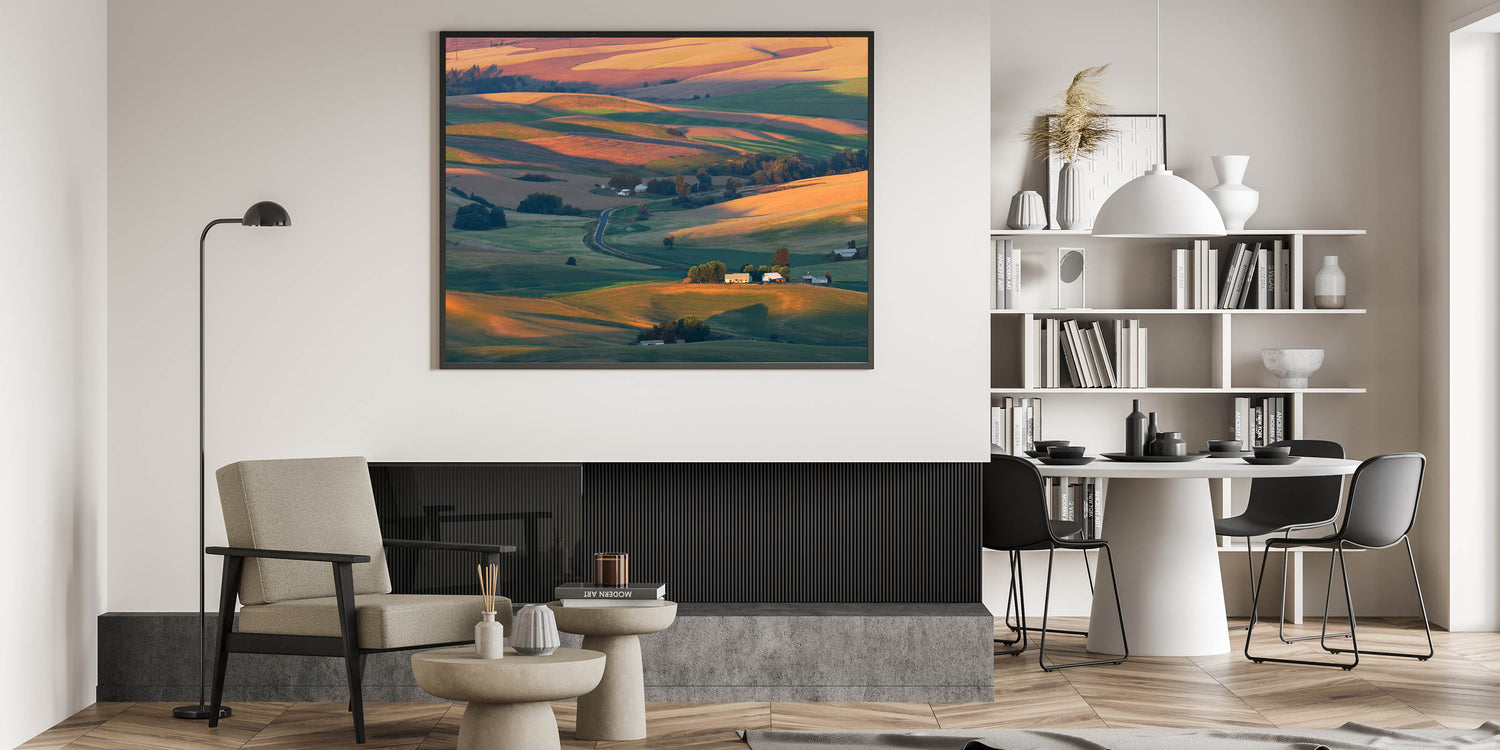- Custom framing options for a professional and polished finish with framed Palouse art