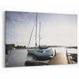 Bring the serene beauty of a sunlit harbor into your home with this elegant coastal wall art. The image captures the tranquil essence of boats gently docked under the warm glow of the sun, making it a perfect piece for nautical-themed decor.