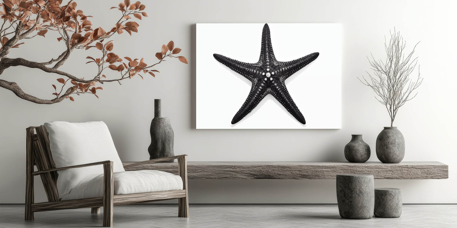 Black Starfish Wall Art - Elegant Marine Life Canvas & Framed Print