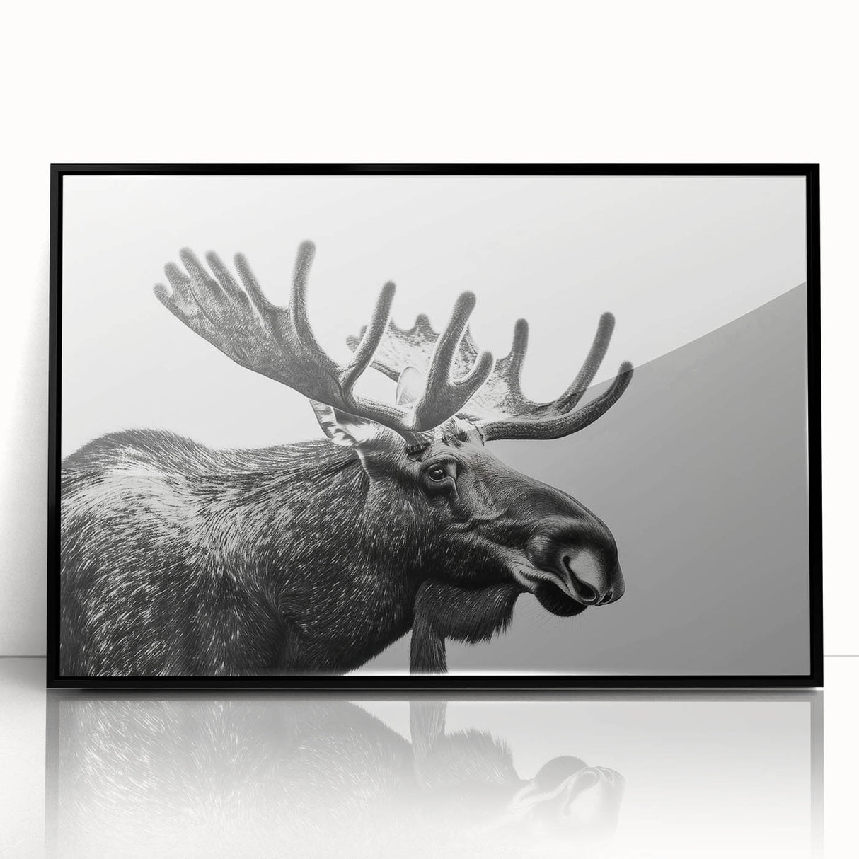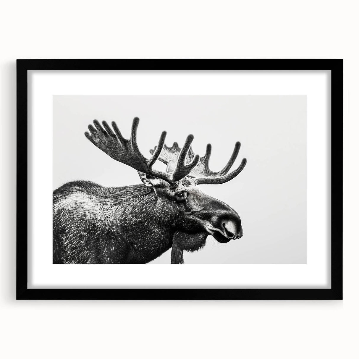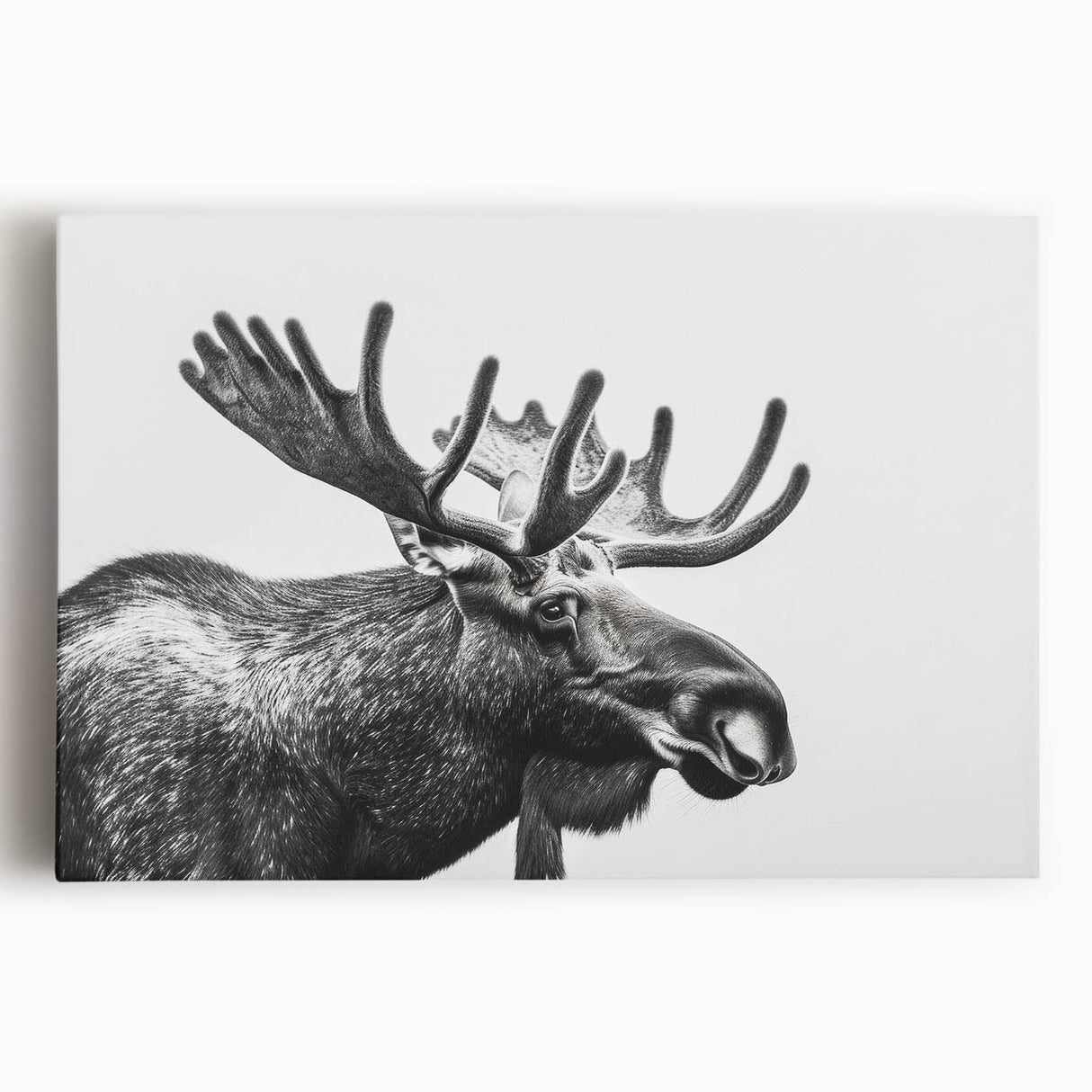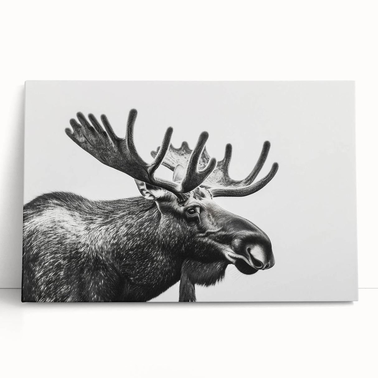 Black & White Moose Portrait - Elegant Wildlife Canvas & Art Prints