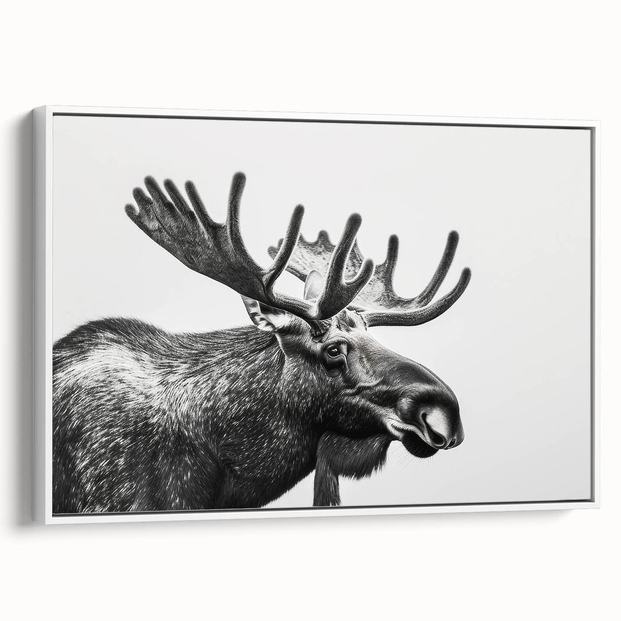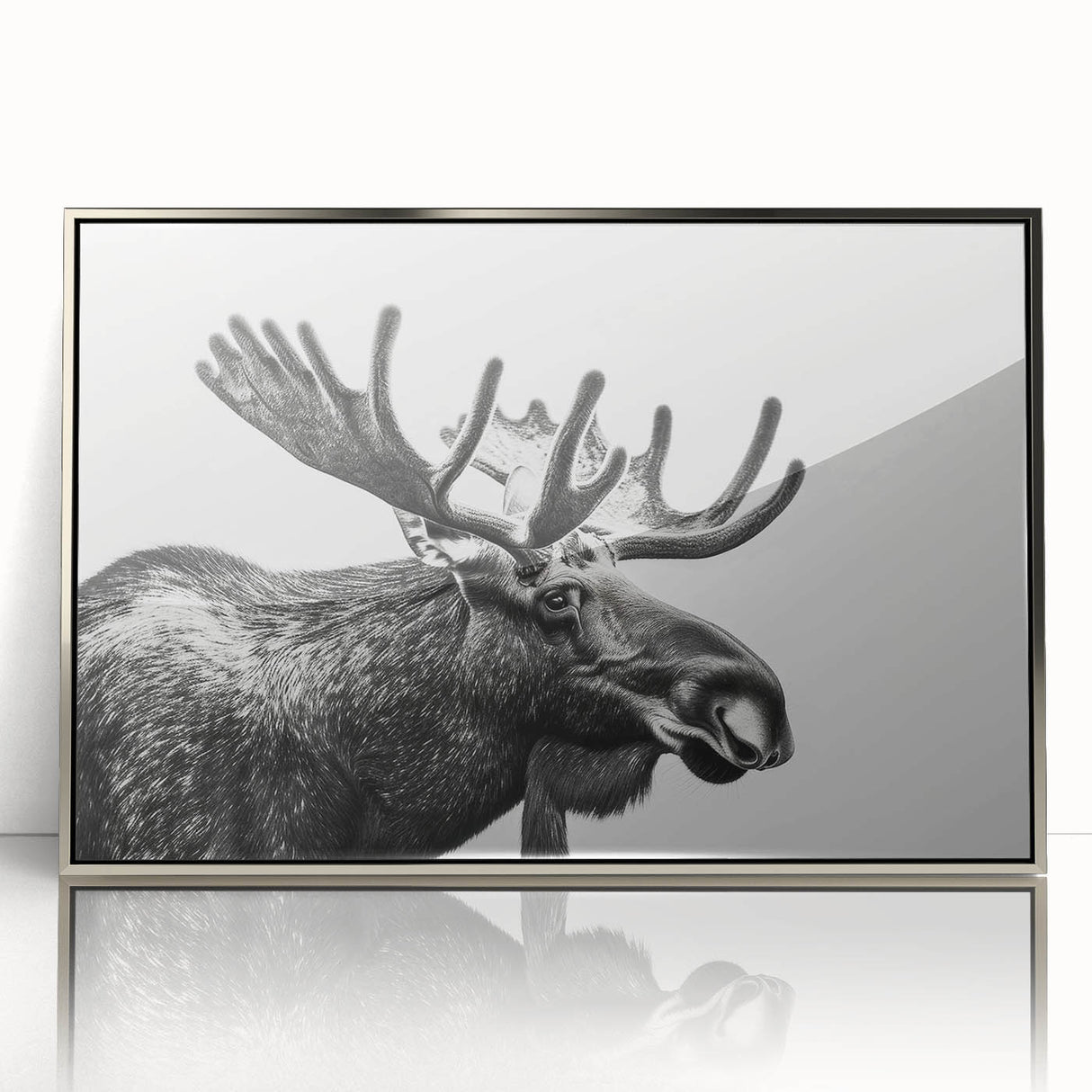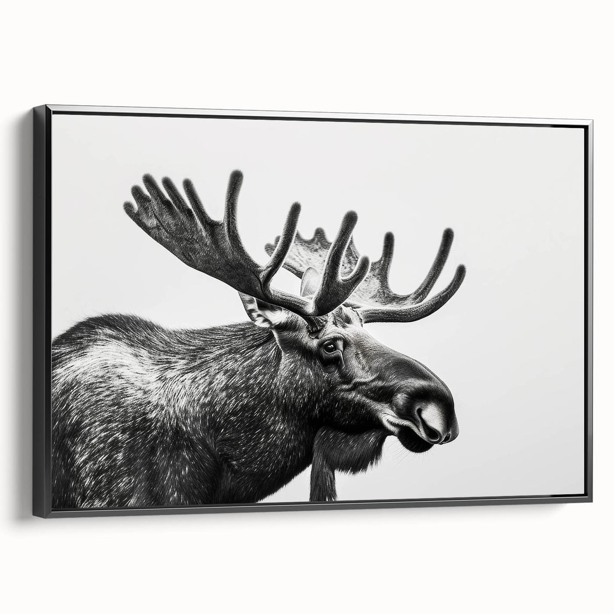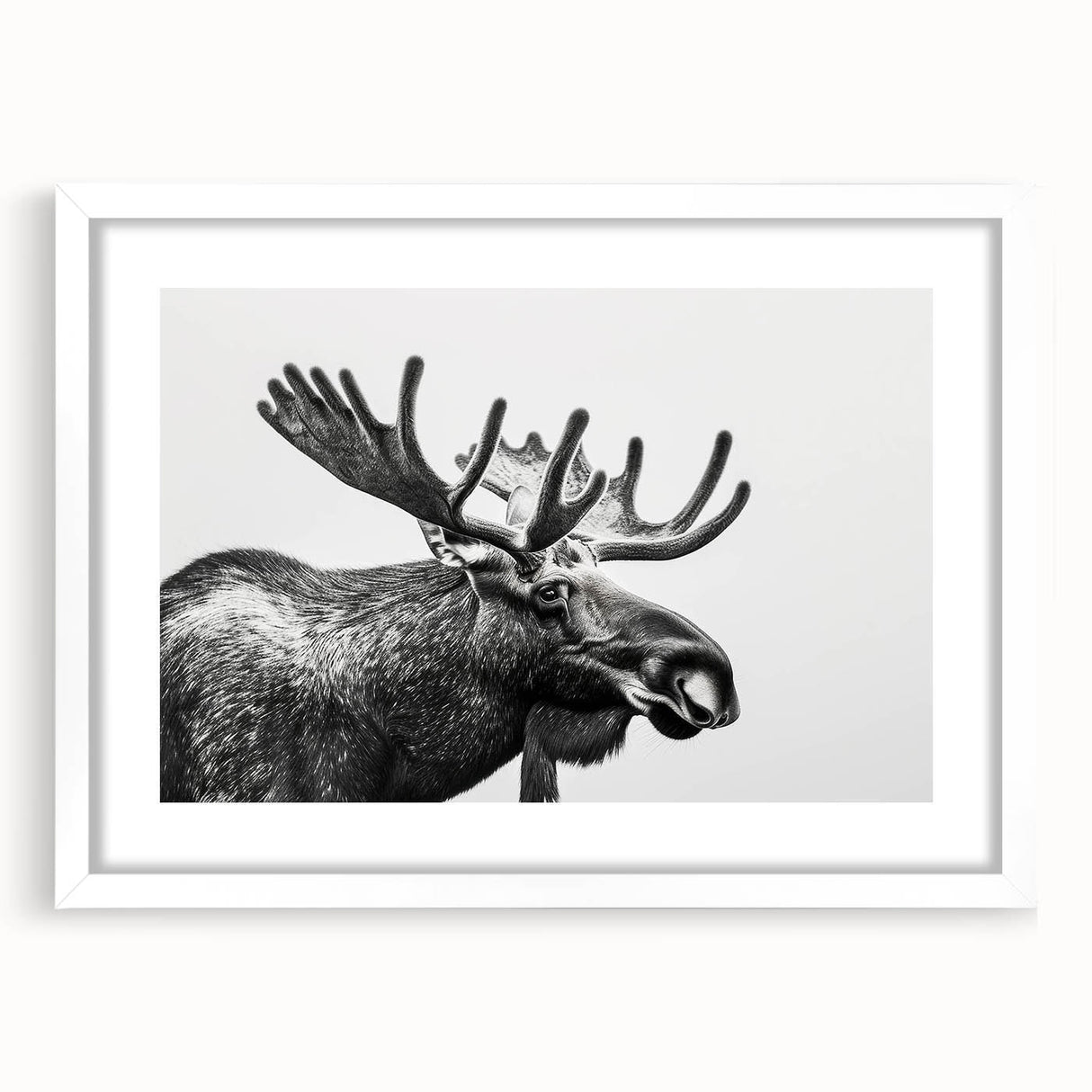 Black & White Moose Portrait - Elegant Wildlife Canvas & Art Prints