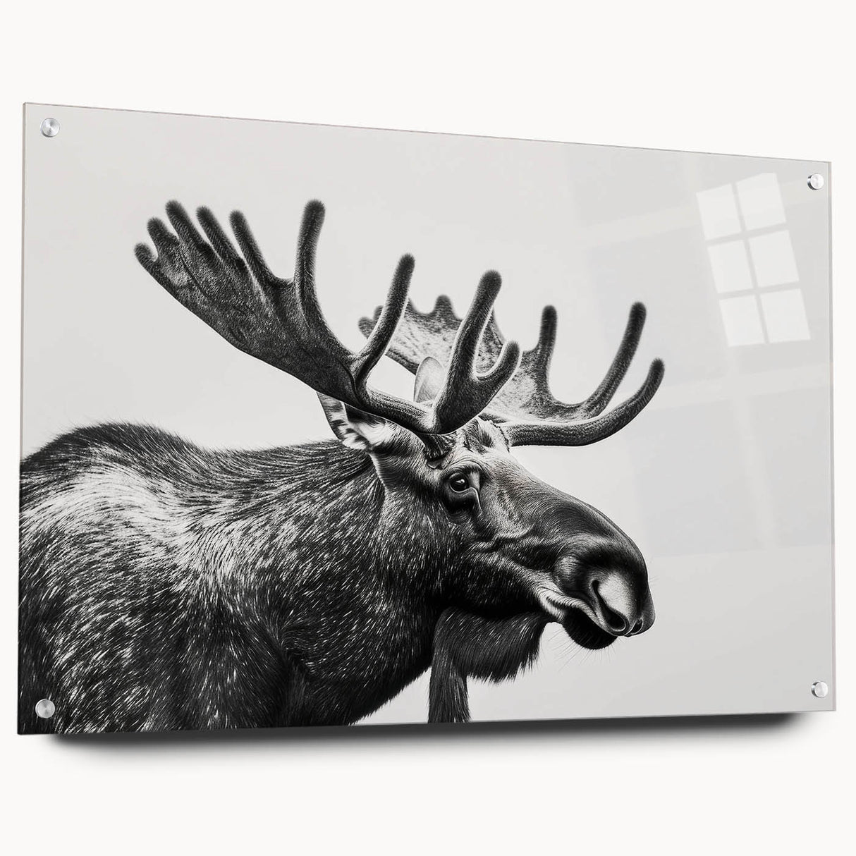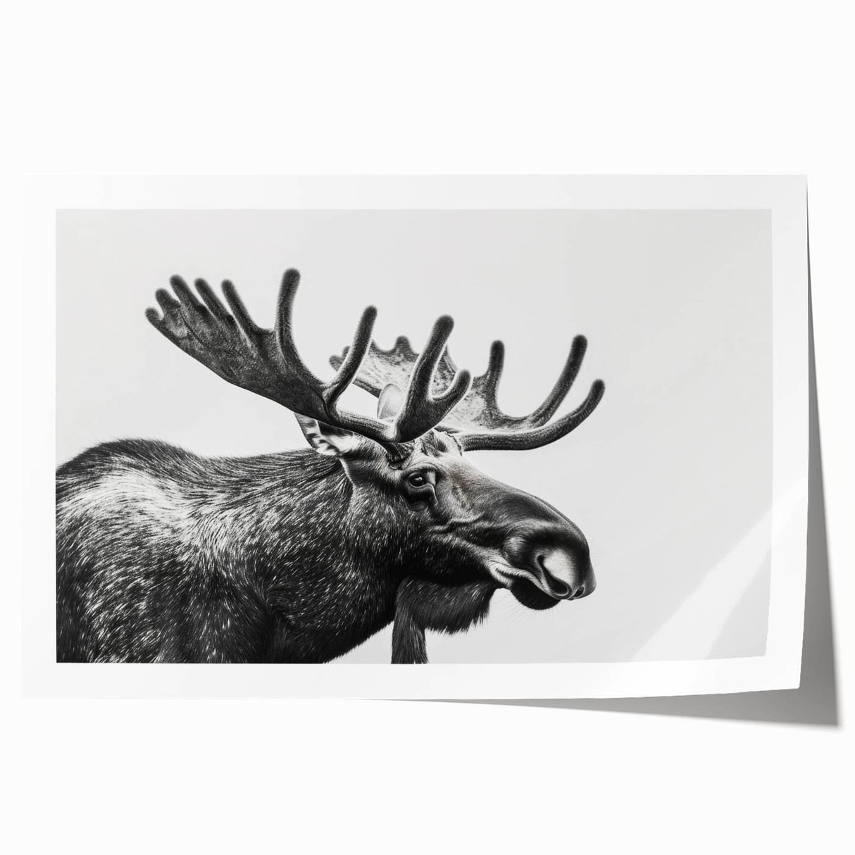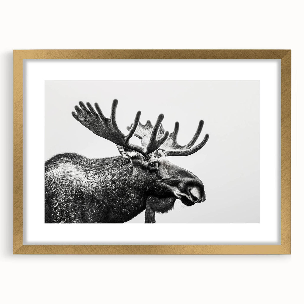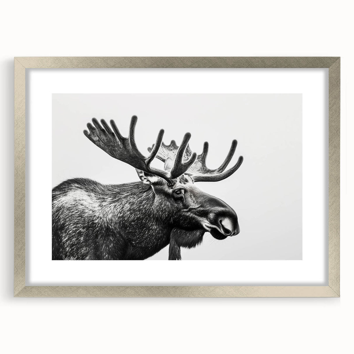 Black & White Moose Portrait - Elegant Wildlife Canvas & Art Prints