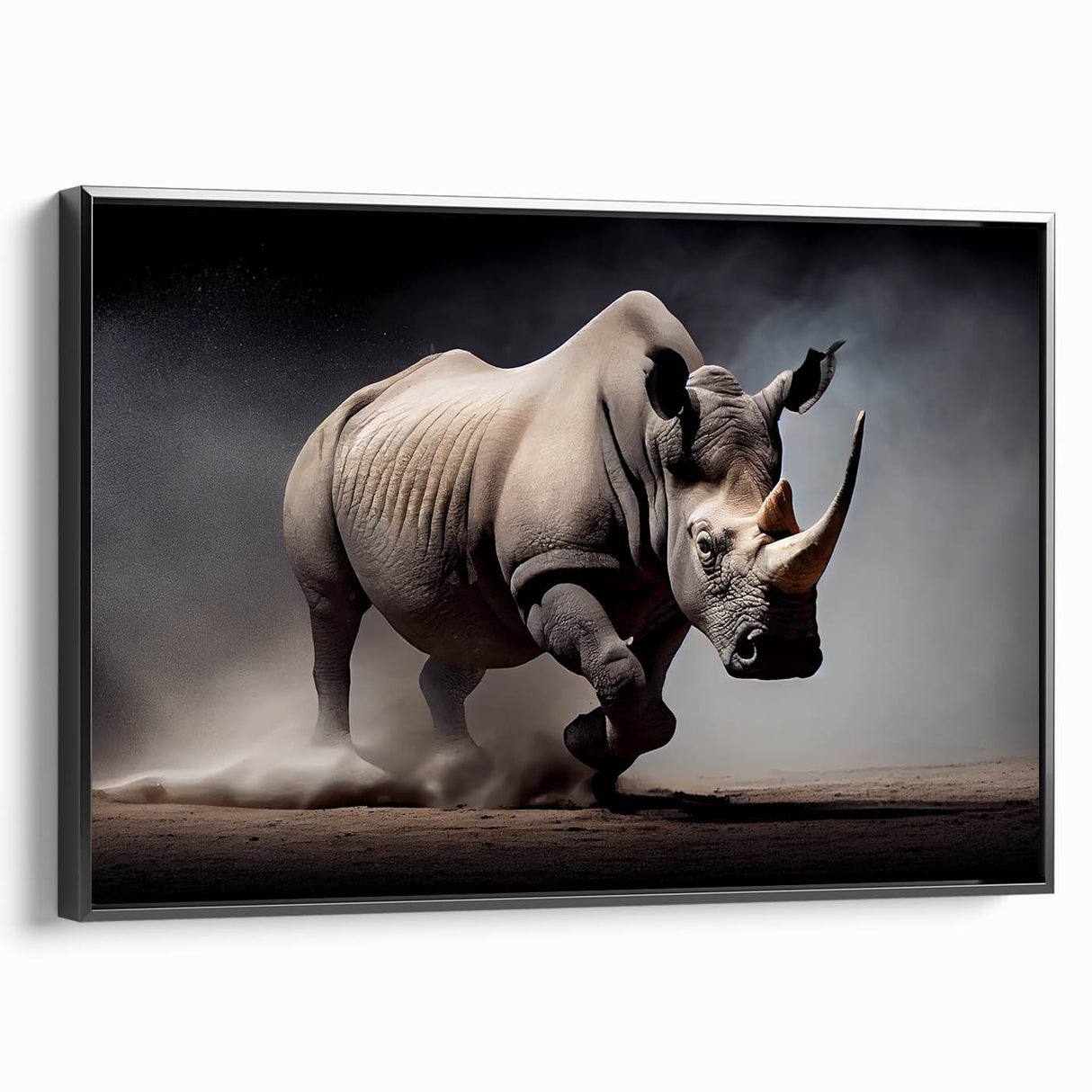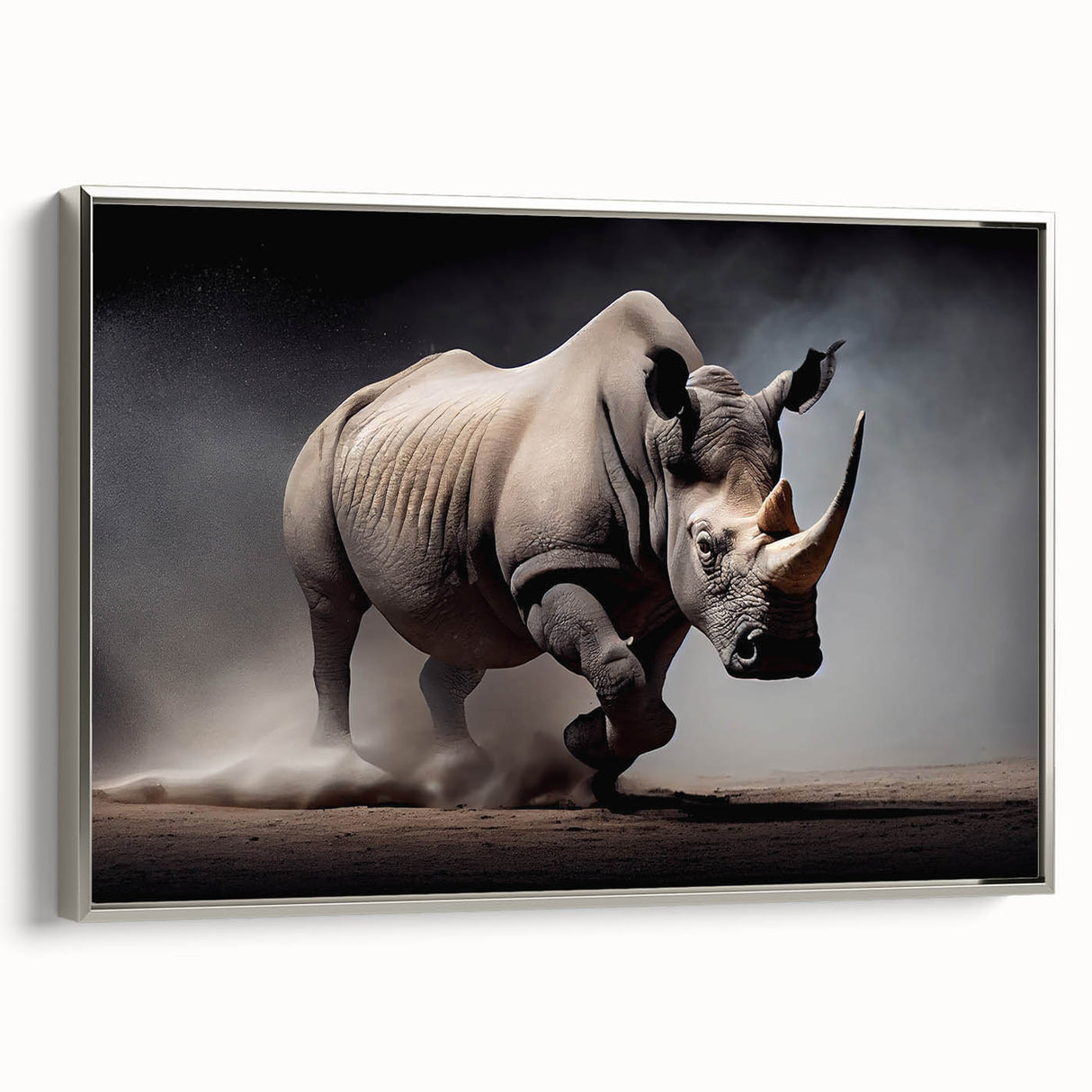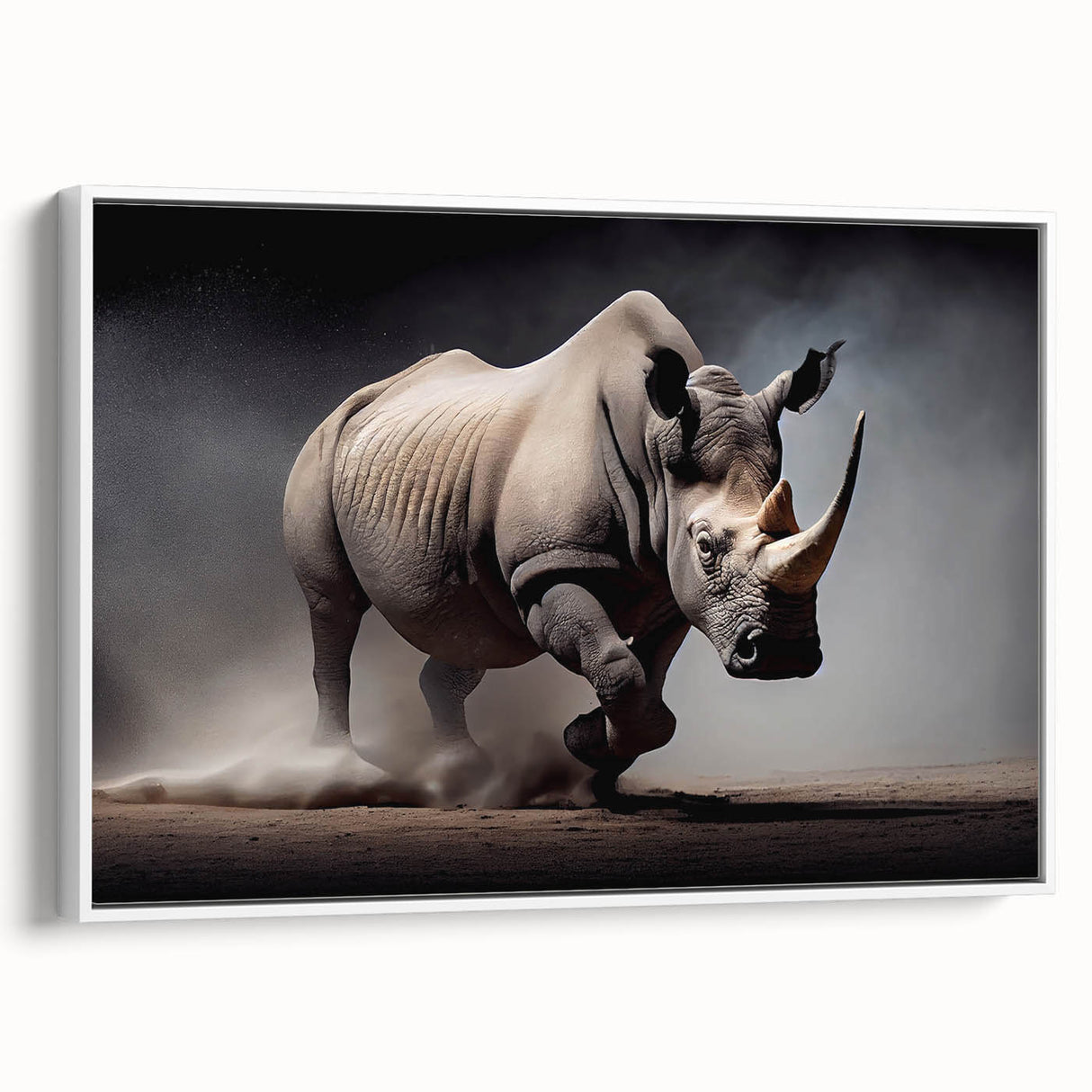 Charging Rhinoceros Wall Art - Powerful Rhino Canvas Print Decor