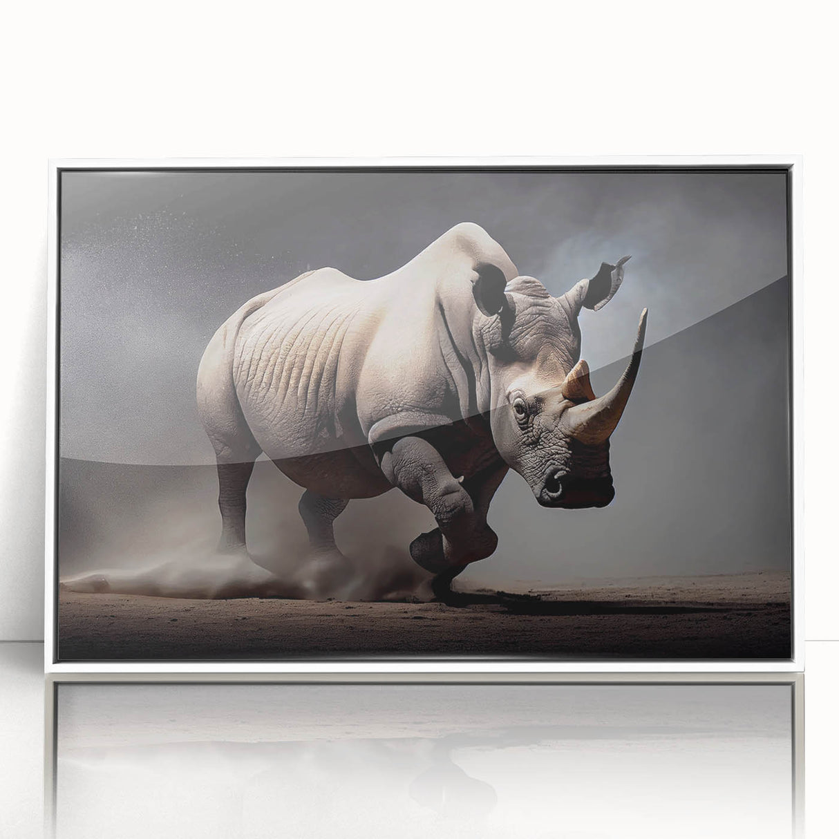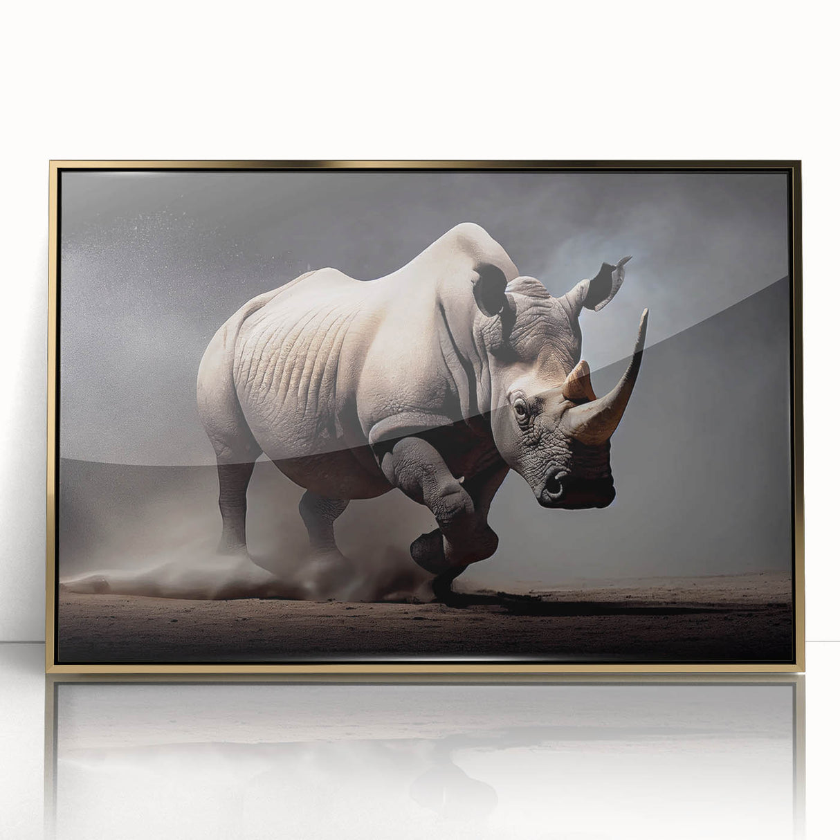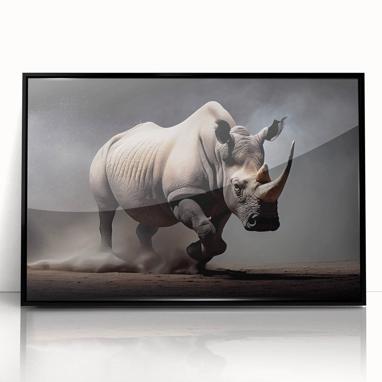 Charging Rhinoceros Wall Art - Powerful Rhino Canvas Print Decor