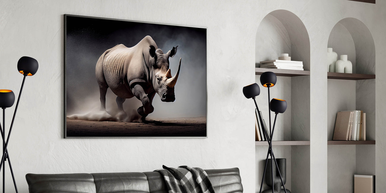 - Dynamic Design: The powerful imagery of a charging rhino brings energy and excitement to any room.