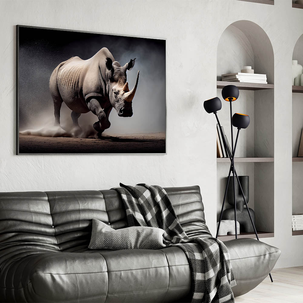 Transform your space with this powerful charging rhinoceros wall art, a perfect embodiment of strength and movement. Whether you're looking to make a bold statement or simply love the dynamic beauty of wildlife, this artwork will bring an unforgettable presence to your home or office.