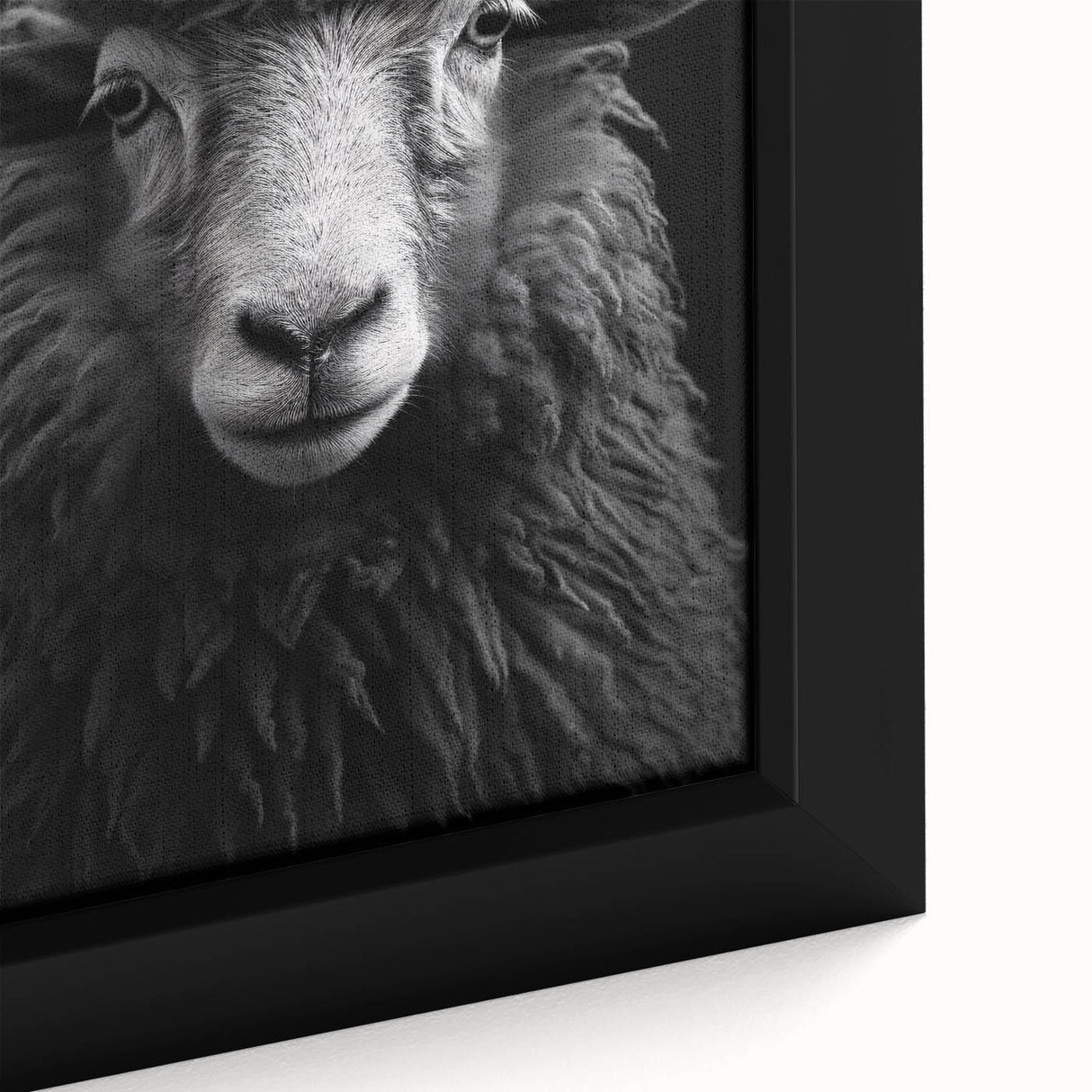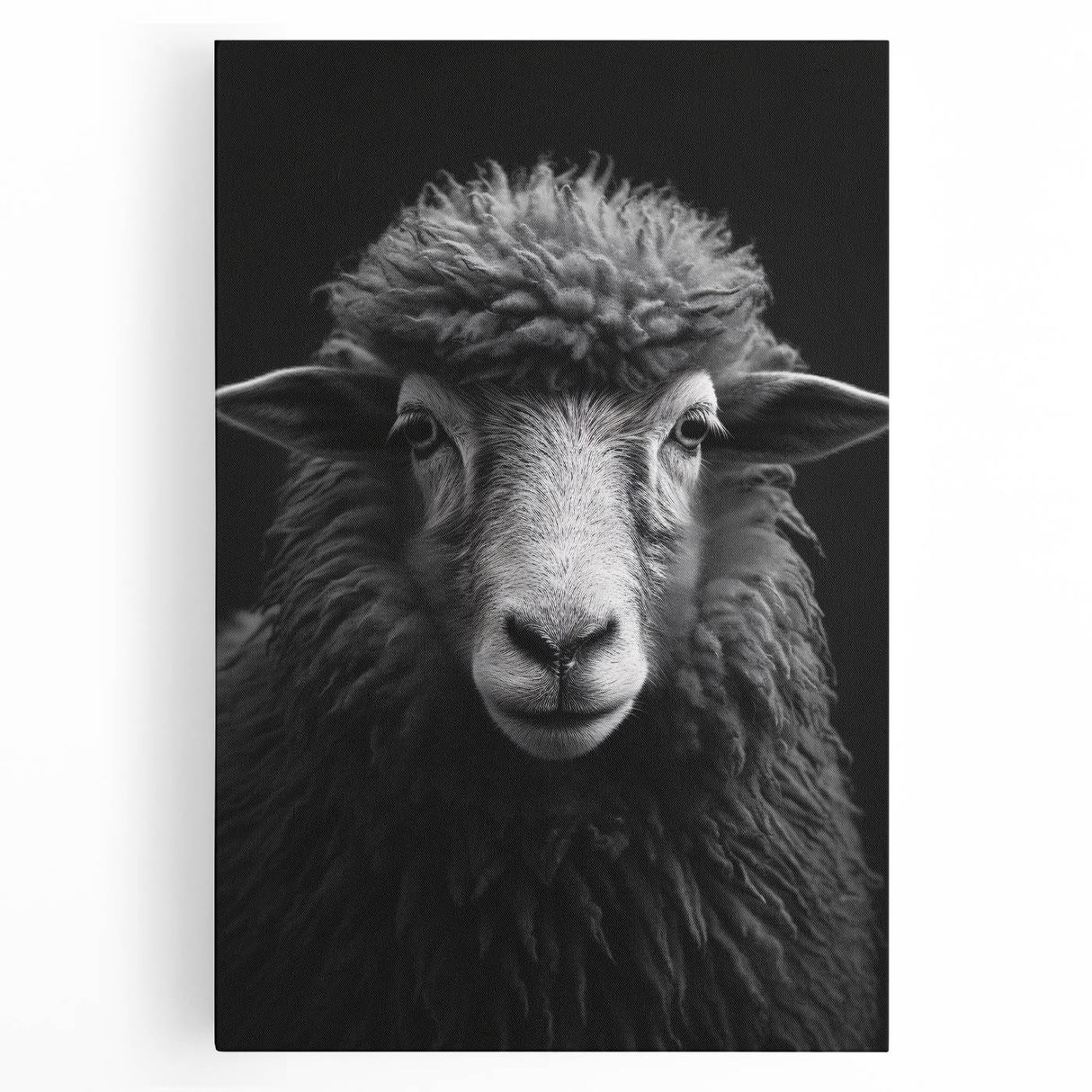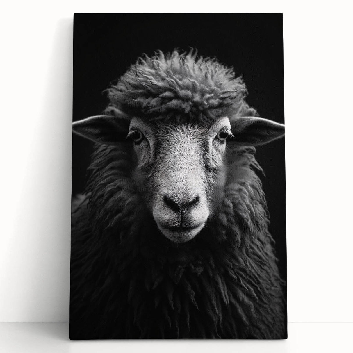 Dramatic Sheep Wall Art - Black and White Farm Animal Canvas Print