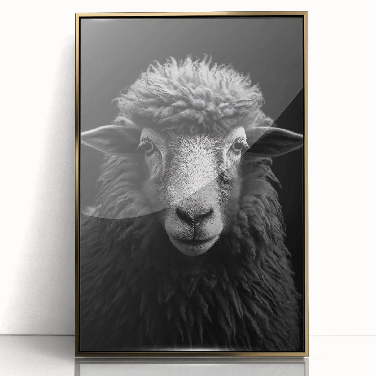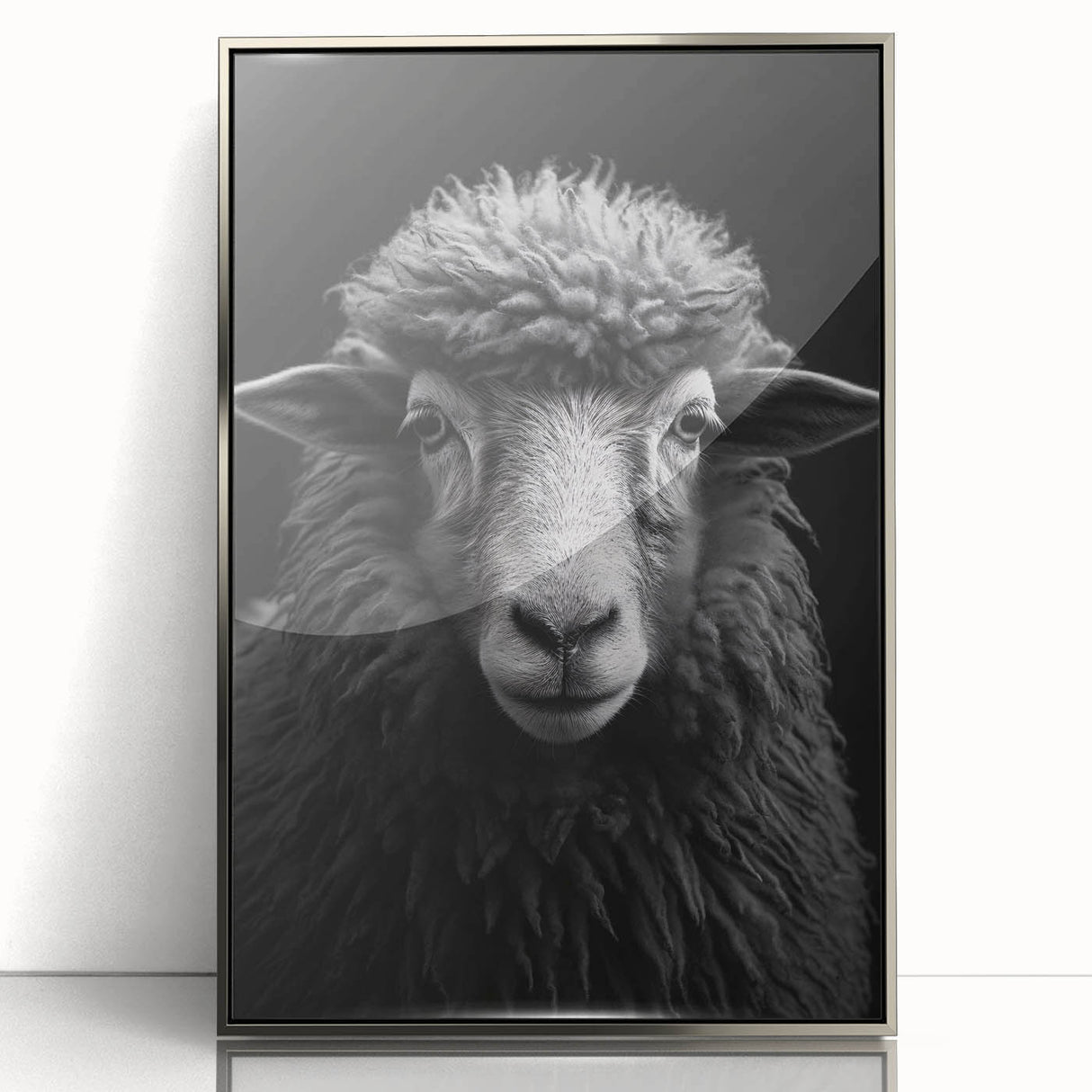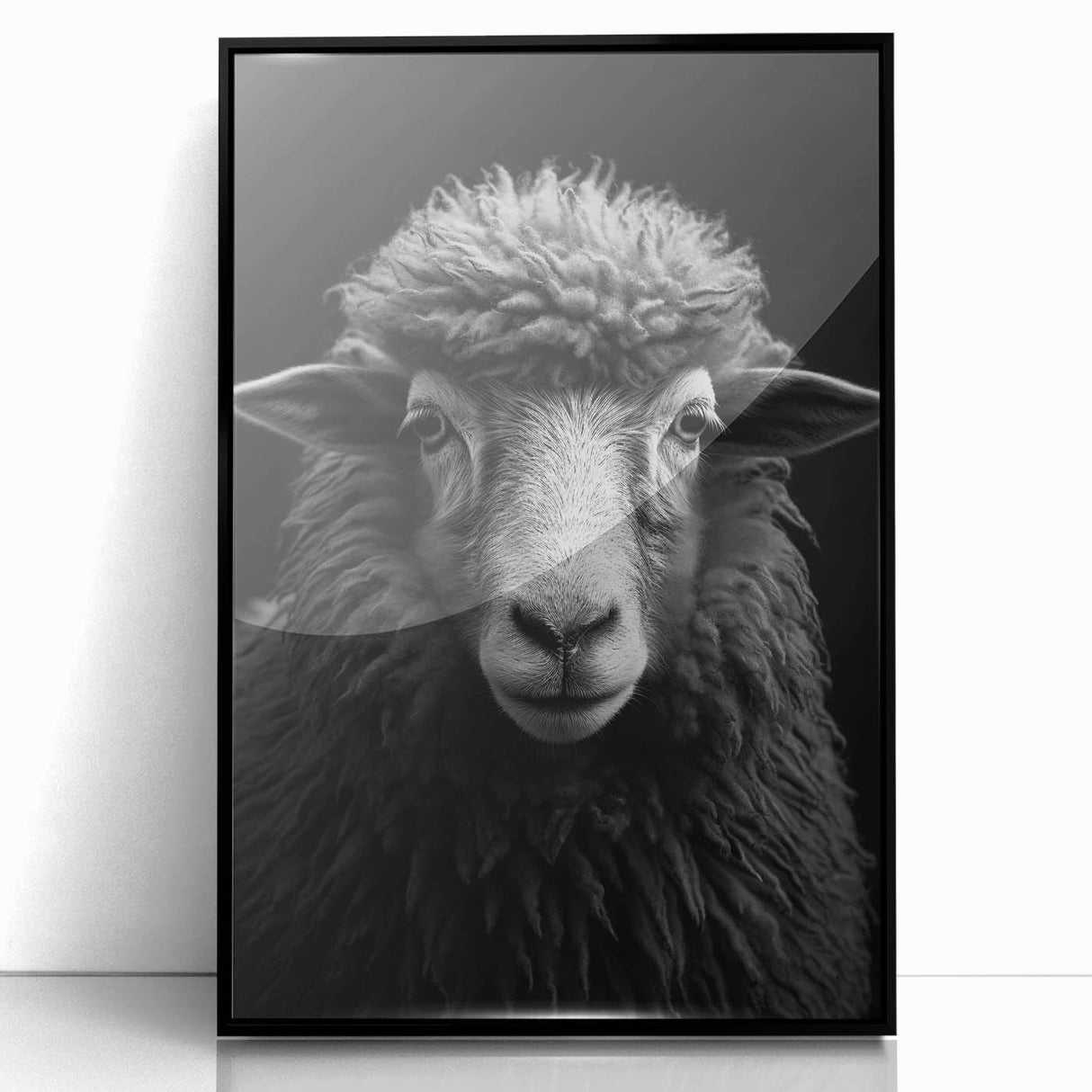 Dramatic Sheep Wall Art - Black and White Farm Animal Canvas Print
