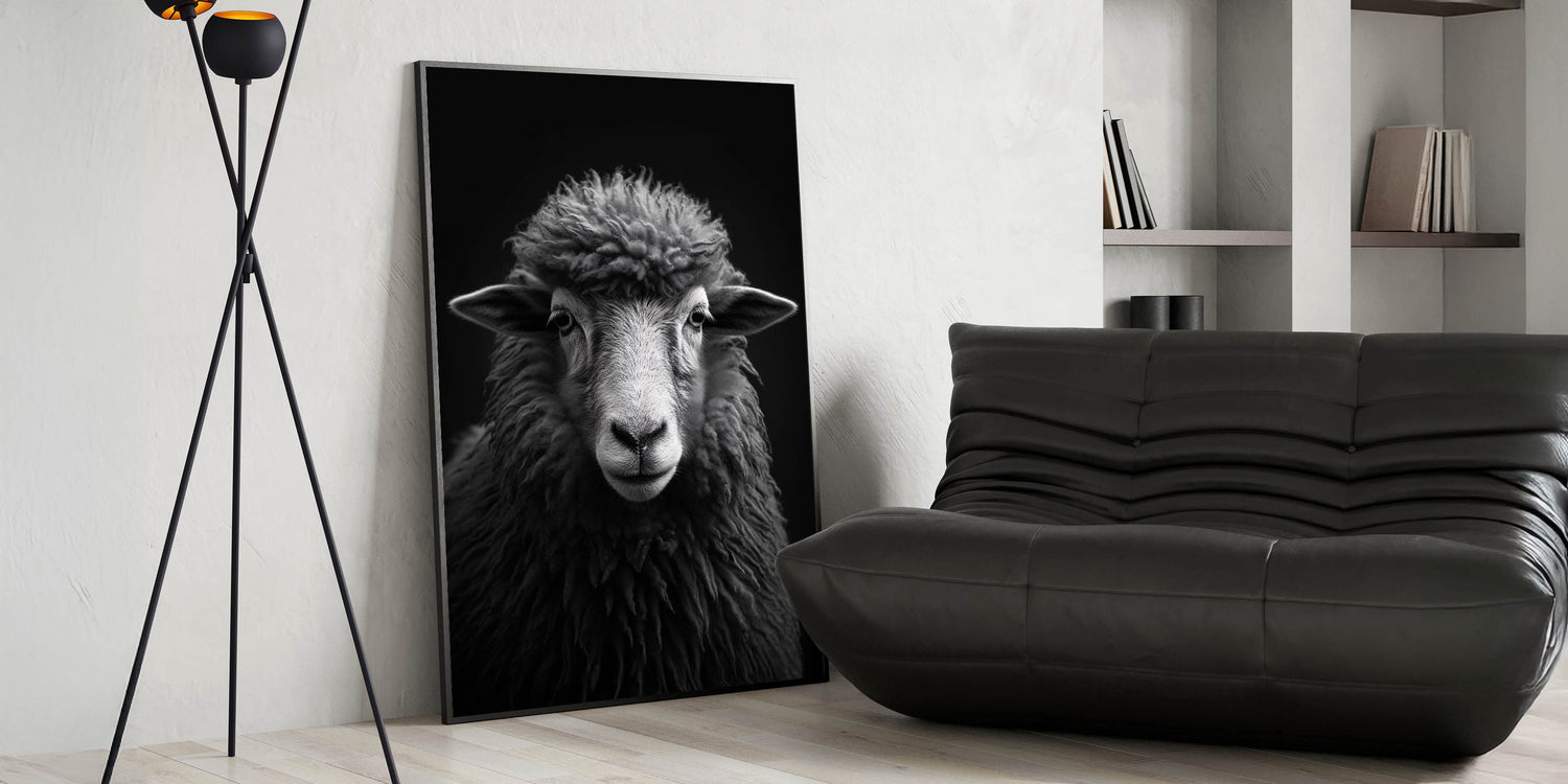 This dramatic sheep artwork is ideal for those who appreciate bold, eye-catching decor. Bring a touch of sophistication and intensity to your home with this striking piece.