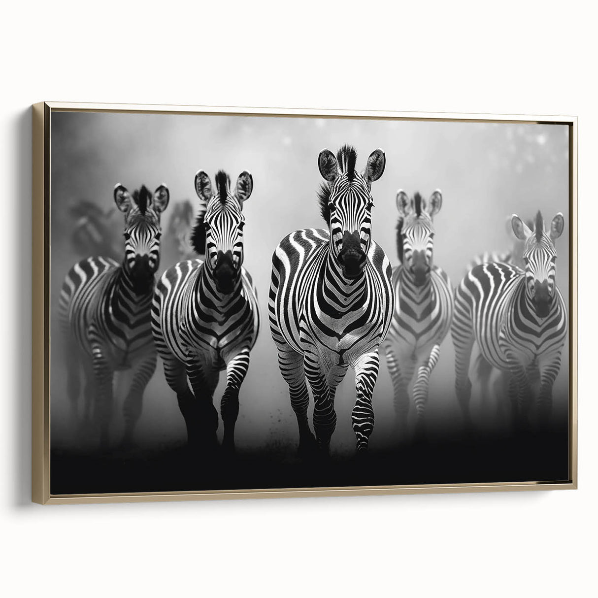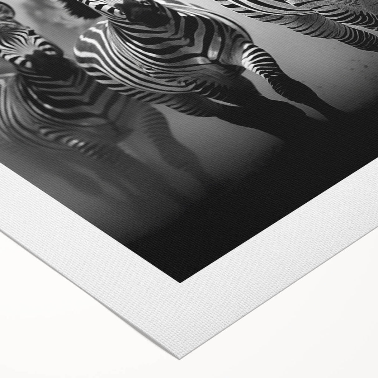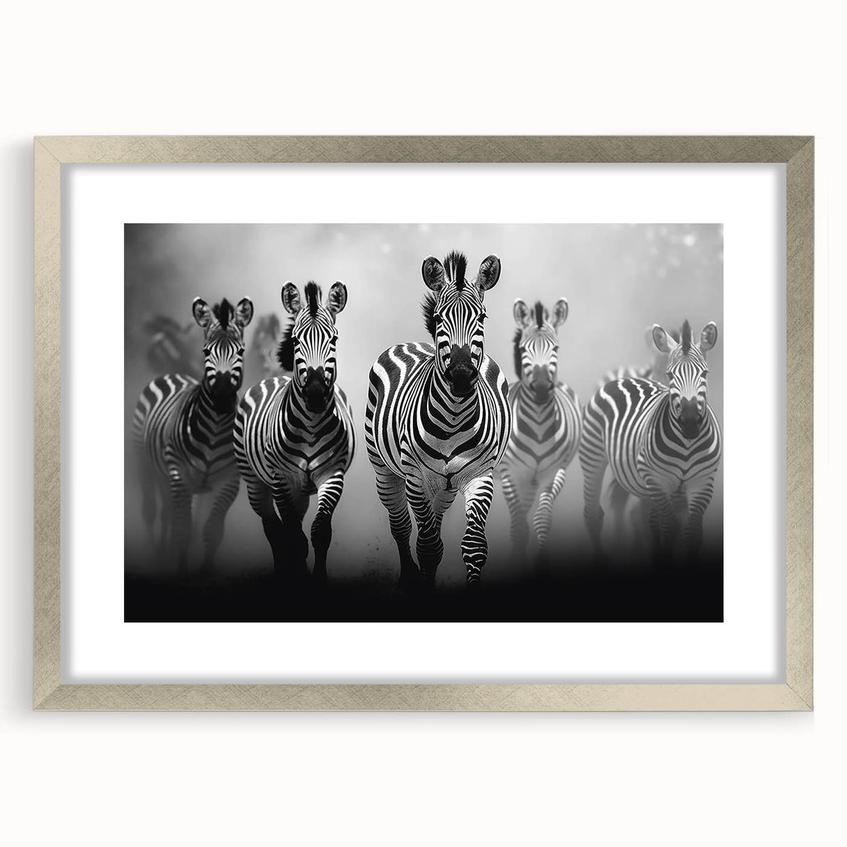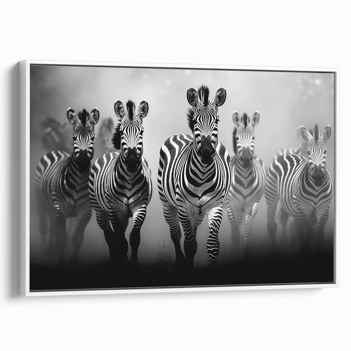 - Striking Imagery: A dynamic black and white depiction of a zebra herd in motion, perfect for modern and contemporary spaces.