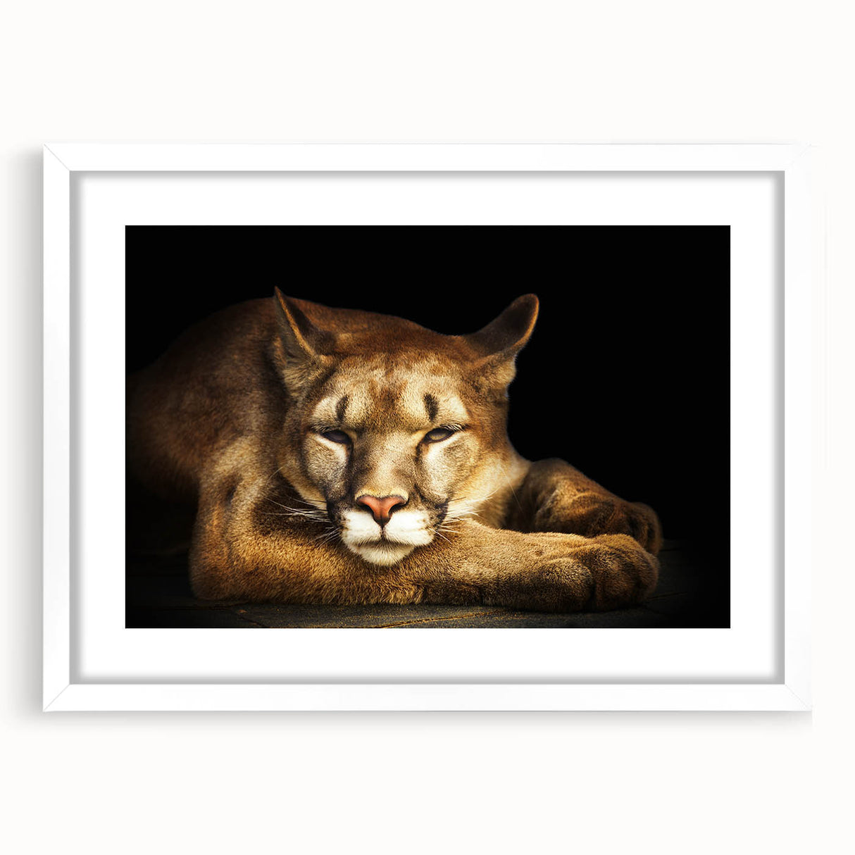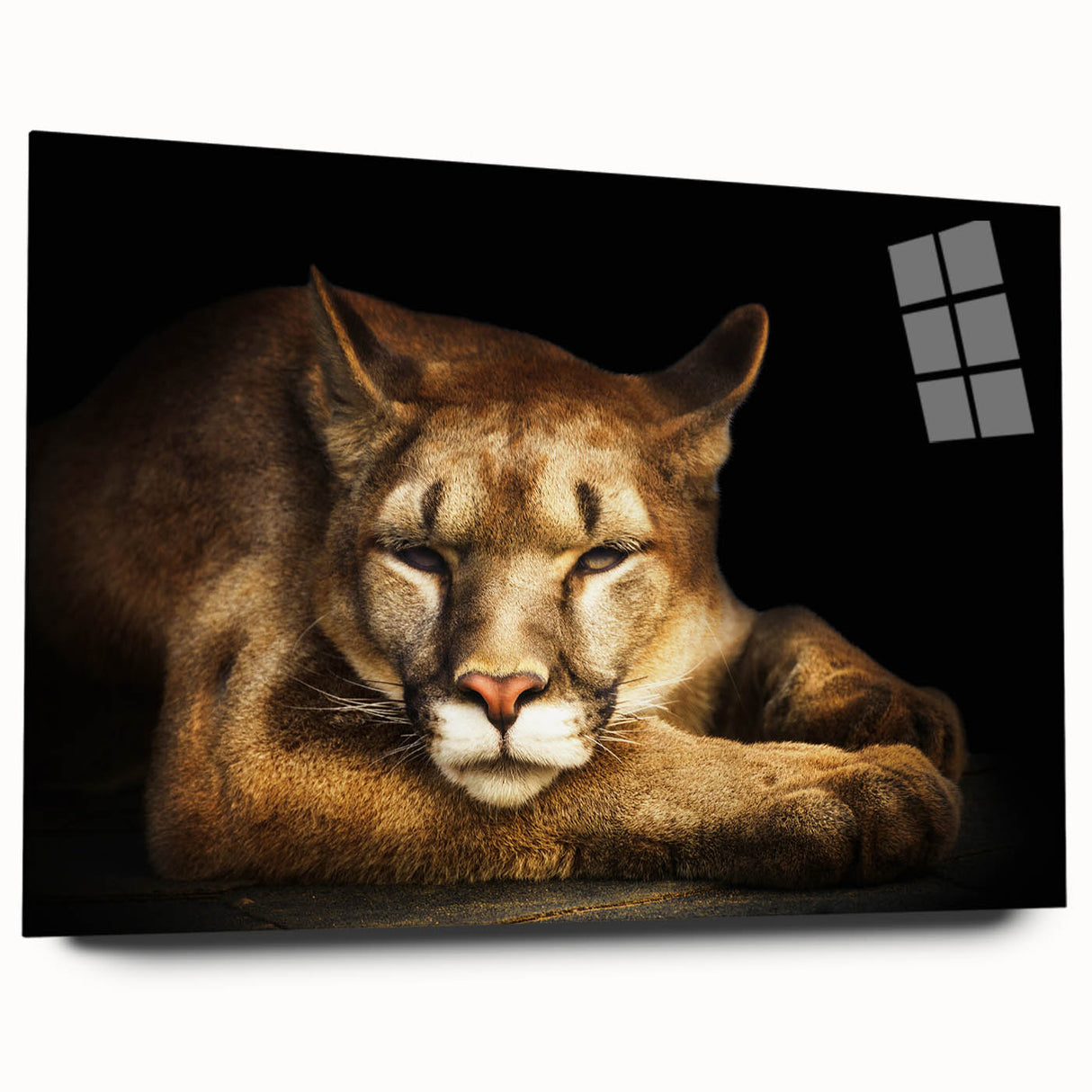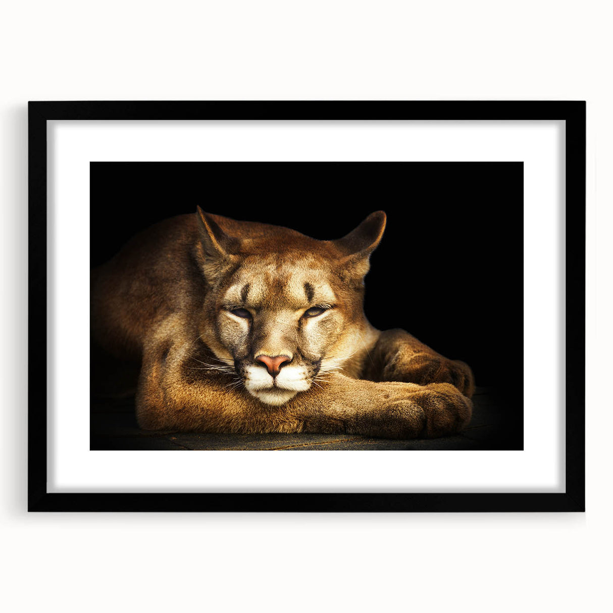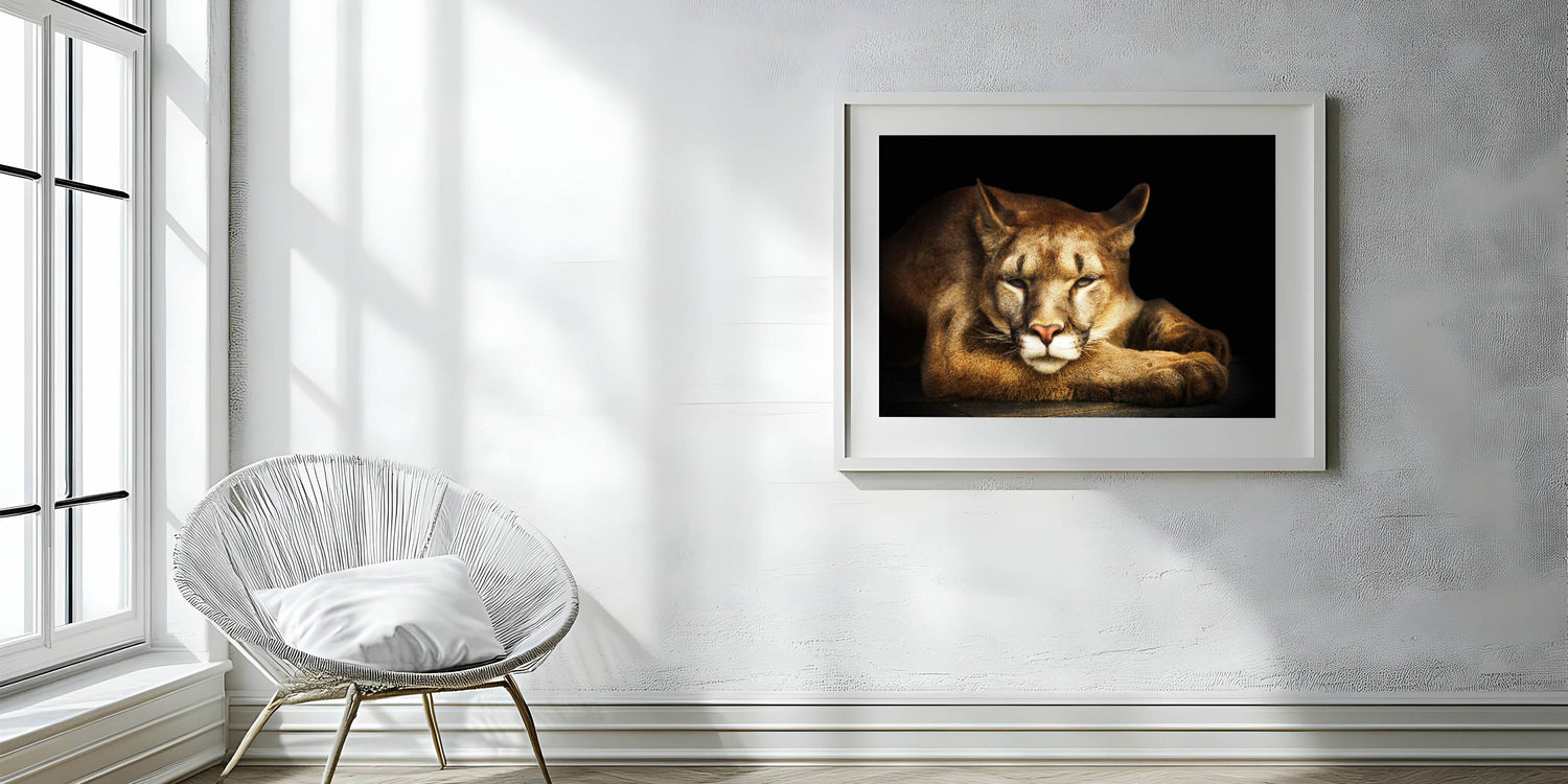 Bring the majestic beauty of the wild into your home with this Elegant Cougar Wall Art. This captivating design showcases a serene yet powerful cougar resting against a dramatic black background, creating a striking contrast that highlights its natural grace. Perfect for wildlife enthusiasts and art collectors, this piece adds sophistication and charm to any space.