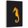 Make a bold statement with this striking golden seahorse wall art. The vivid yellow seahorse stands out brilliantly against the deep black background, creating a powerful contrast that draws the eye. This artwork captures the delicate details of the seahorse while emphasizing its vibrant color, making it an ideal piece for those looking to add a touch of drama to their decor.