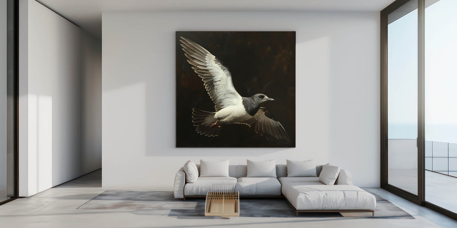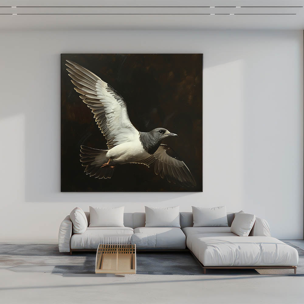 Capture the elegance of nature with this striking wildlife photography wall art featuring a graceful bird in mid-flight. The high-contrast details of the bird’s feathers against the deep black background create a bold and dramatic composition. Perfect for modern, minimalist, or nature-inspired interiors, this artwork adds a sense of motion and serenity to any space.