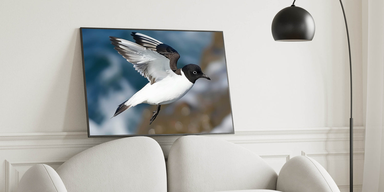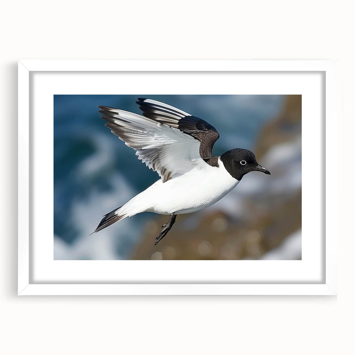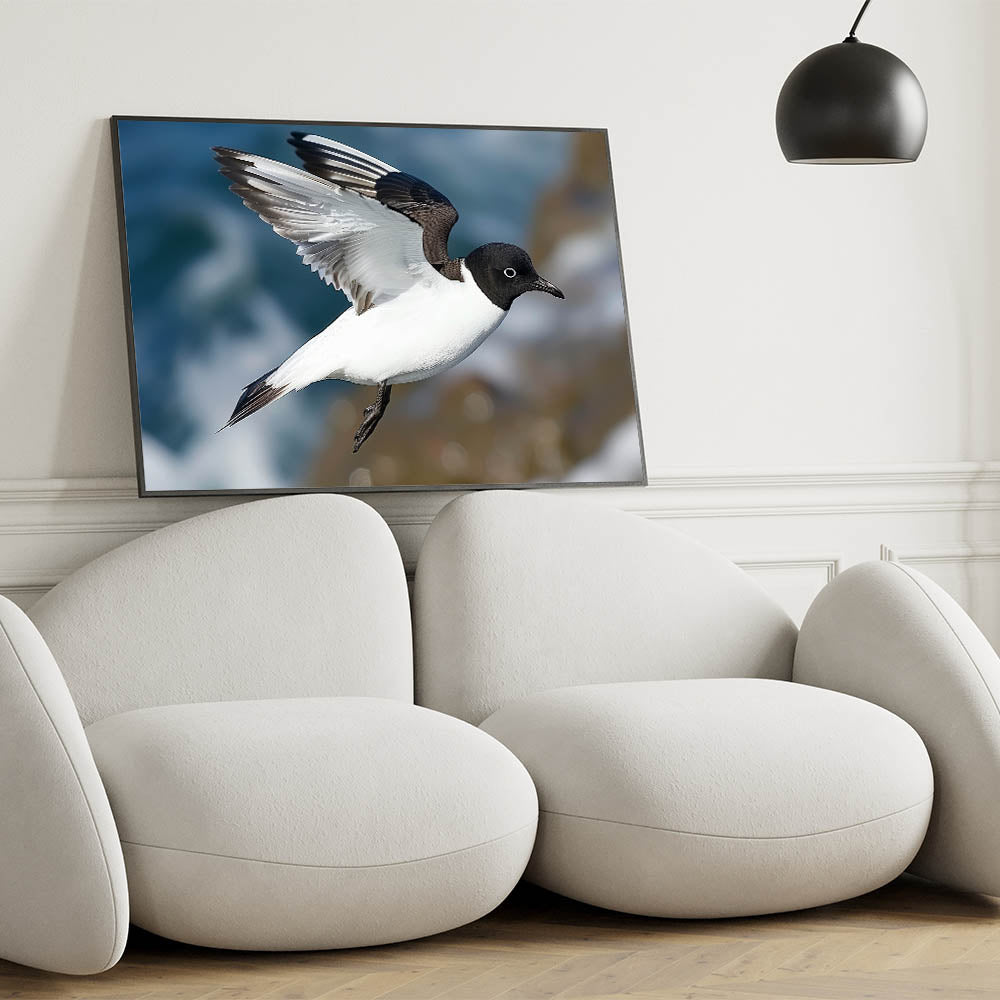 Capture the elegance of coastal wildlife with this stunning wildlife photography wall art featuring a gull in mid-flight. The crisp white and deep black of the gull's feathers stand out against the vibrant blue ocean background, creating a striking and serene composition. Perfect for modern, minimalist, or coastal-inspired interiors, this artwork brings the beauty of nature and the freedom of flight into your home.