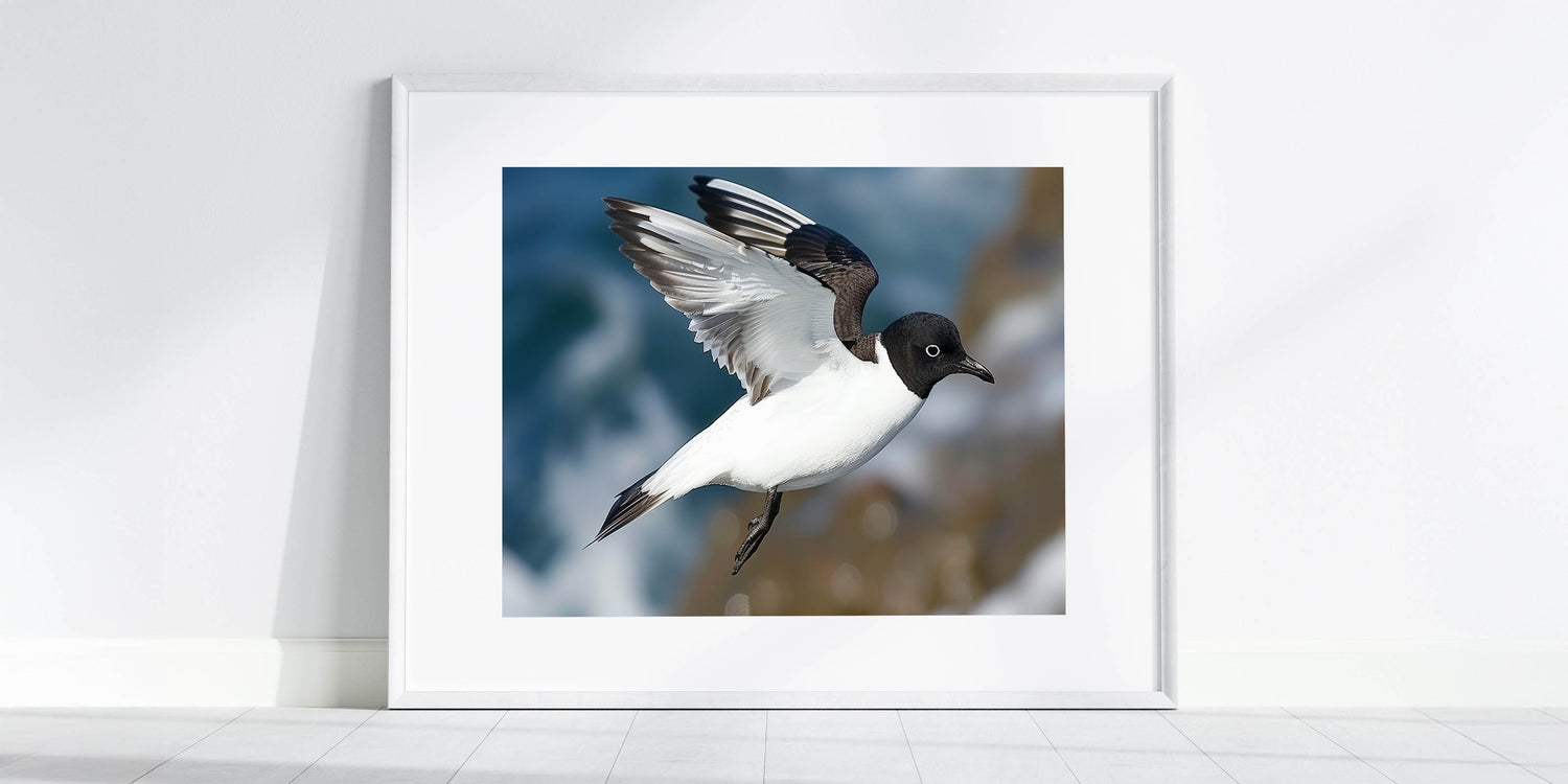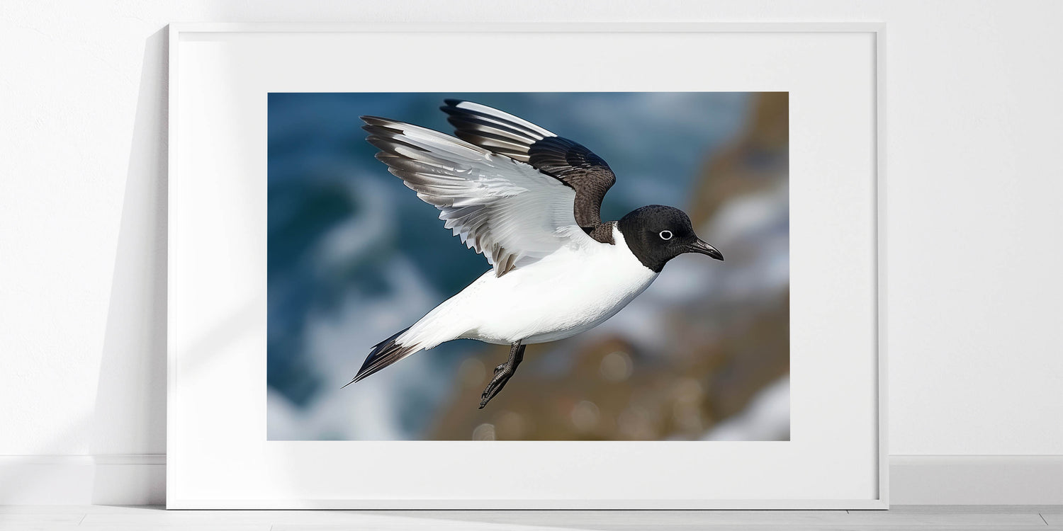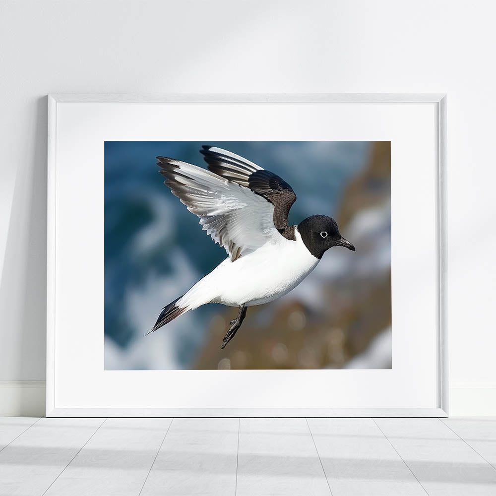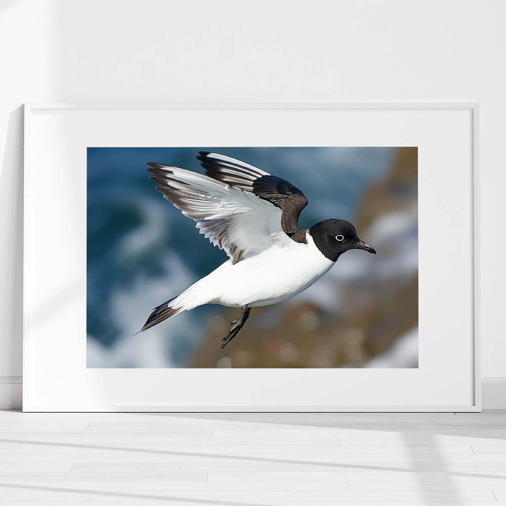 Capture the elegance of coastal wildlife with this stunning wildlife photography wall art featuring a gull in mid-flight. The crisp white and deep black of the gull's feathers stand out against the vibrant blue ocean background, creating a striking and serene composition. Perfect for modern, minimalist, or coastal-inspired interiors, this artwork brings the beauty of nature and the freedom of flight into your home.