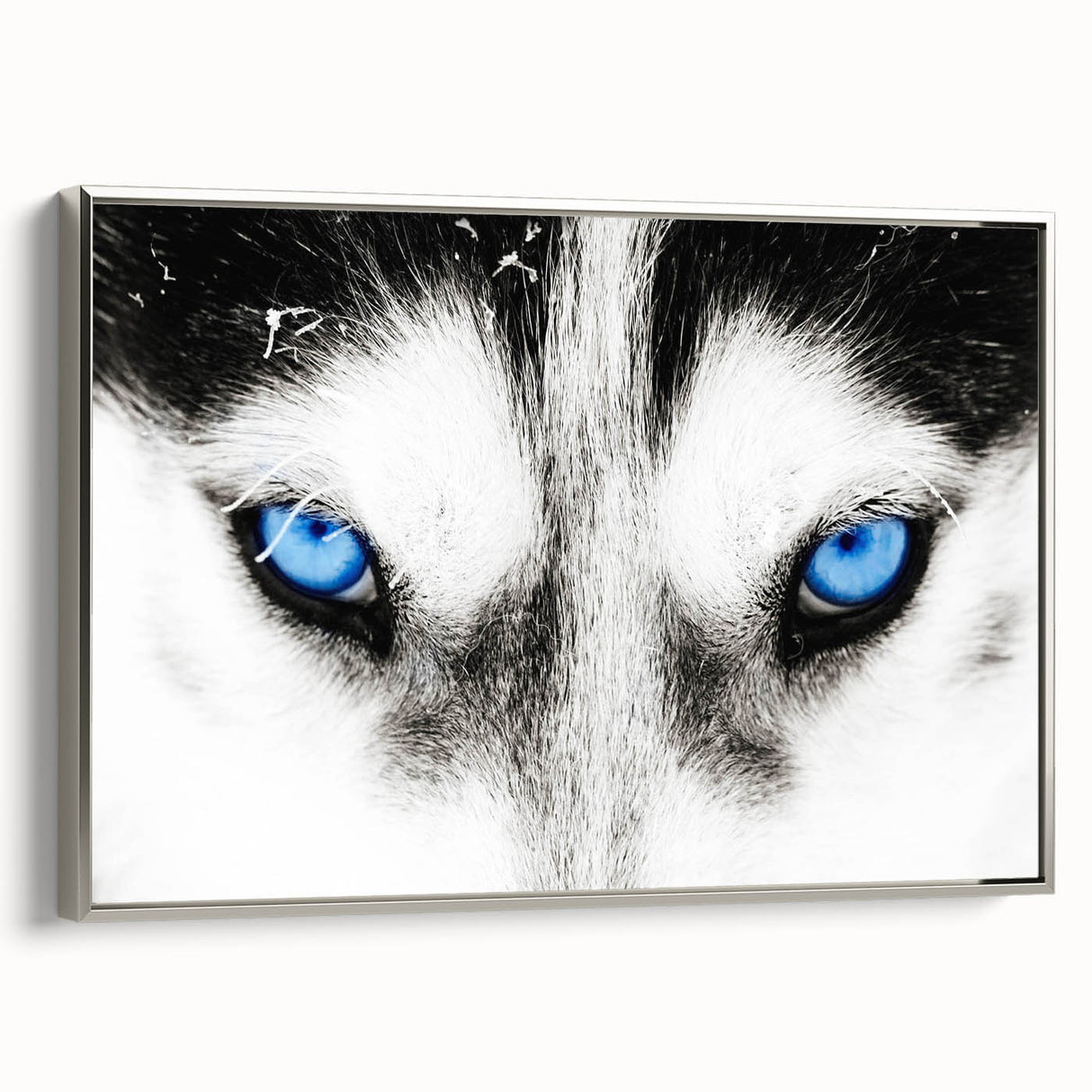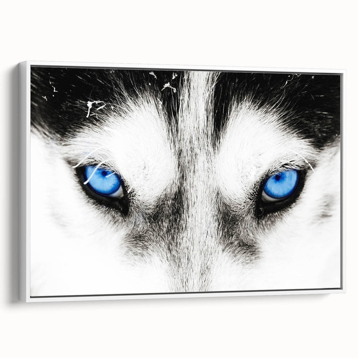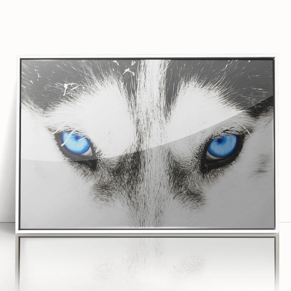 Make a bold statement with this striking wolf art, featuring the intense blue eyes of a wolf captured in breathtaking detail. The close-up composition draws you into the powerful gaze of the wolf, creating a mesmerizing and unforgettable piece of art. The contrast between the wolf’s white fur and its piercing blue eyes adds a dramatic and captivating element, making this artwork a perfect addition to modern and minimalist interiors.