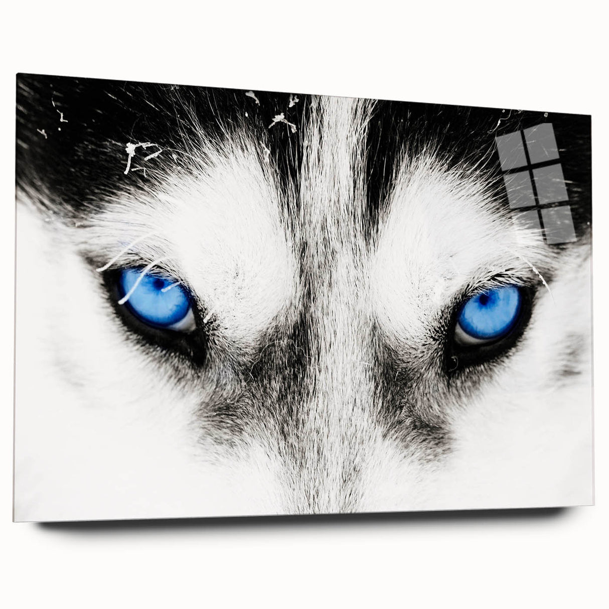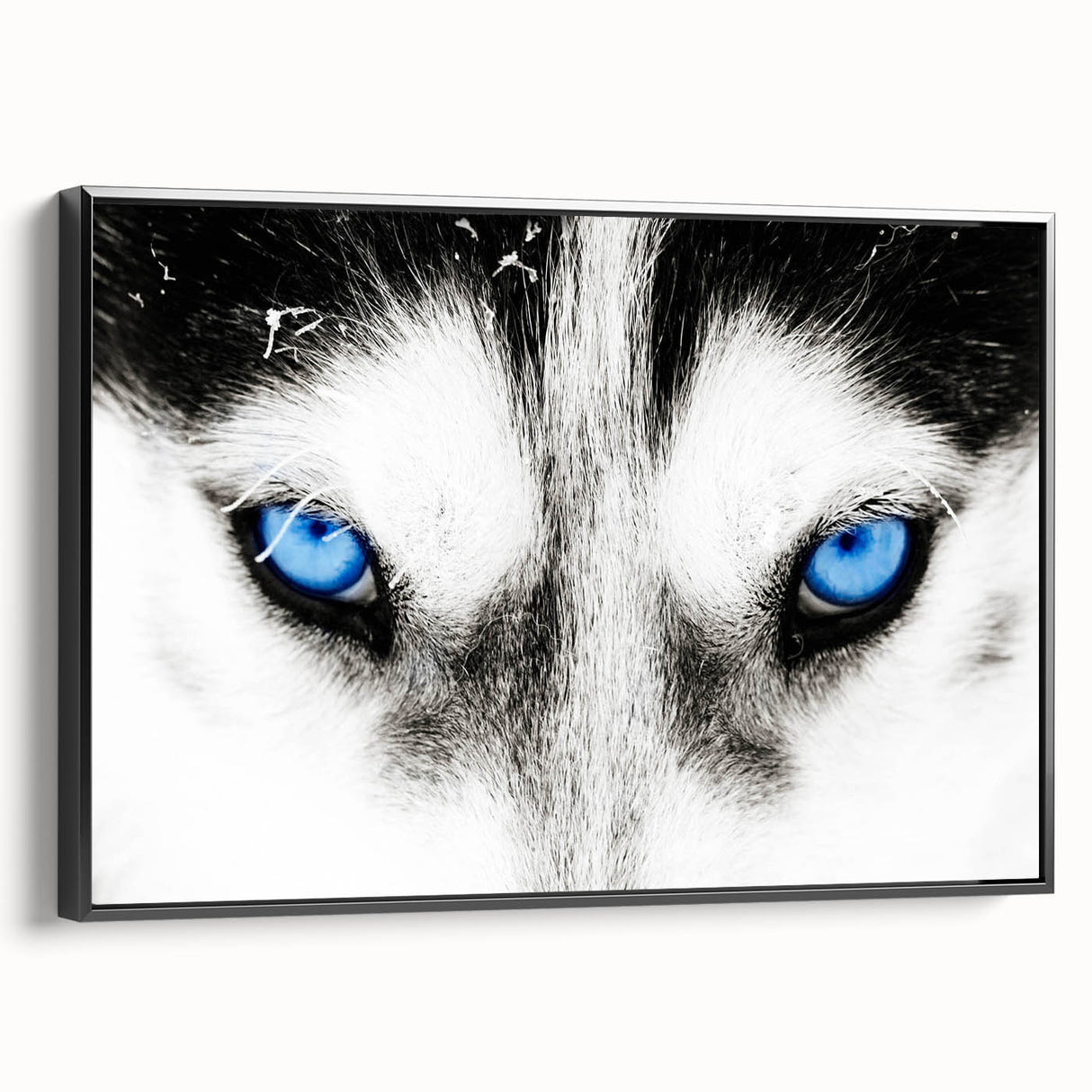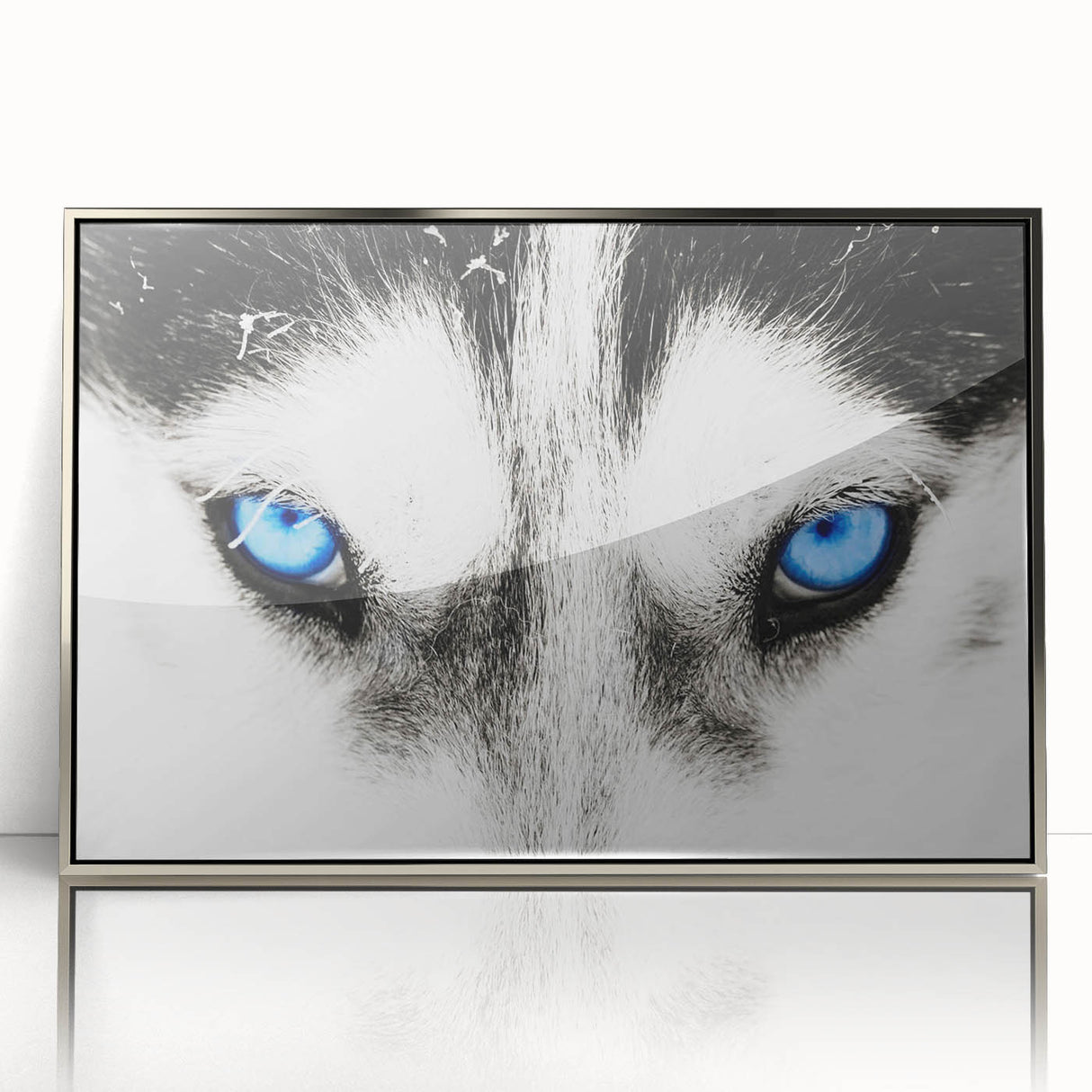 Make a bold statement with this striking wolf art, featuring the intense blue eyes of a wolf captured in breathtaking detail. The close-up composition draws you into the powerful gaze of the wolf, creating a mesmerizing and unforgettable piece of art. The contrast between the wolf’s white fur and its piercing blue eyes adds a dramatic and captivating element, making this artwork a perfect addition to modern and minimalist interiors.