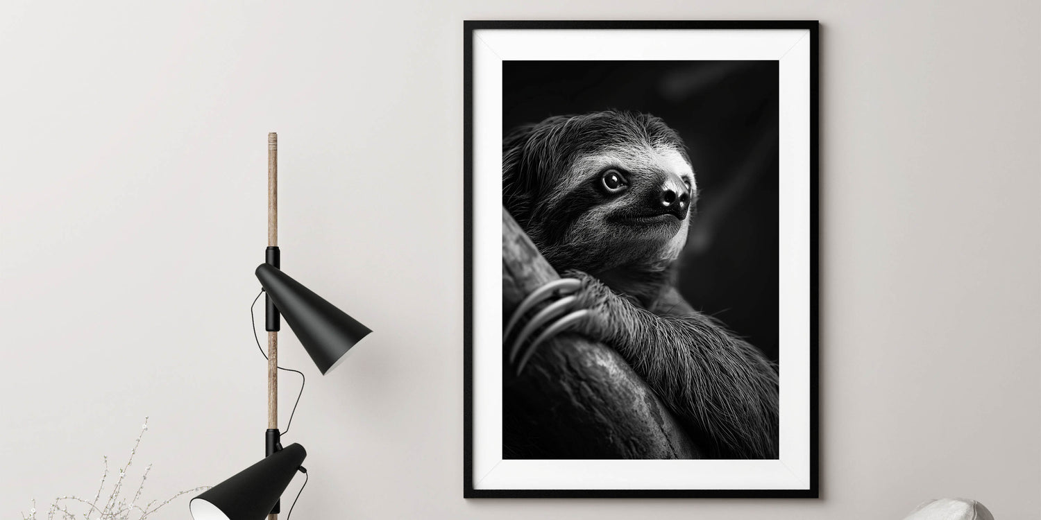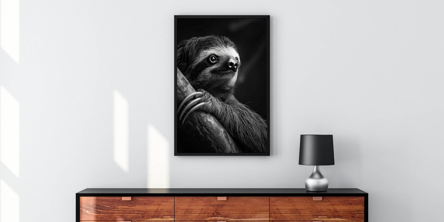 Intense Sloth Black & White Art - Bold Monochrome Wall Decor